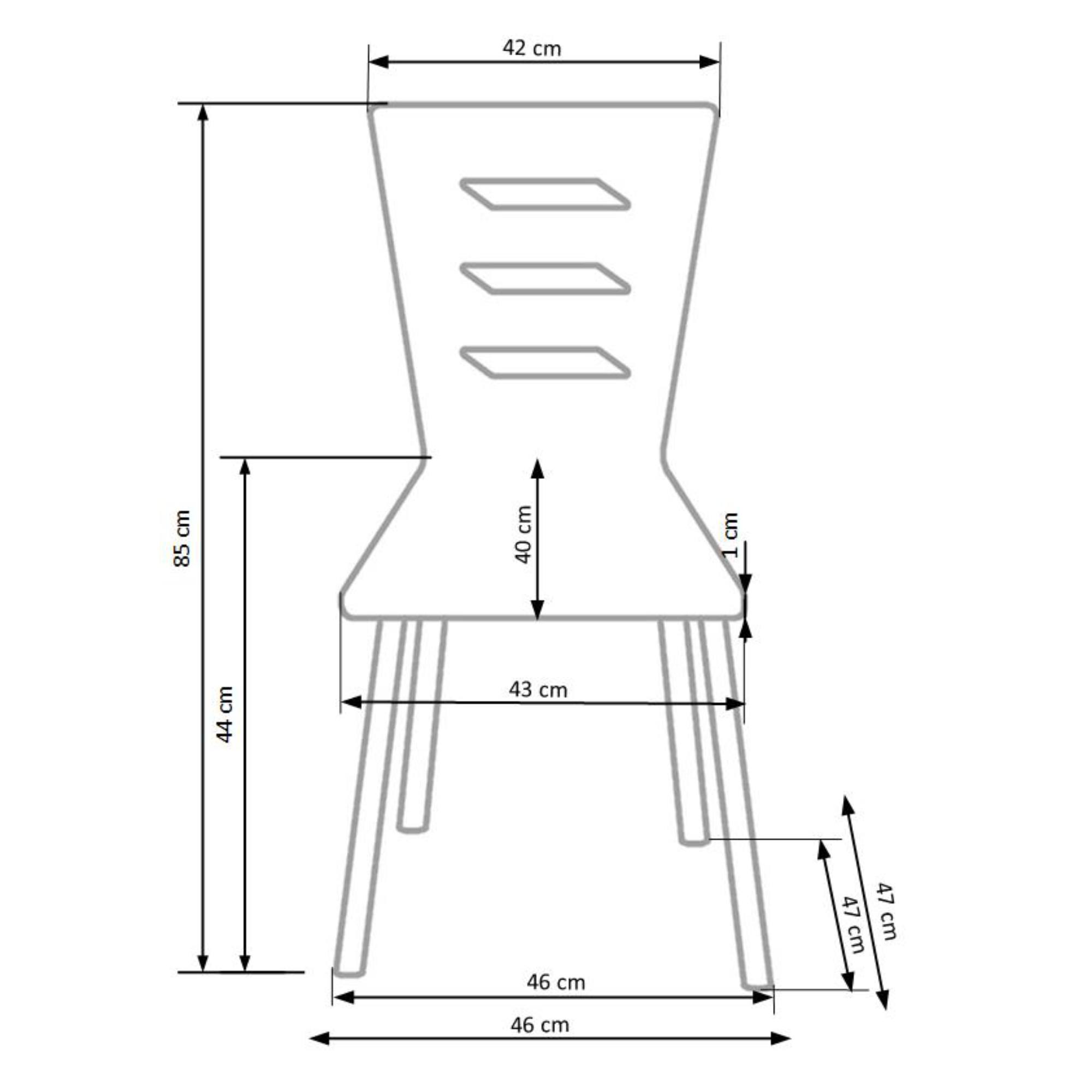 Moderná jedálenská stolička YESENIA sa stane praktickým doplnkom každej jedálne či kuchyne. Maximálnu stabilitu zaisťuje konštrukcia z pochrómovanej ocele. Komfort obstará sedadlo s operadlom z ohýbanej preglejky. Nohy stoličky sú vybavené šikovnými podstavcami, ktoré znižujú riziko poškodenia podlahy. Jedinečným prvkom sú dizajnové prierezy, ktoré taktiež slúžia ako rúčky pre ľahšiu manipuláciu.