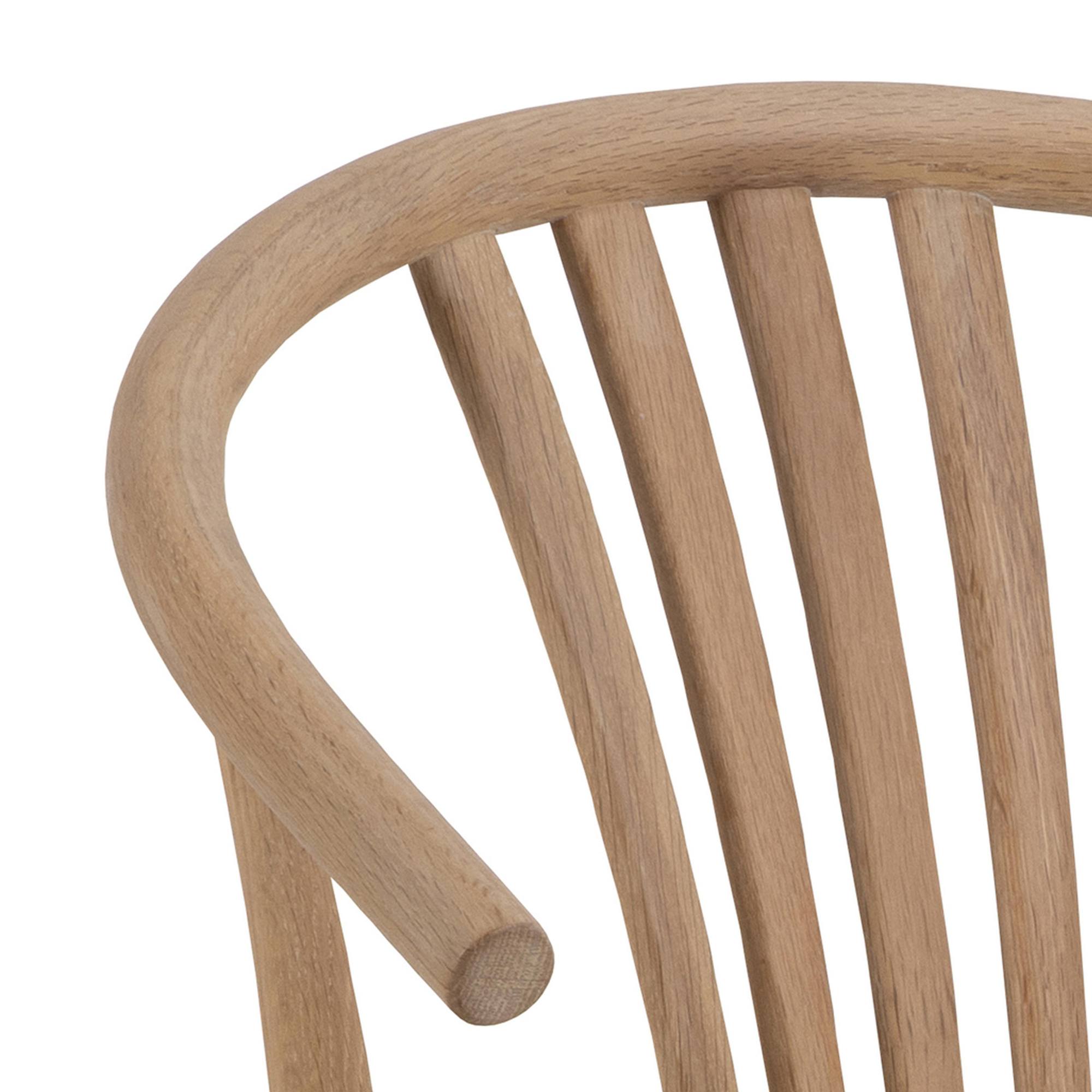 Jej konštrukcia je vyrobená z masívneho dubového dreva. O pohodlné sedenie na stoličke sa stará mäkký penový sedák.