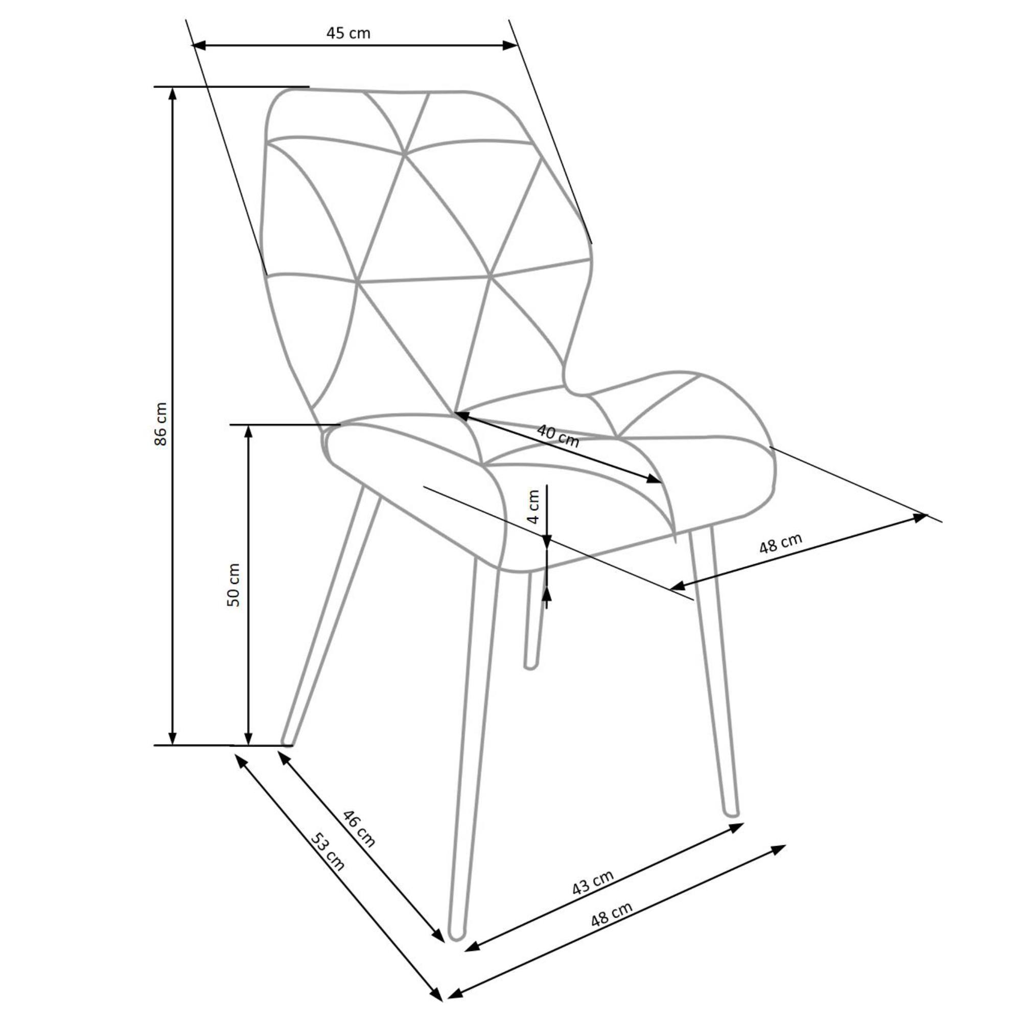 Maximálny komfort je dosiahnutý čalúnením sedadla aj chrbtovej opierky – spoločným menovateľom je čalúnenie z veľmi kvalitnej tkaniny zamatového vzhľadu s geometrickým dekoratívnym prešívaním. Stabilitu zaisťuje podnož z práškovo lakovanej ocele. Nosnosť jedálenskej stoličky ZAKIA je dostatočných 100 kg.