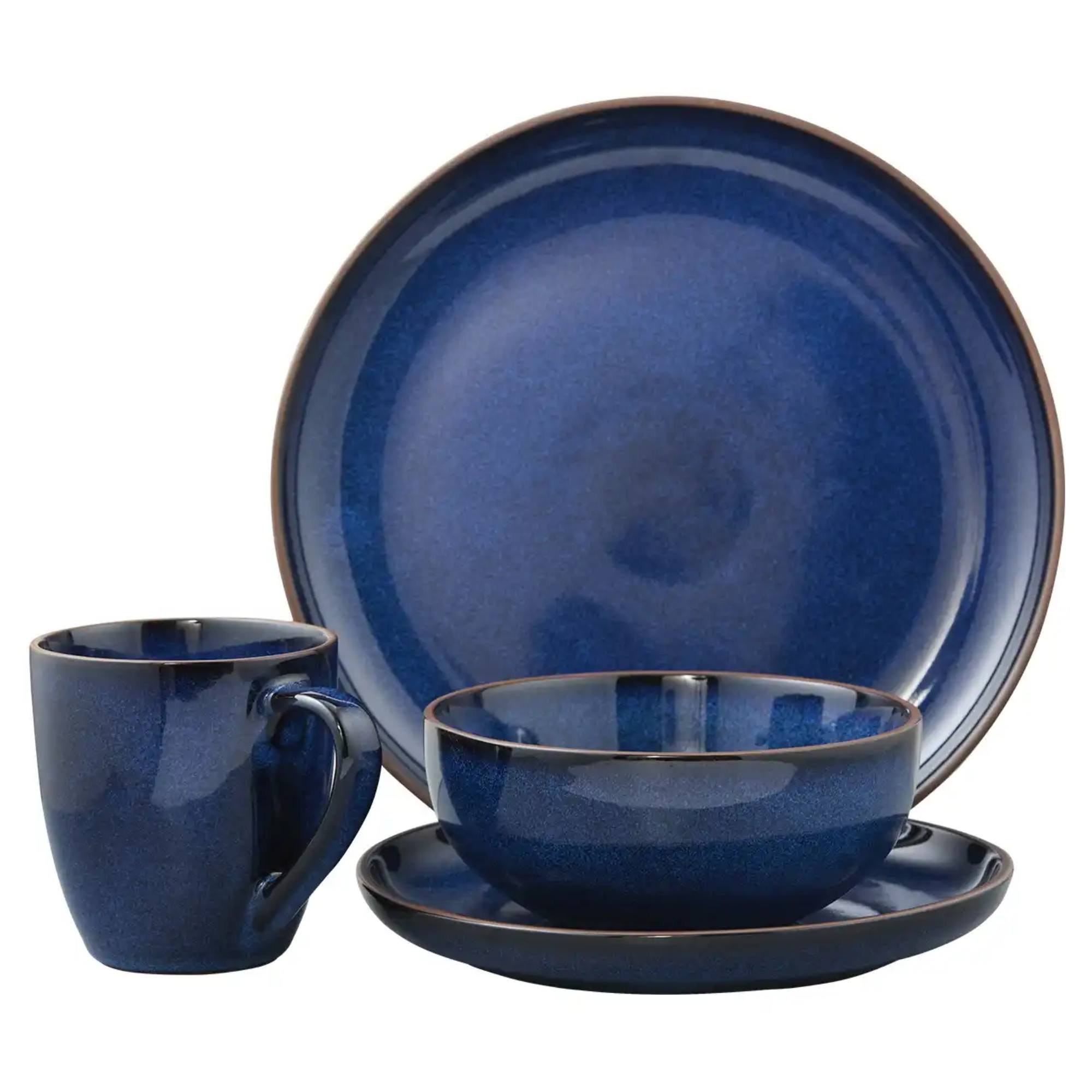 Súprava sa skladá zo 4 plytkých tanierov, 4 dezertných tanierov, 4 misiek a 4 hrnčekov. Je vyrobená z kvalitnej keramiky, ktorá vám pri správnom zaobchádzaní poslúži dlhé roky. Súprava je vyhotovená v žiarivo modrej farbe, ktorá oživí každý jedálenský stôl. Riad je vhodný do umývačky riadu aj mikrovlnnej rúry, takže ponúka jednoduché čistenie a rýchlu prípravu jedla.