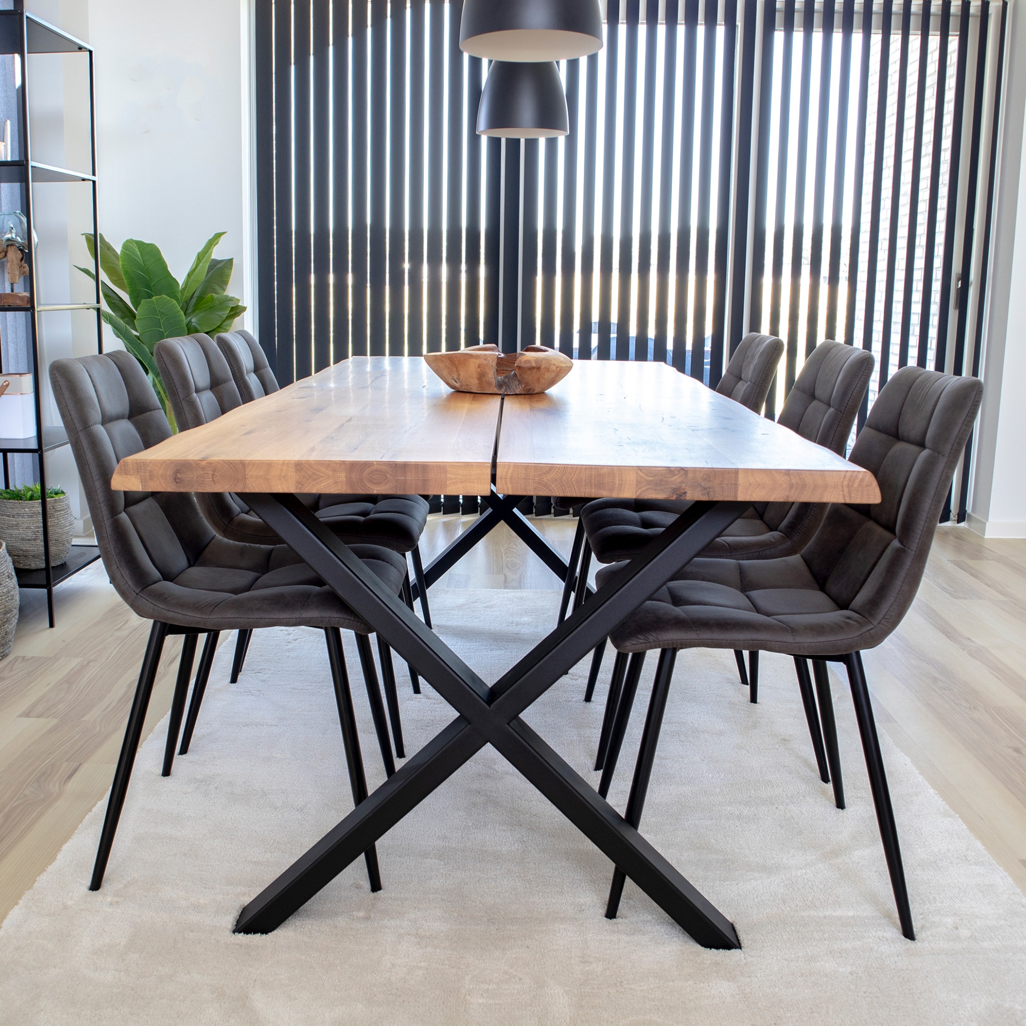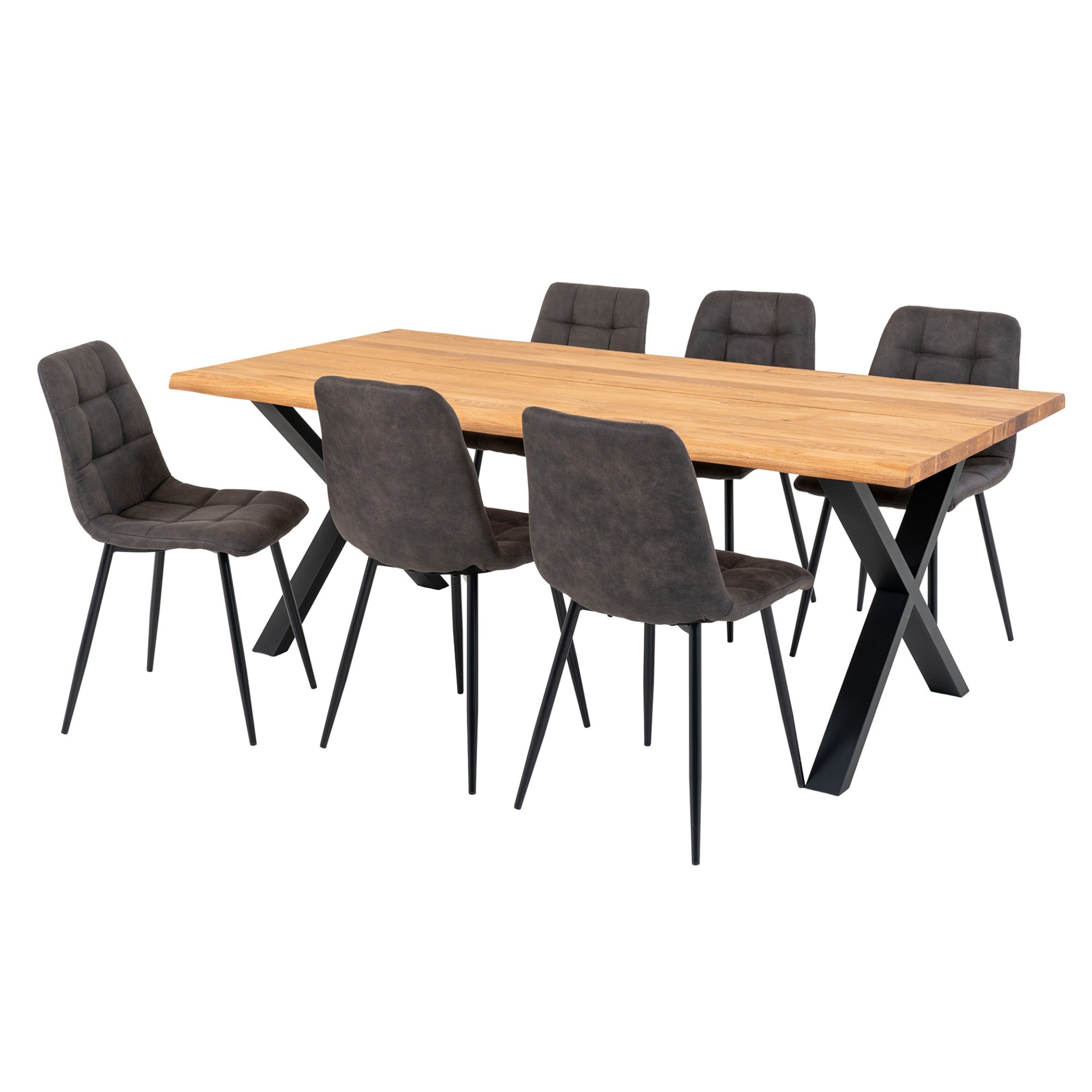 Jedálenská zostava TUELUN vyhotovená v industriálnom dizajne obsahuje 1 stôl a 6 stoličiek.
