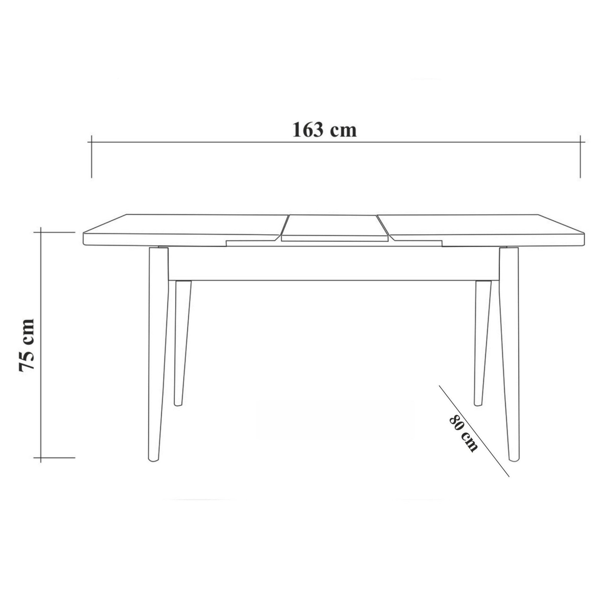 Zostava ponúka praktický úložný priestor, a to nielen pod sedákom lavice, ale aj pod hornou doskou stola. Vďaka rozkladacej funkcii je možné šírku stola zväčšiť zo 129 cm na 163 cm.