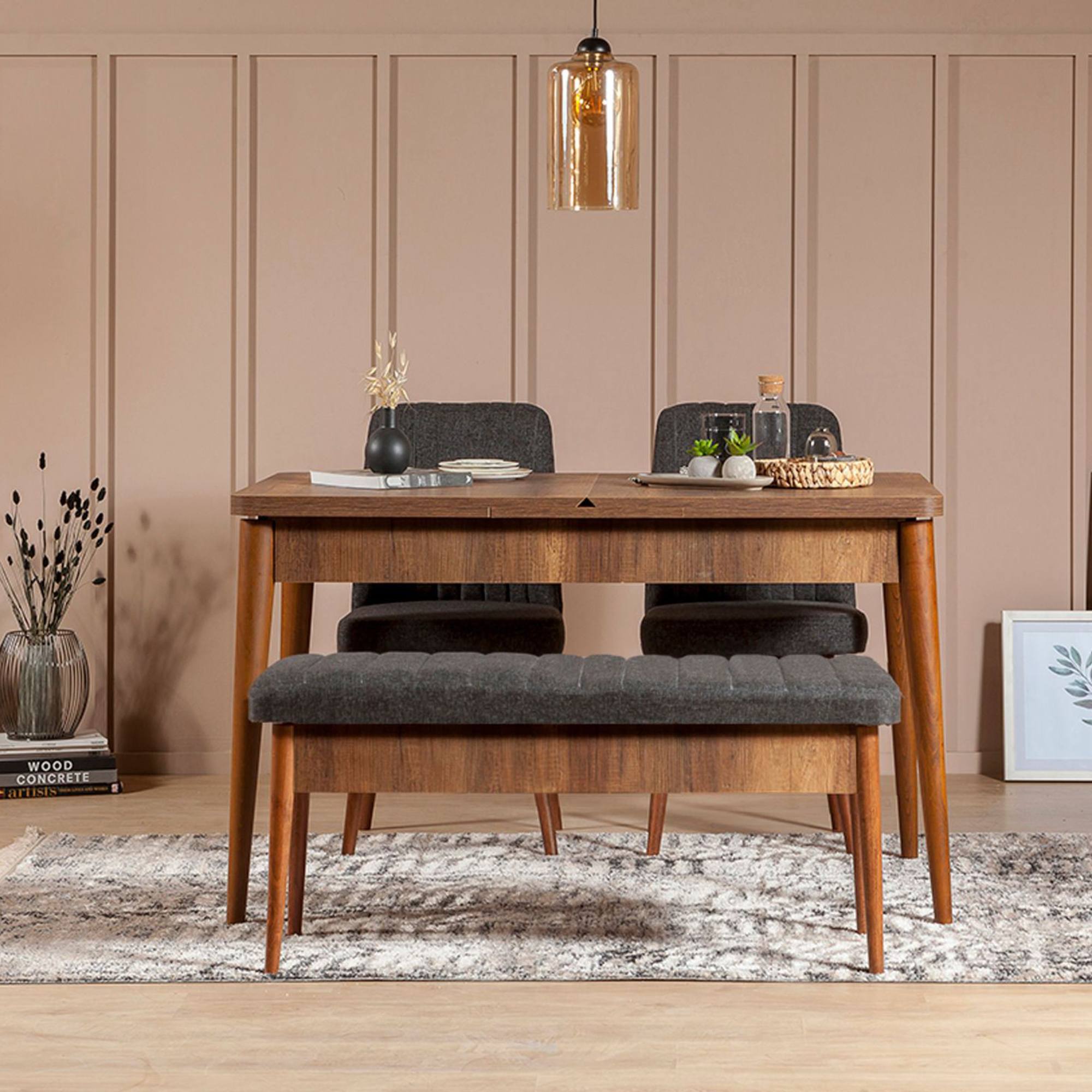 Štýlová a moderná jedálenská zostava VINA 6 sa skladá z jedálenského stola, lavice a 2 stoličiek.