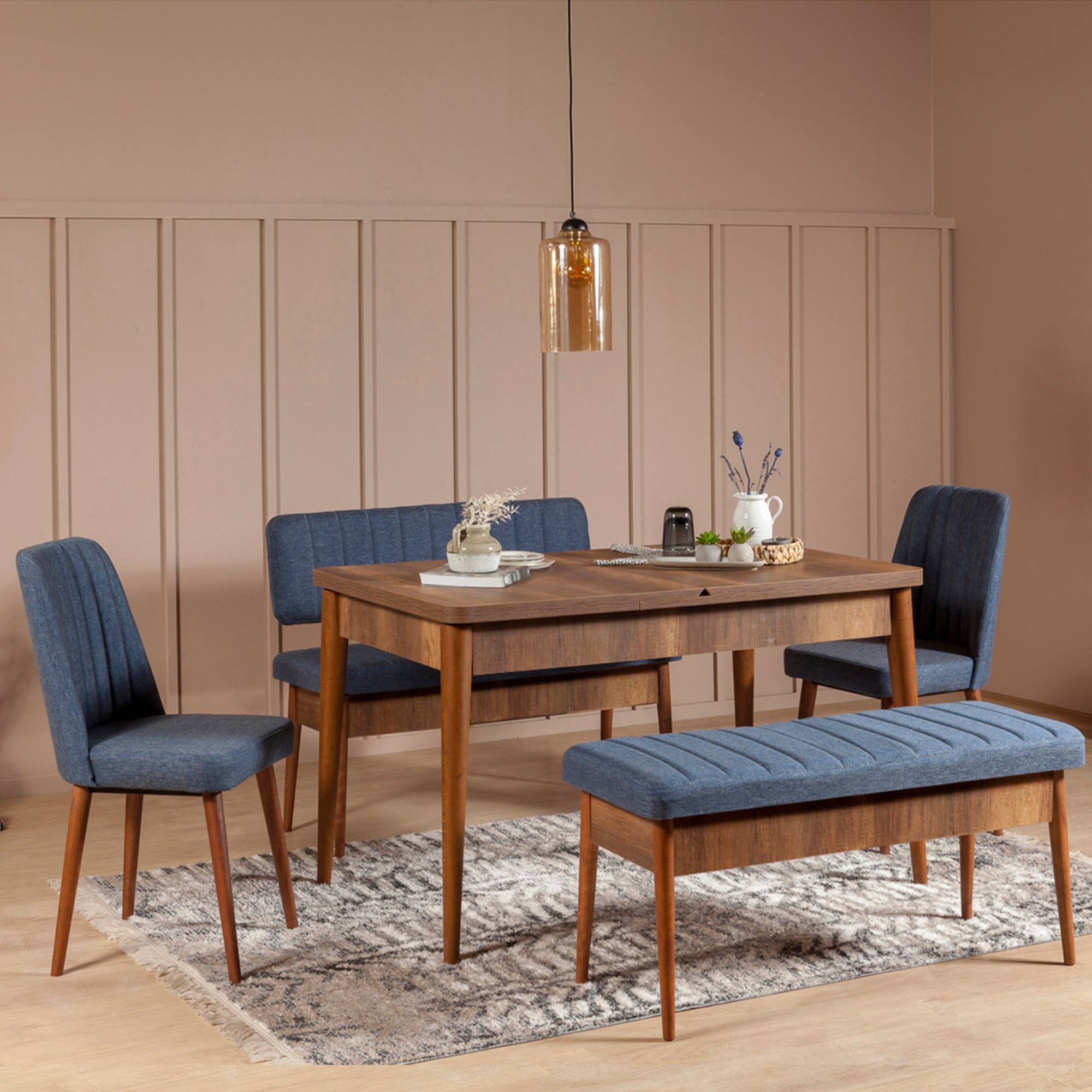 Jedálenská zostava VINA 8 - tmavomodrá/orech
