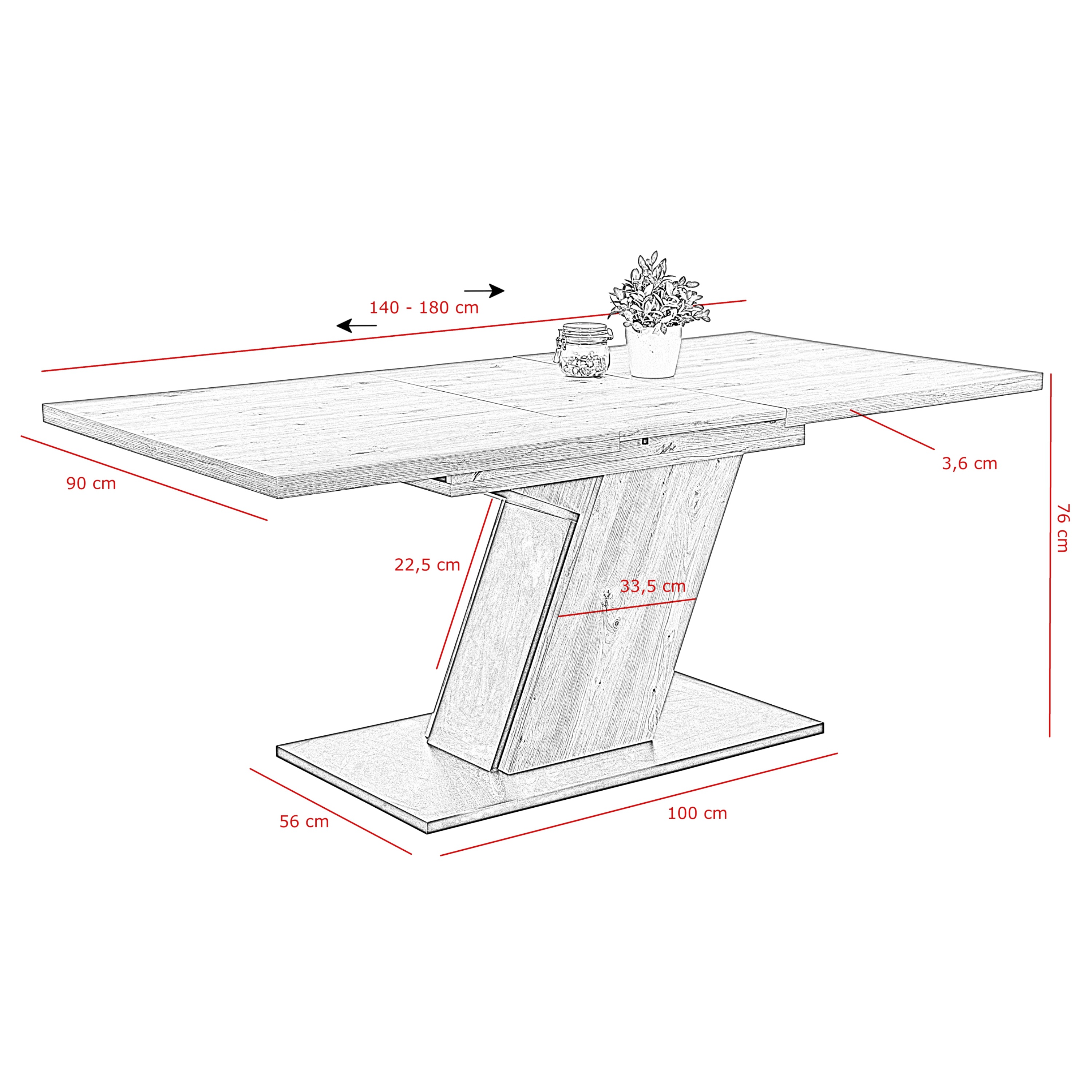 Na výrobu jedálenského stola bola použitá laminovaná drevotriesková doska, ktorá je nenáročná na údržbu. Okrem jednoduchej údržby na stole oceníte aj rozkladaciu funkciu, ktorá umožňuje zväčšiť jeho šírku zo 140 na 180 cm.