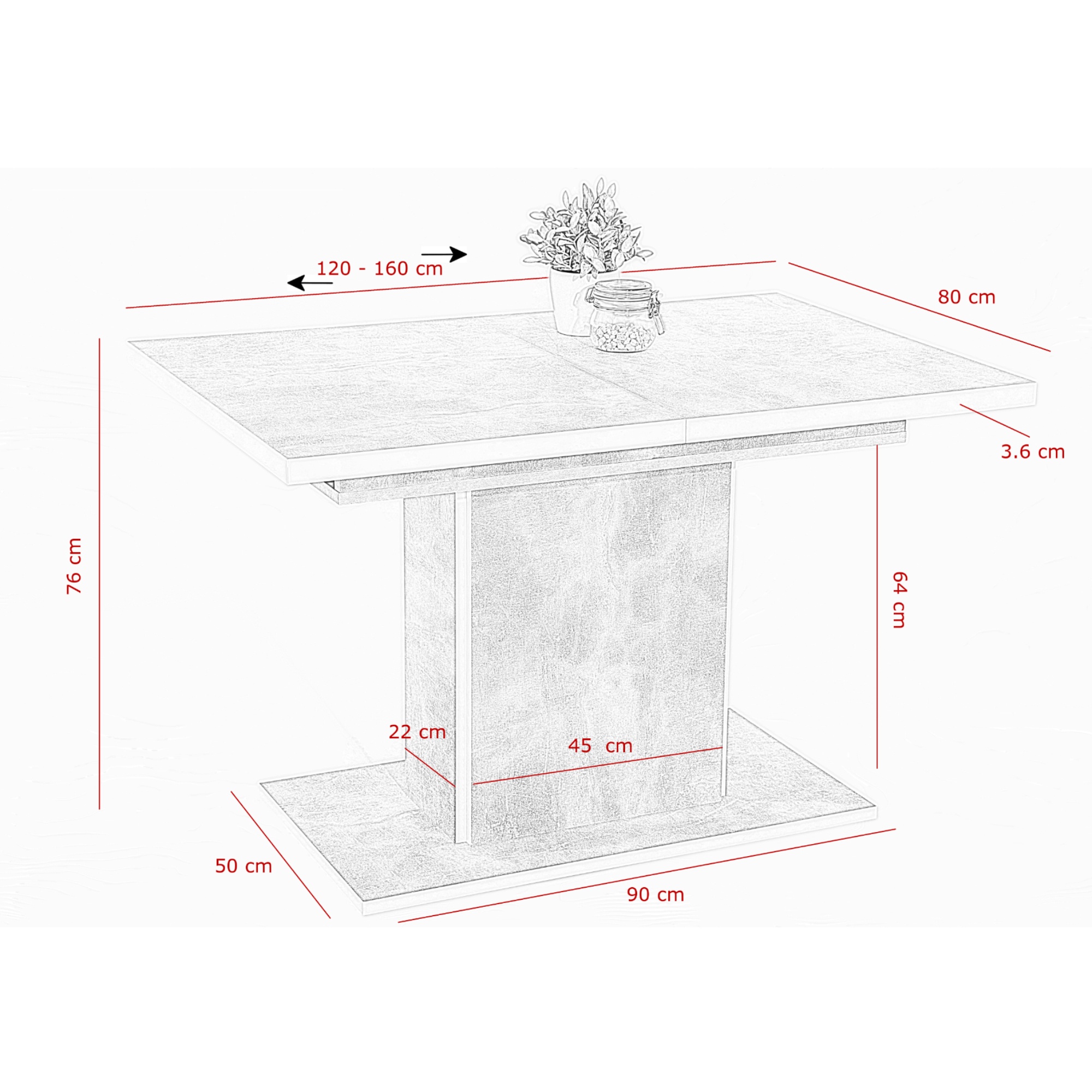 | Nastaviteľná šírka dosky stola v rozmedzí (cm): | 120 - 160 |