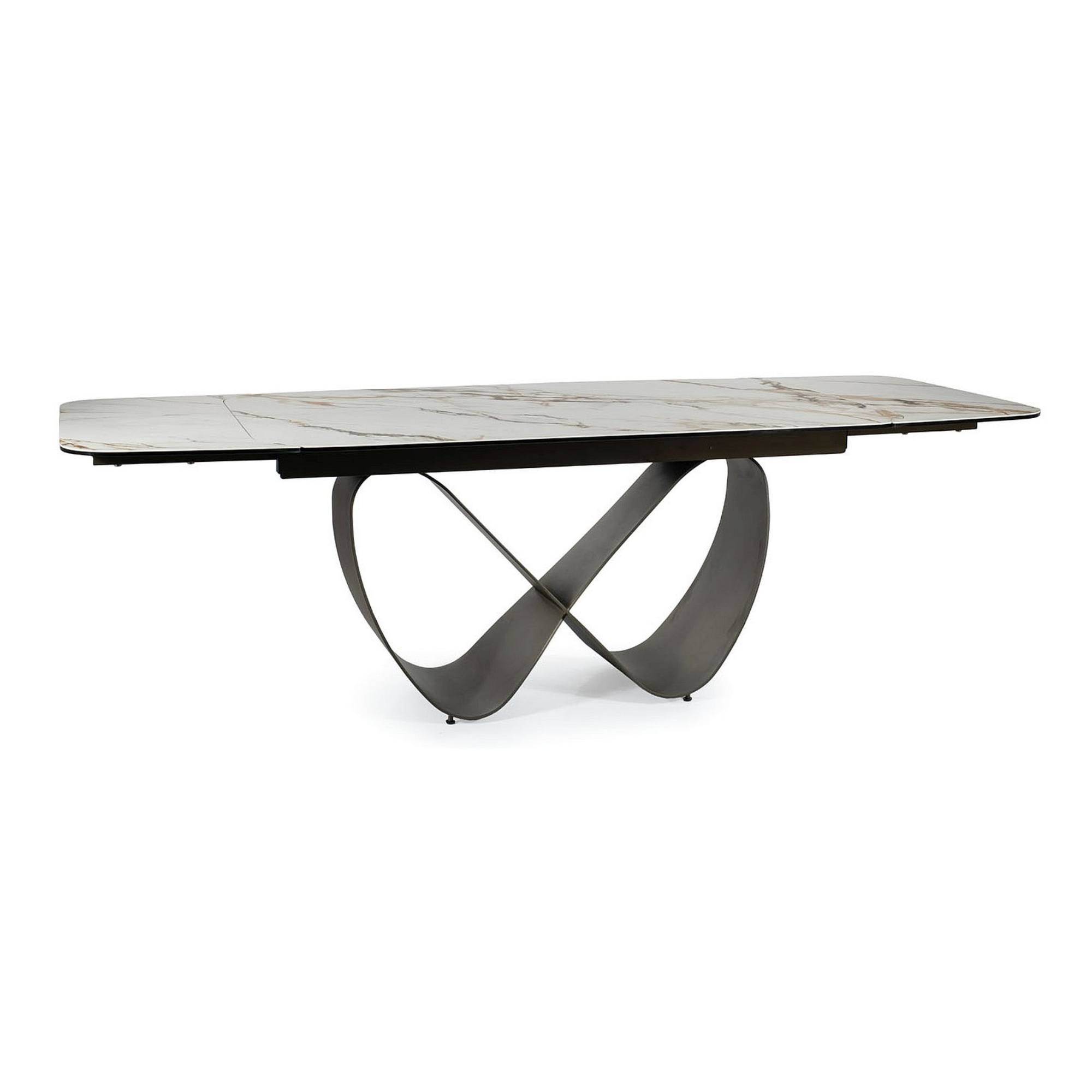 Doska stola je vyrobená z tvrdeného skla a keramiky. Je ladená do dekoru mramoru, ktorý obohatí interiér o punc luxusu. Maximálnu stabilitu zaisťuje dizajnová podnož z kovu. Komfort stolovania zvyšuje rozkladacia funkcia na veľkorysých 240 cm, vďaka ktorej ponúka miesto až pre 10 osôb. Jedálenský stôl ANFANATY podporí štýl domácnosti, dodá jej praktickosť a stane sa tak jej neoddeliteľnou súčasťou.