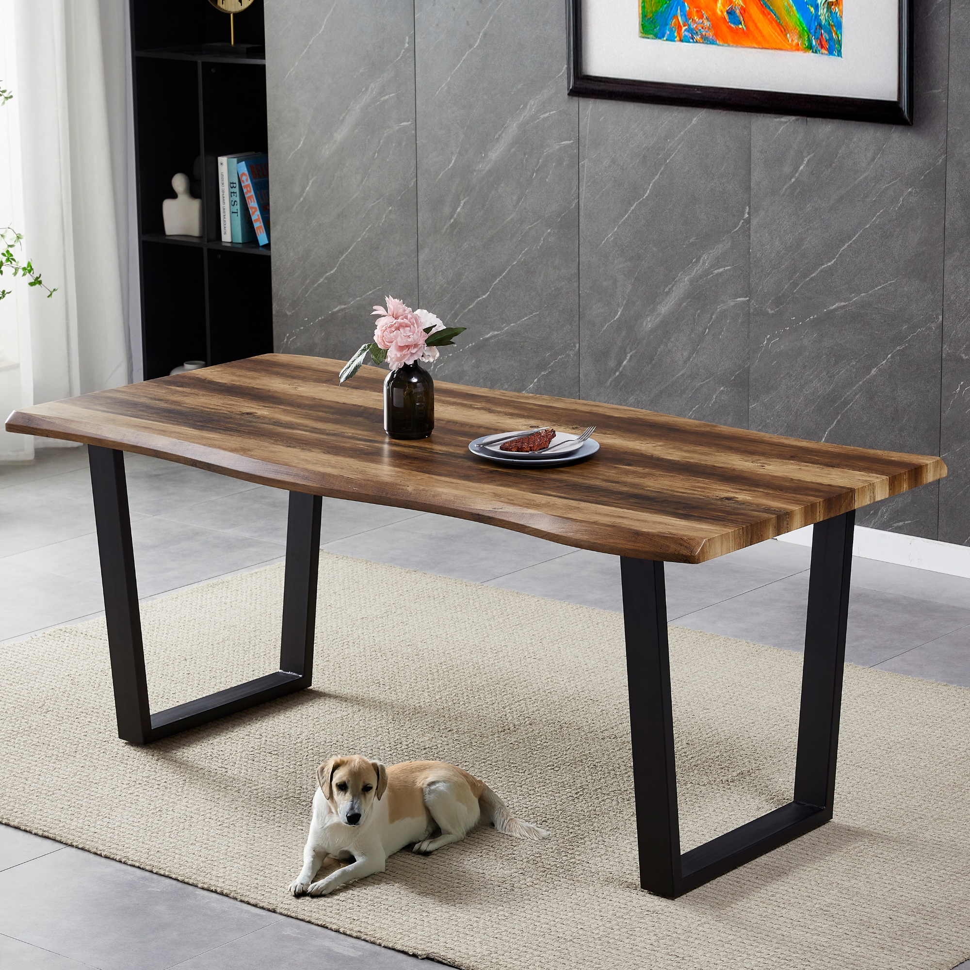 Doska stola, ktorá vďaka svojmu atypickému tvaru zaujme na prvý pohľad, je vyrobená z drevovláknitej dosky MDF. O stabilitu stola sa starajú pevné kovové nohy.
