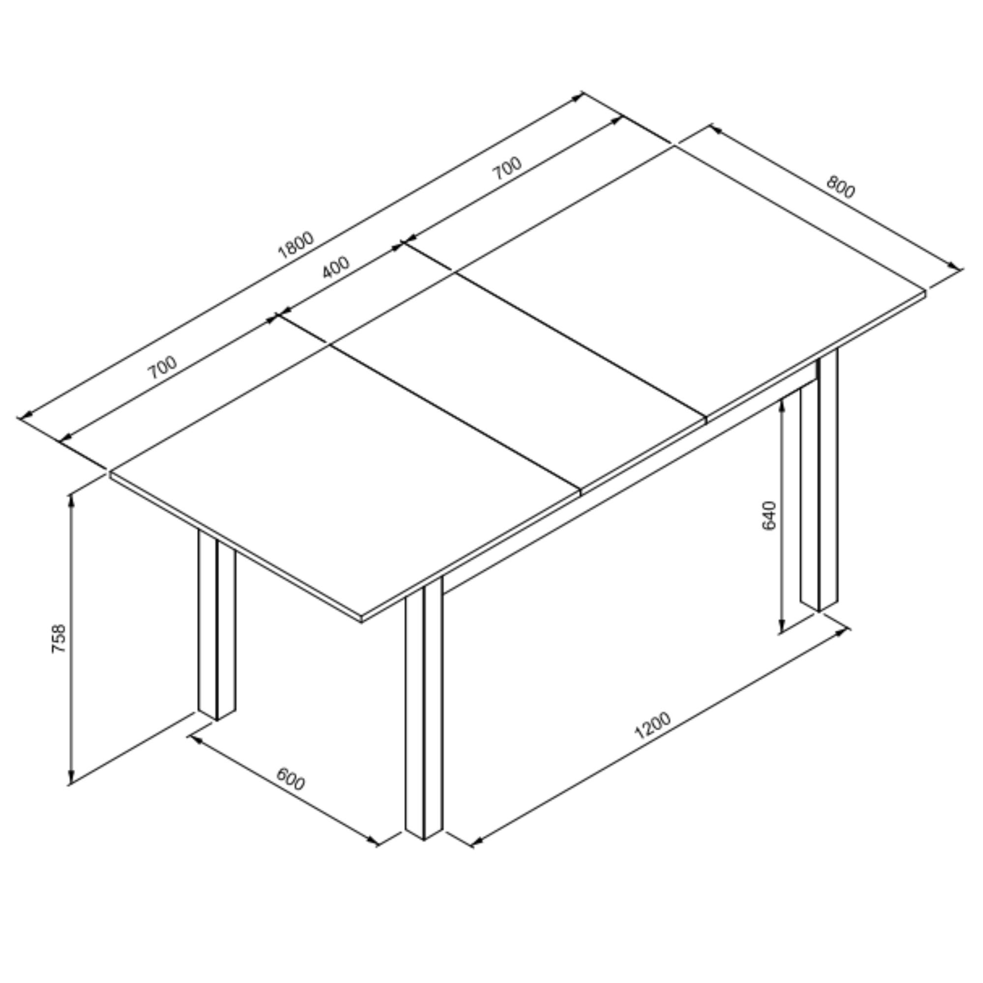 | Nastaviteľná šírka dosky stola v rozmedzí (cm): | 140-180 |