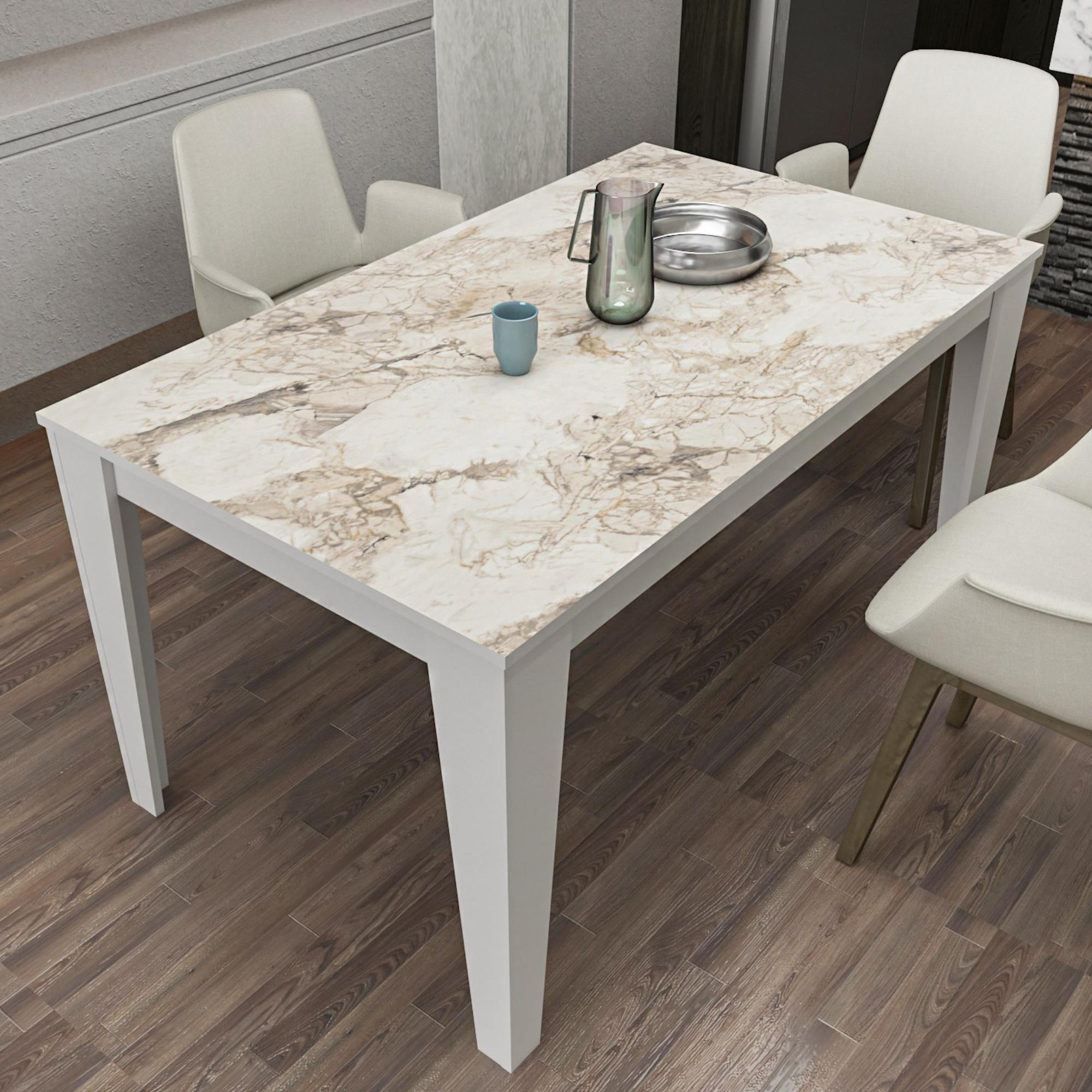 Hornú dosku stola zdobí elegantný dekor mramoru.