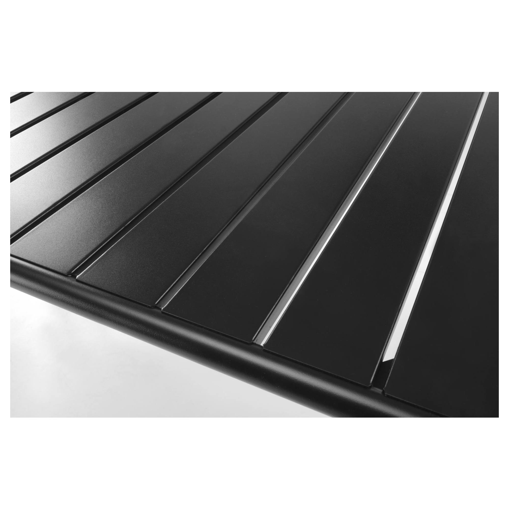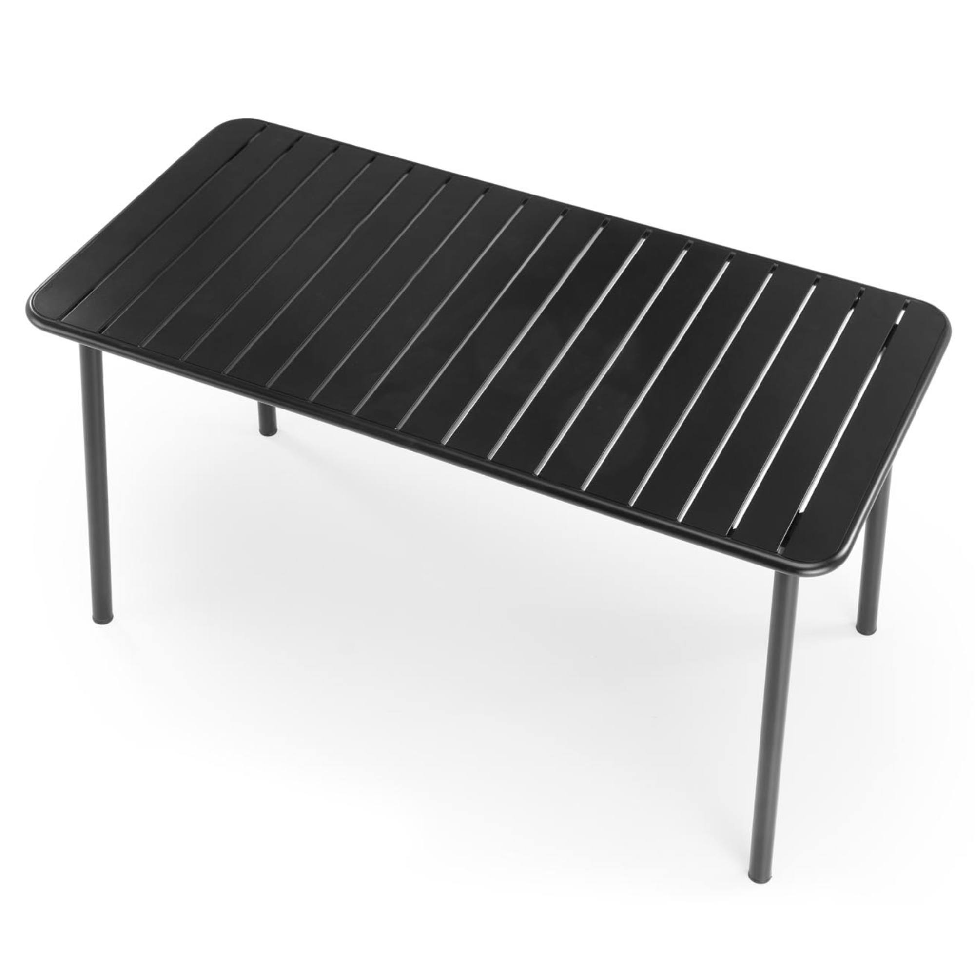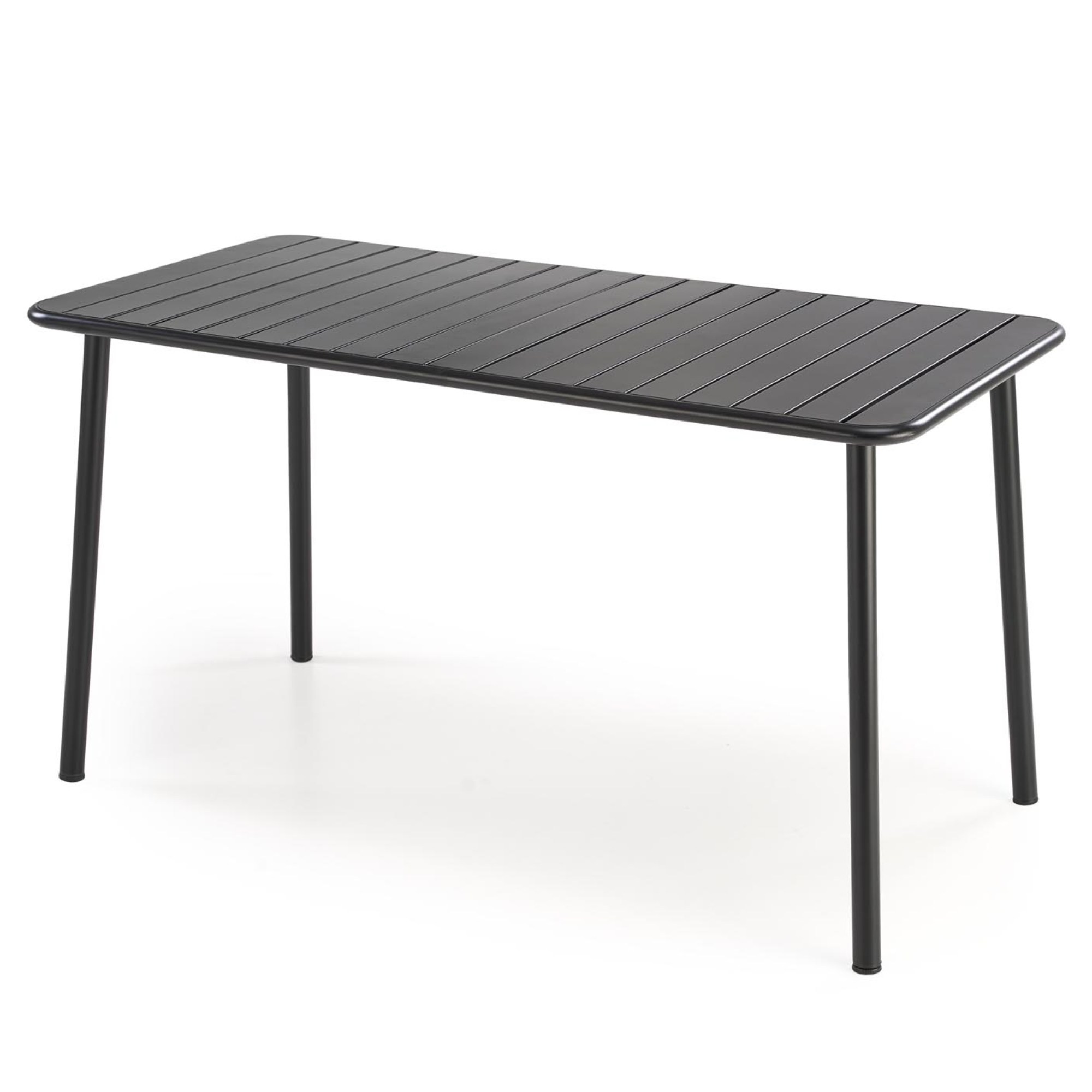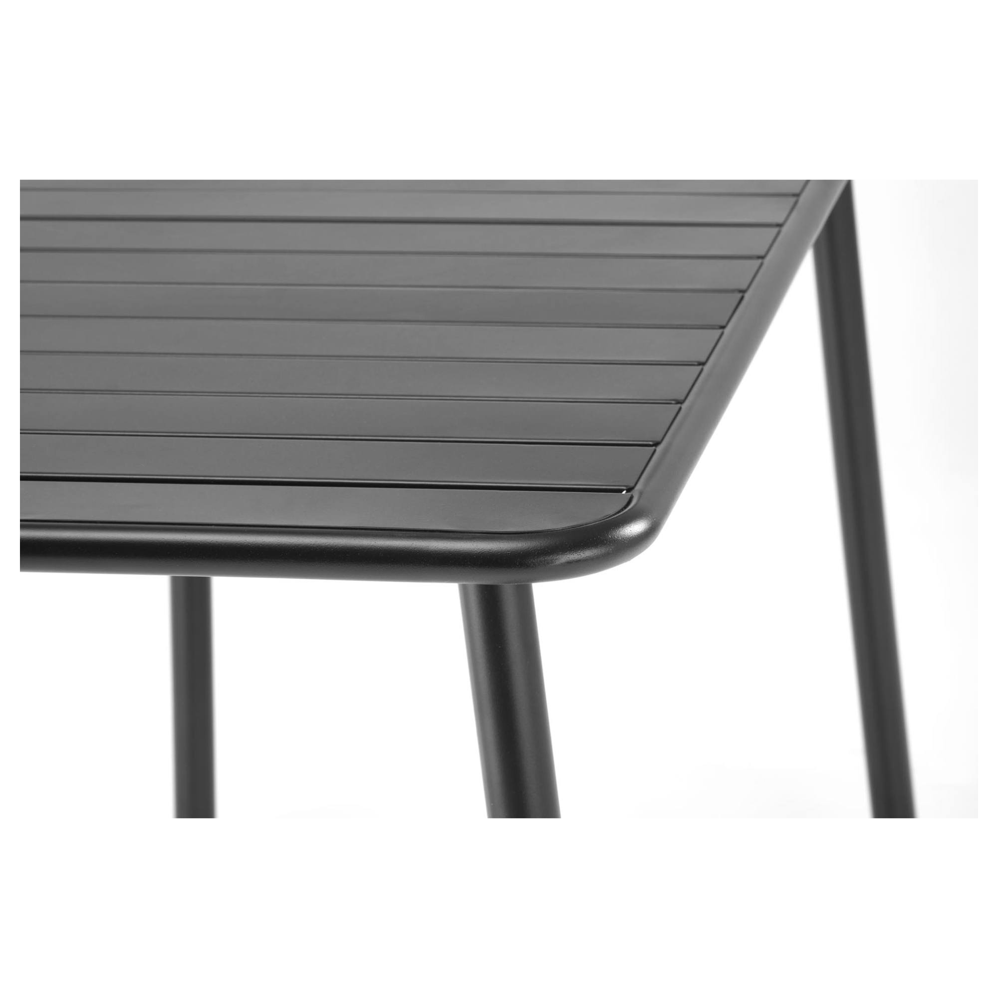 Vrchná doska obdĺžnikového tvaru je vyrobená z práškovo lakovanej ocele s povrchom nenáročným na údržbu. Jedálenskú plochu podopiera štvornohá podnož vyrobená z rovnakého materiálu. Tá zaisťuje potrebnú stabilitu a odolnosť. Vďaka svojej veľkosti je stôl vhodný aj do menších priestorov.