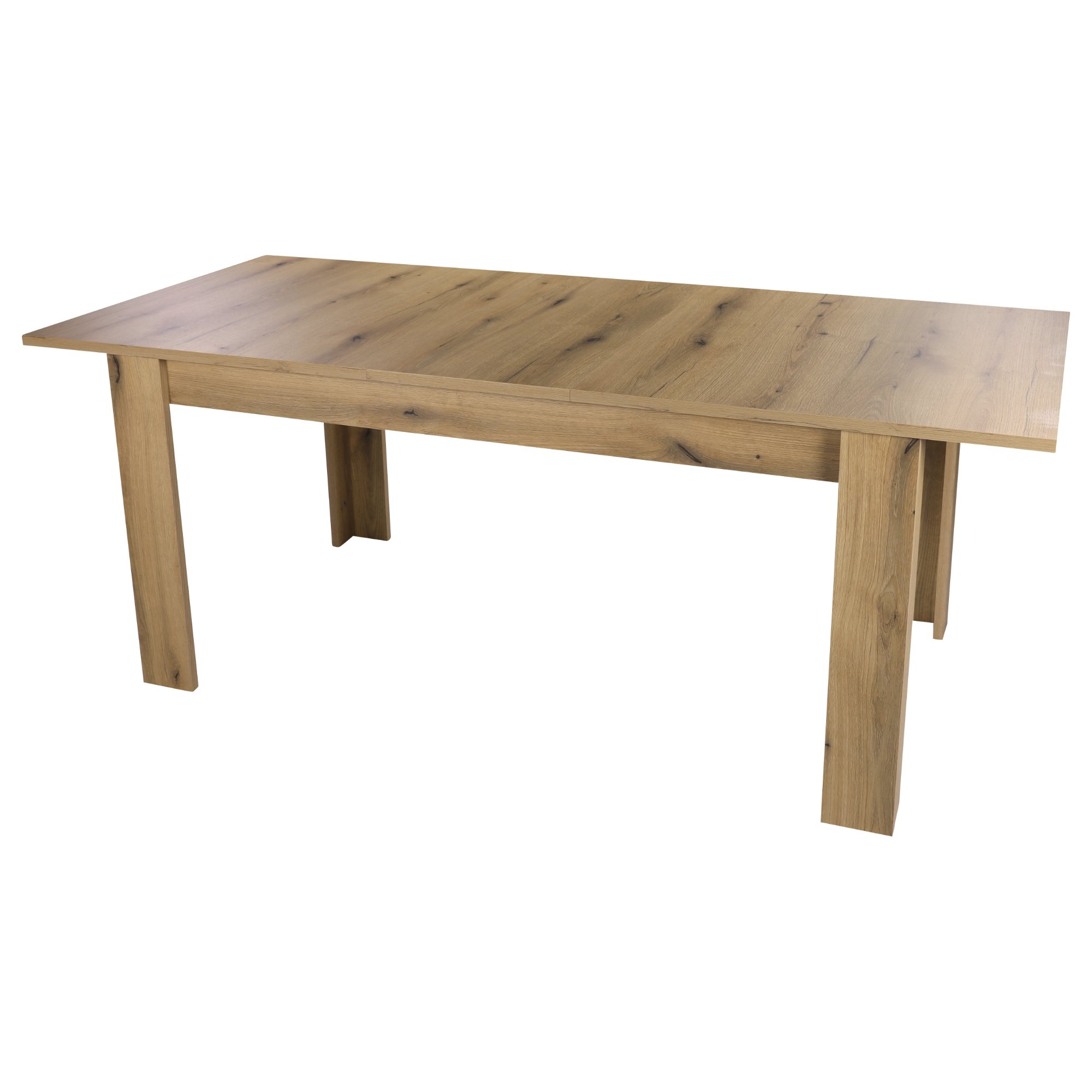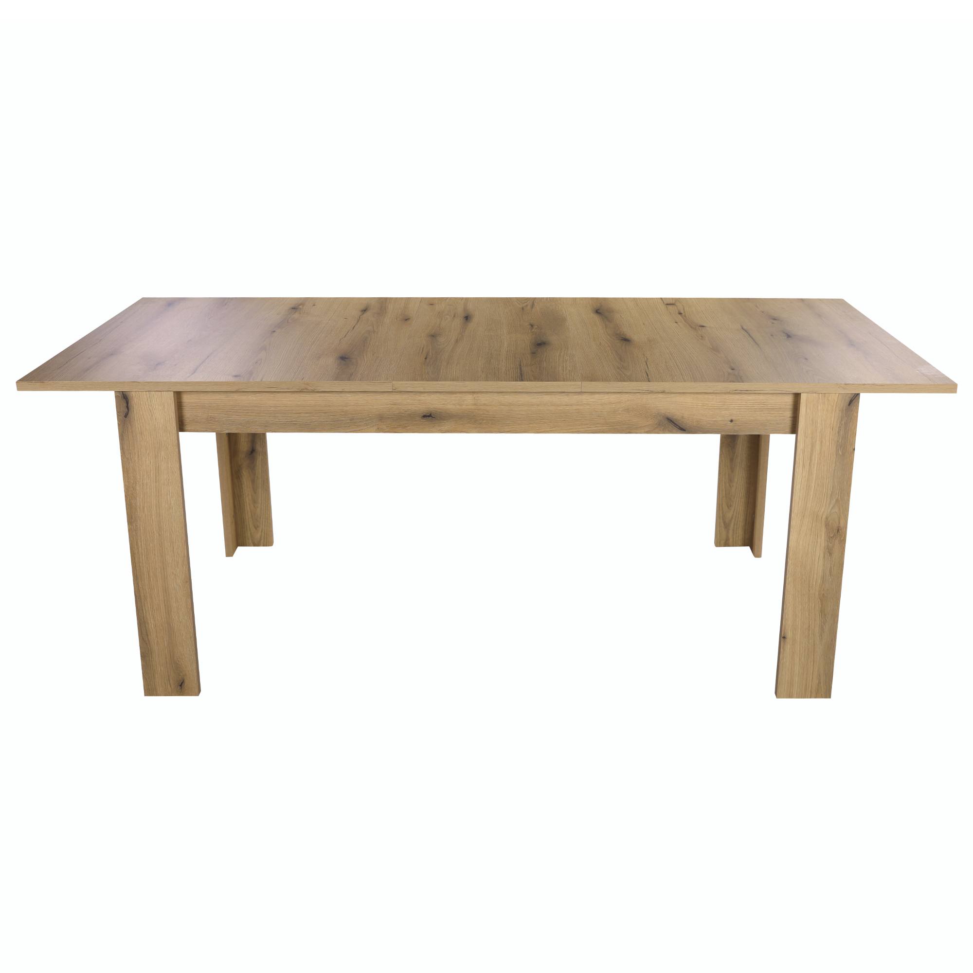 Vyrobený je v kombinácii laminovaného dreveného materiálu a drevovláknitej dosky MDF, tieto materiály sa vyznačujú ľahkou udržiavateľnosťou aj dlhou životnosťou. Ladený je do dekora duba evoke, ktorý interiér obohatí o nádych prírody. Komfort stolovania navyšuje funkcia rozloženia na 200 cm.
