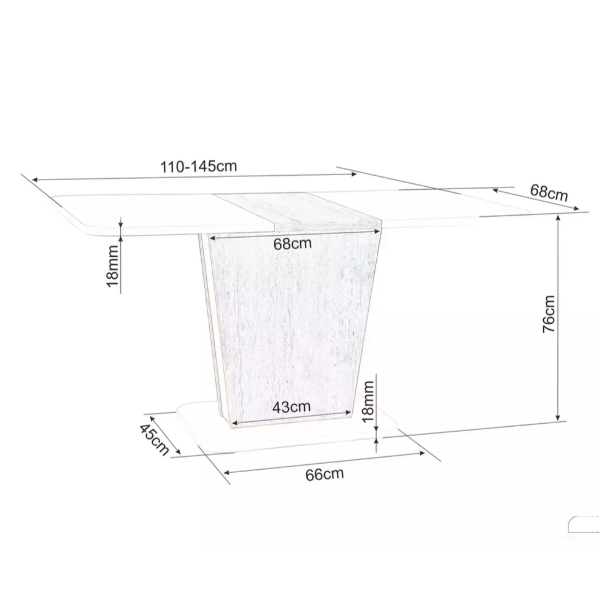 | Nastaviteľná šírka dosky stola v rozmedzí (cm): | 110-145 |