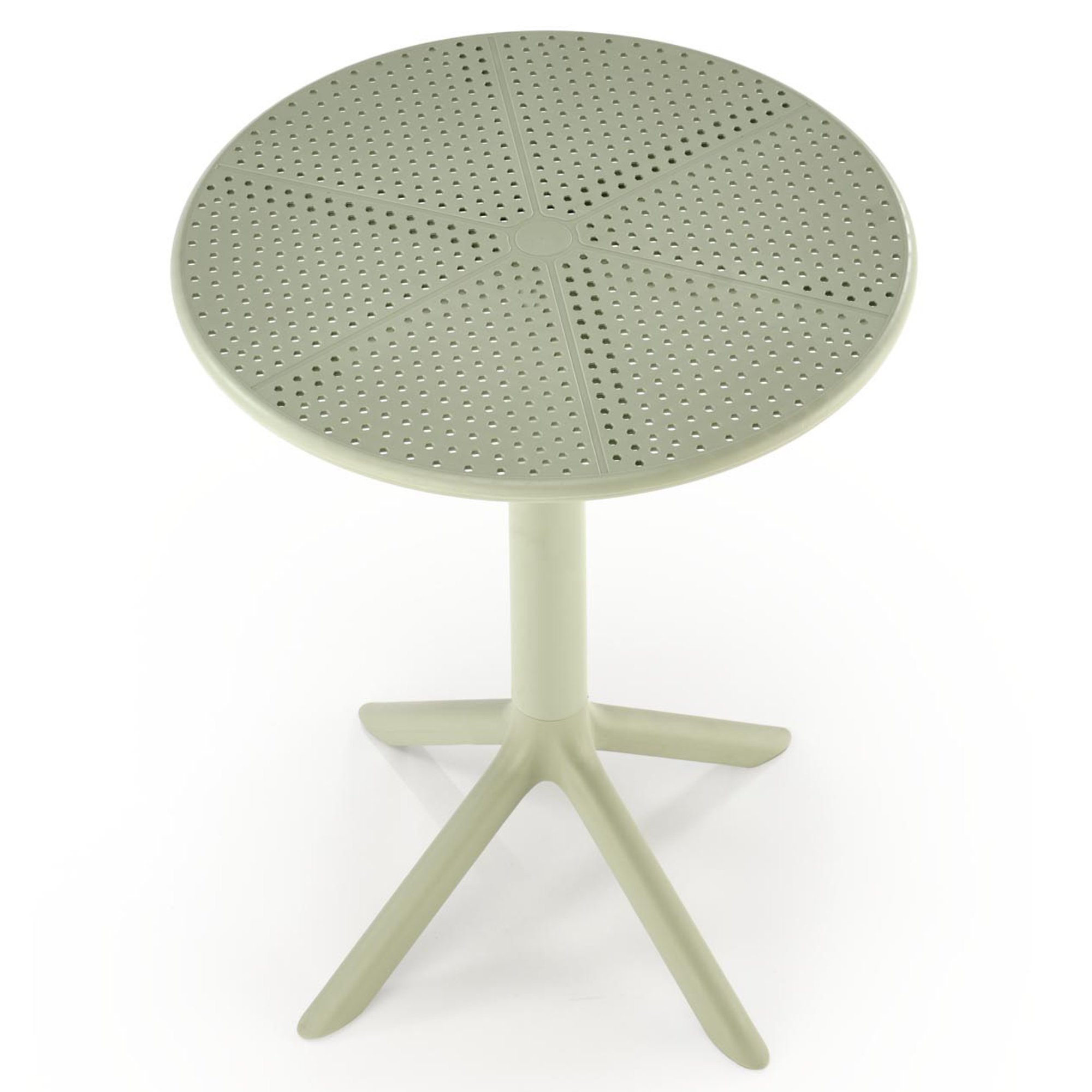 Vyrobený je z kvalitného polypropylénu, vďaka ktorému je stôl odolnejší proti mechanickému poškodeniu a zároveň sa veľmi ľahko udržuje. Menšia okrúhla doska ponúka dostatok miesta na odloženie nápojov alebo menšieho občerstvenia. Celkovú stabilitu zaisťuje trojnohá podnož.