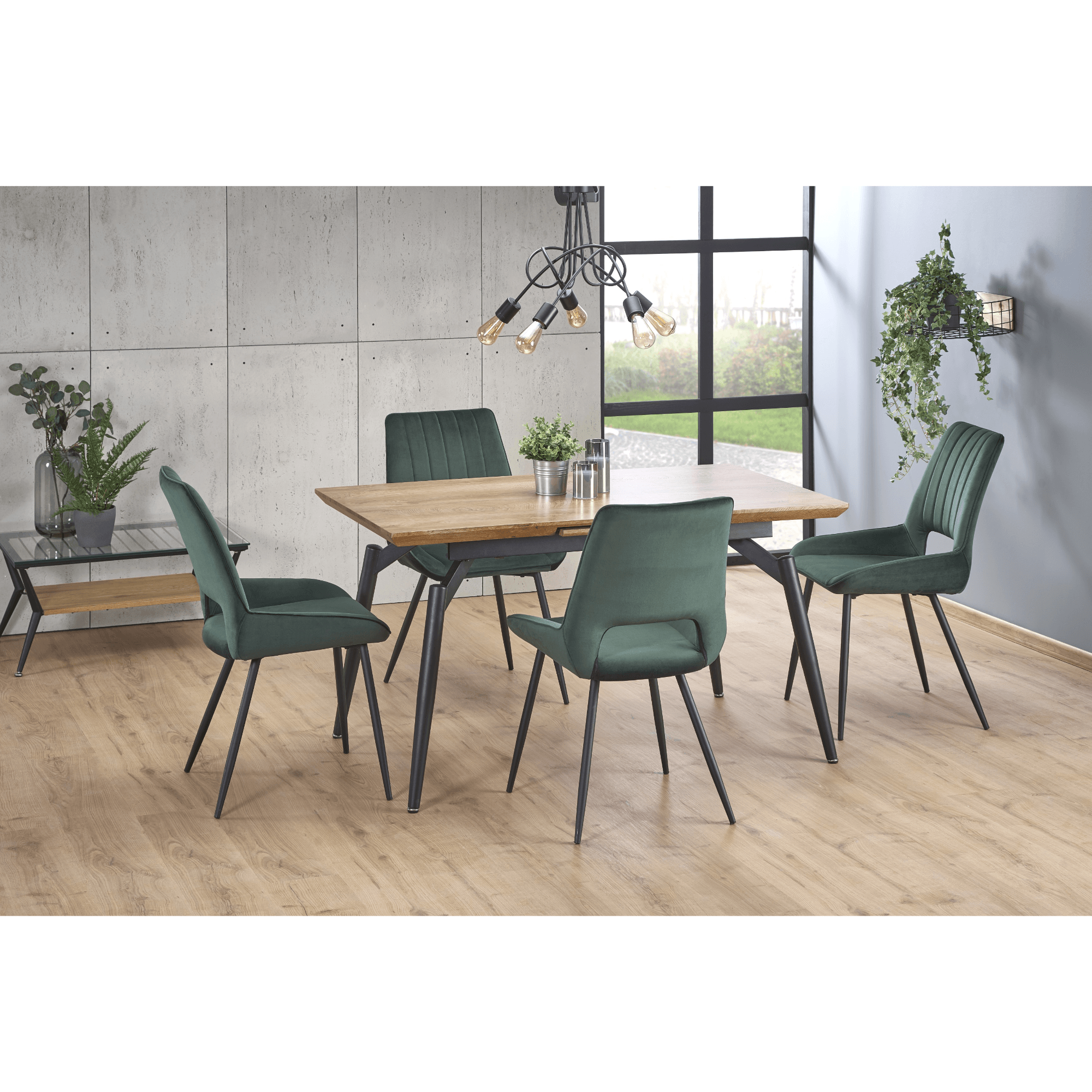 Odkladacia doska je vyrobená z kombinácie drevovláknitého materiálu MDF a prírodnej dyhy, ktorá obohatí interiér o nádych prírody. Maximálnu stabilitu zaisťuje štvorica nôh z kovu – tie sú ošetrené čiernym práškovým lakom. Komfort stolovania je podporený funkciou rozloženia na dostatočných 180 cm. Nosnosť je dostatočných 40 kg.