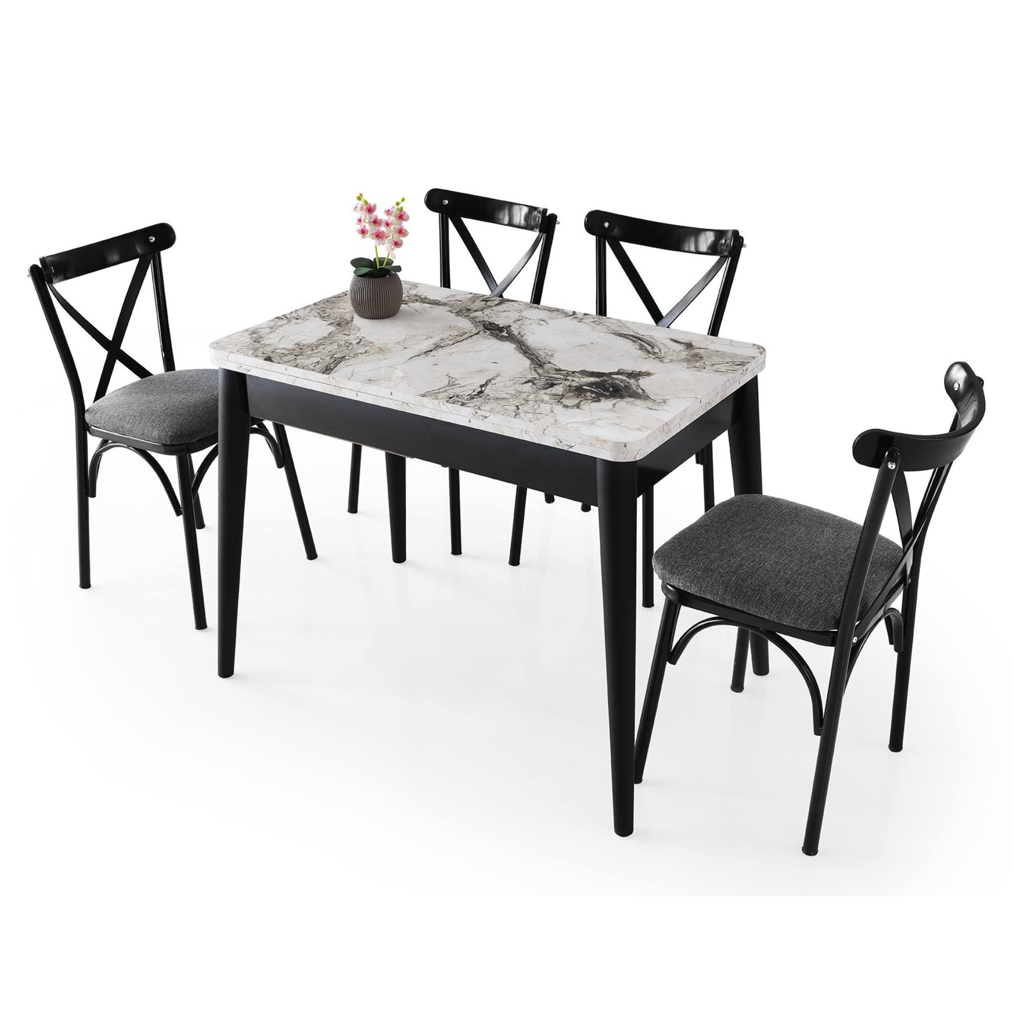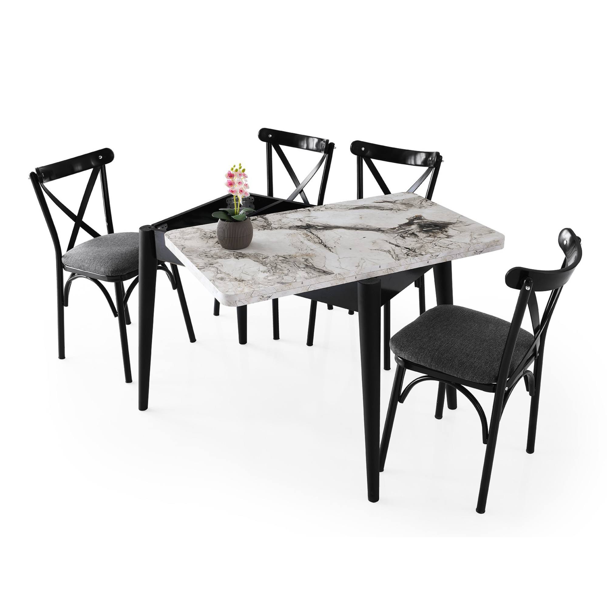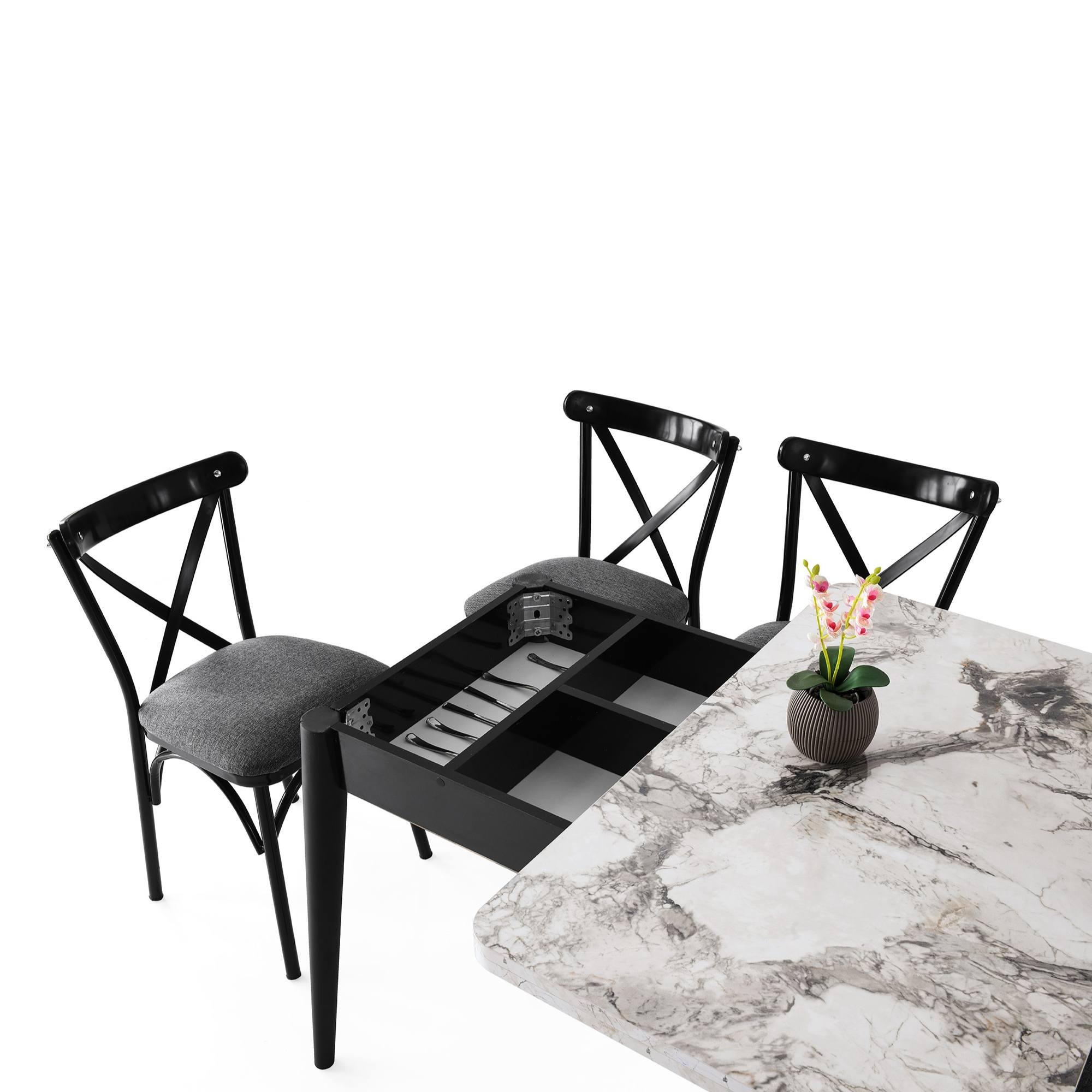 Jedálenský stôl DOLUNAY - biely mramor/čierna