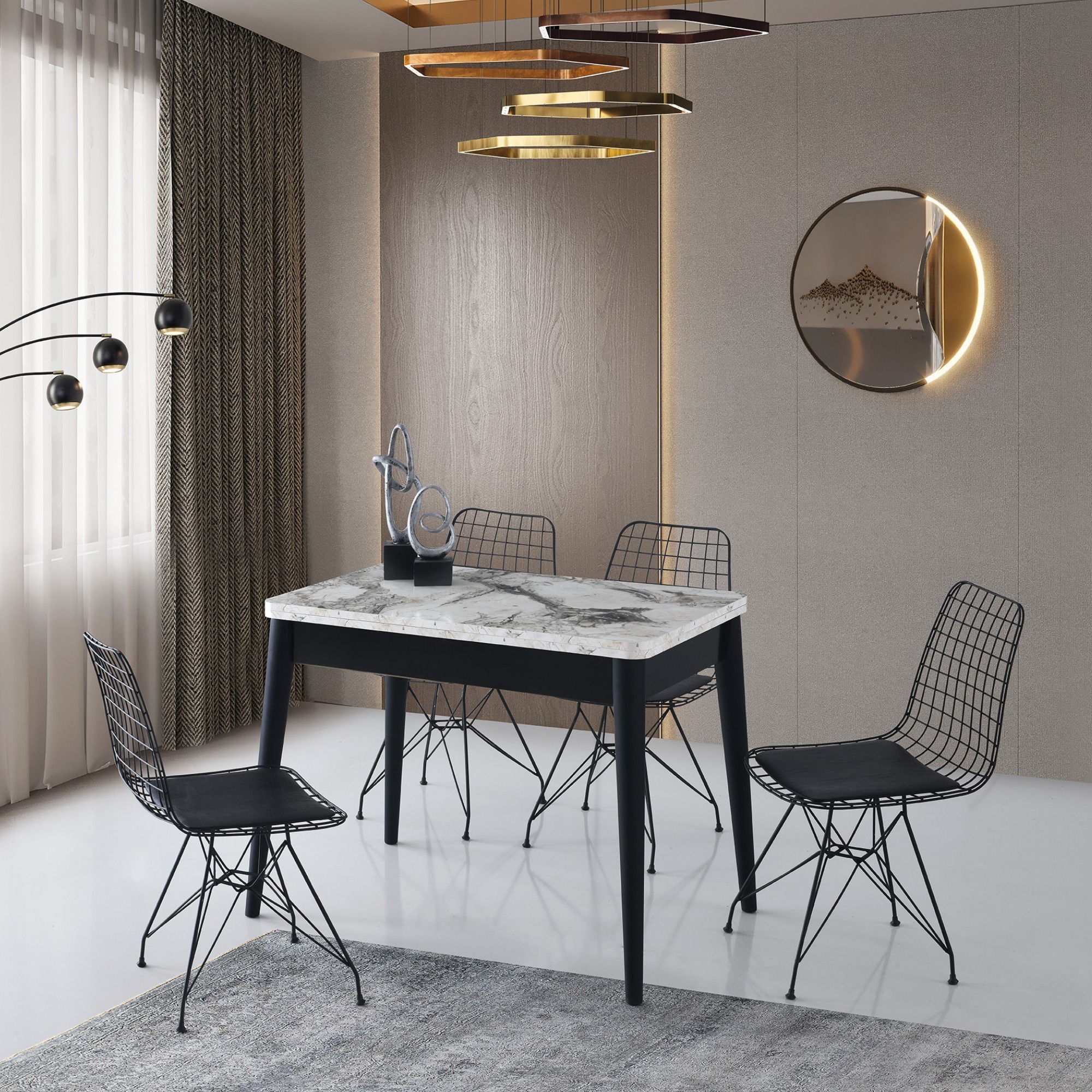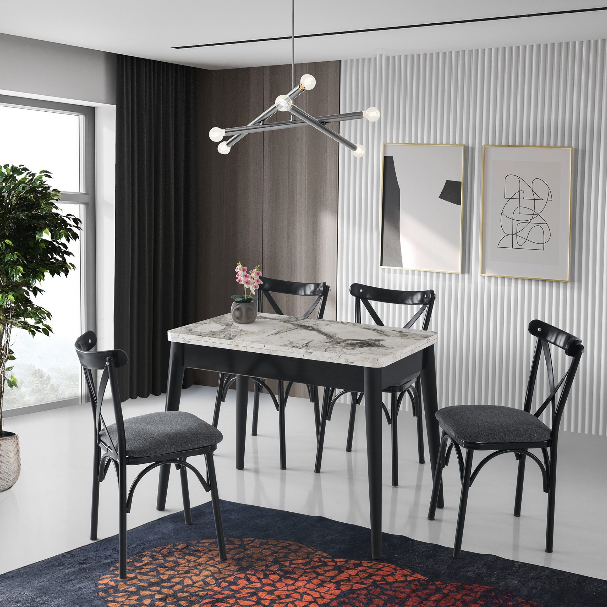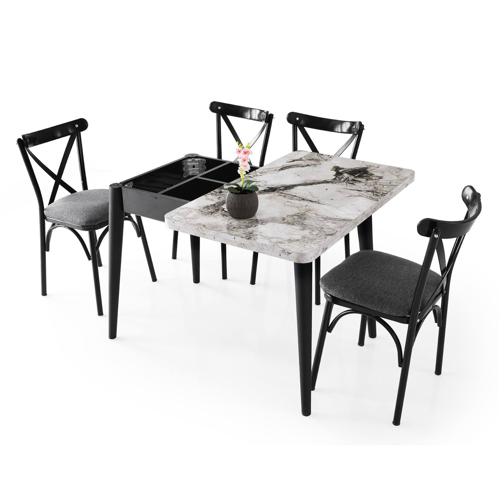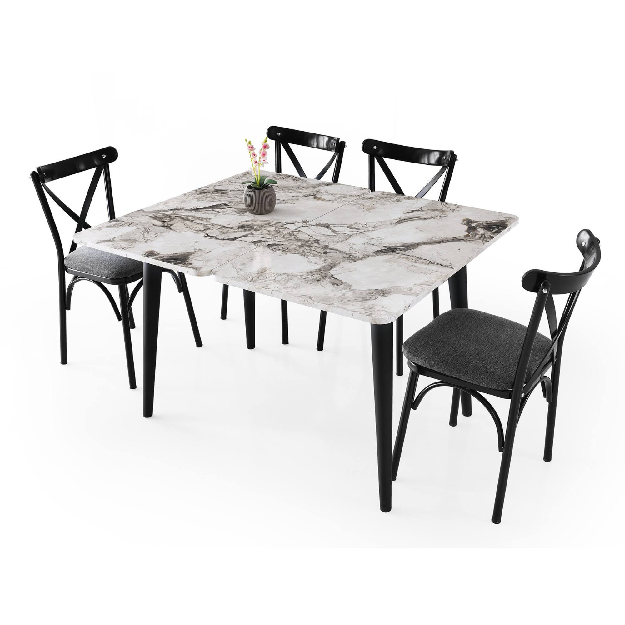 Jedálenský stôl DOLUNAY - biely mramor/čierna