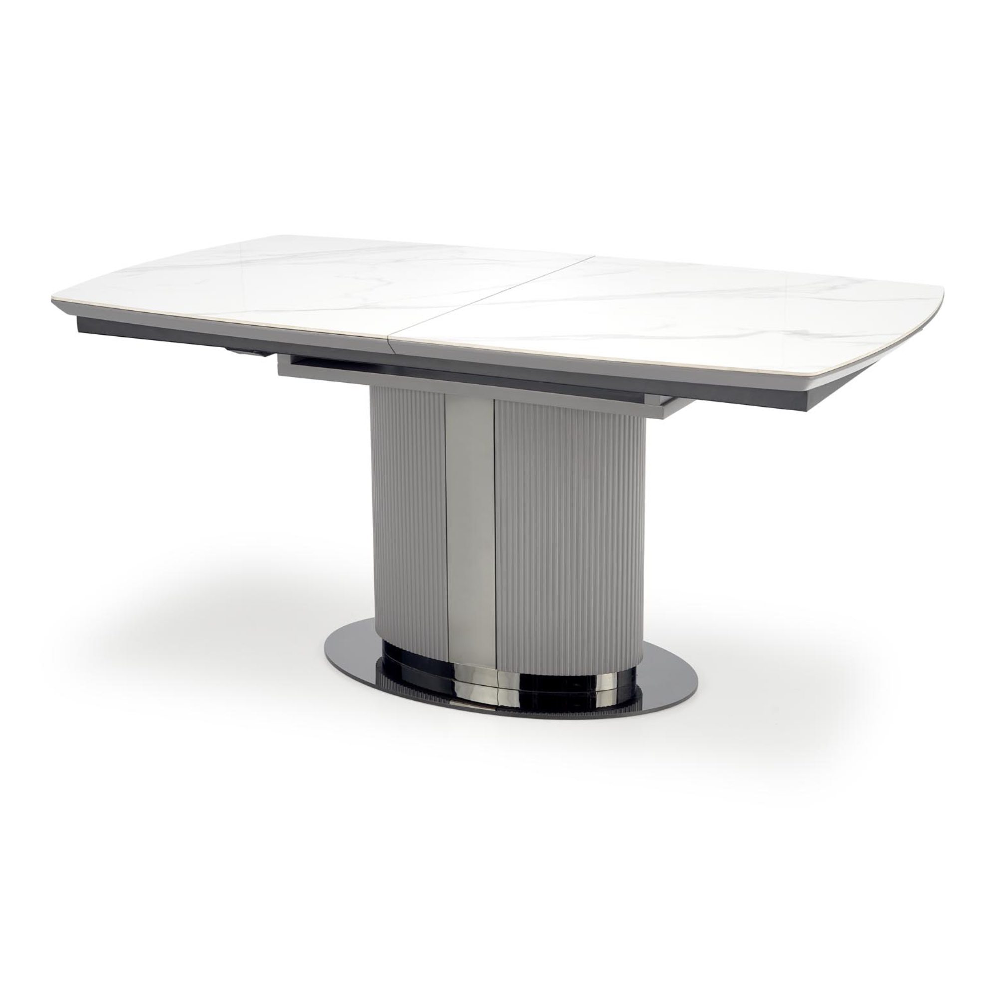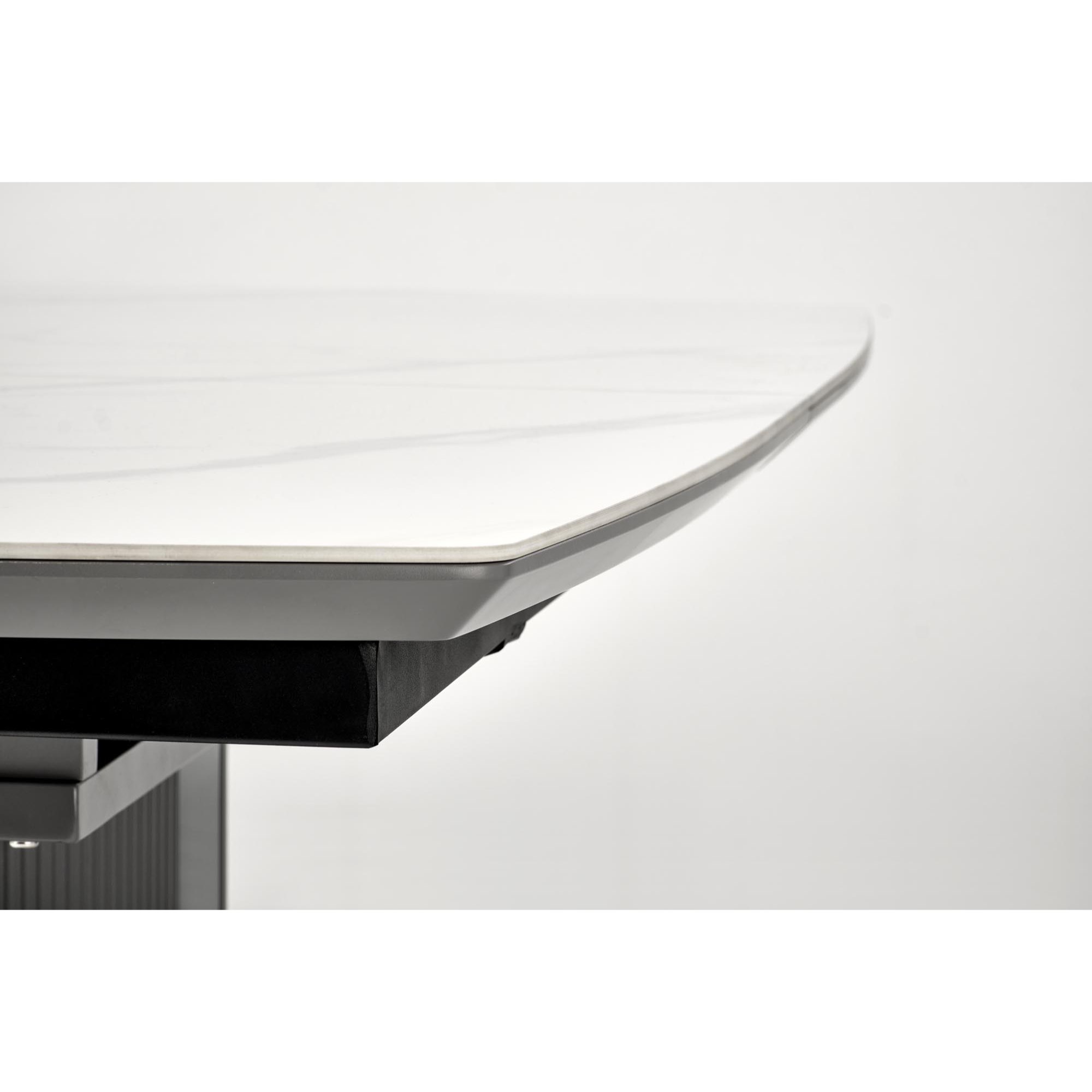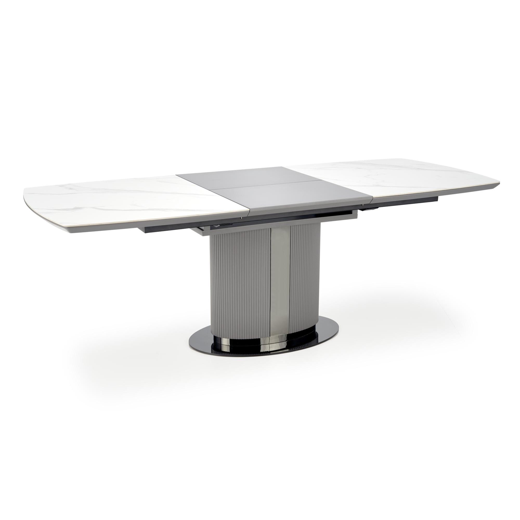 Hlavná plocha je vyrobená z vysoko kvalitnej keramickej dosky v honosnom dekore bieleho mramoru, jej podklad tvorí doska z MDF. Maximálnu stabilitu zabezpečuje robustná stredová podnož z MDF. Komfort stolovania je navyše podporený rozkladacou funkciou na štedrých 220 cm, k stolu sa tak usadí až 8 osôb – hravo pohostí celú rodinu aj priateľov.
