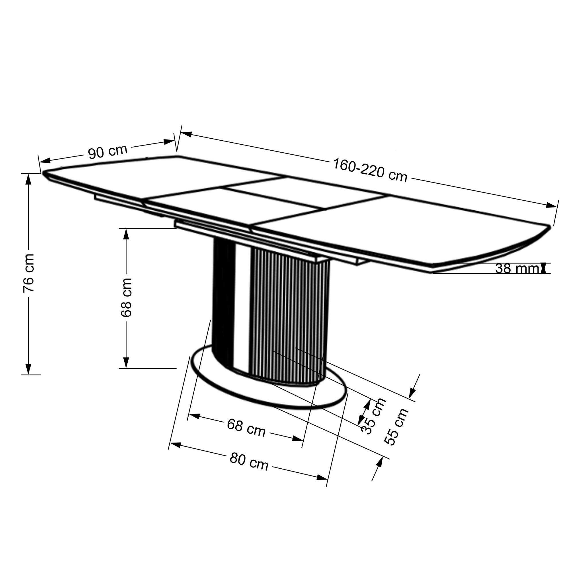 | Nastaviteľná šírka dosky stola v rozmedzí (cm): | 160-220 |