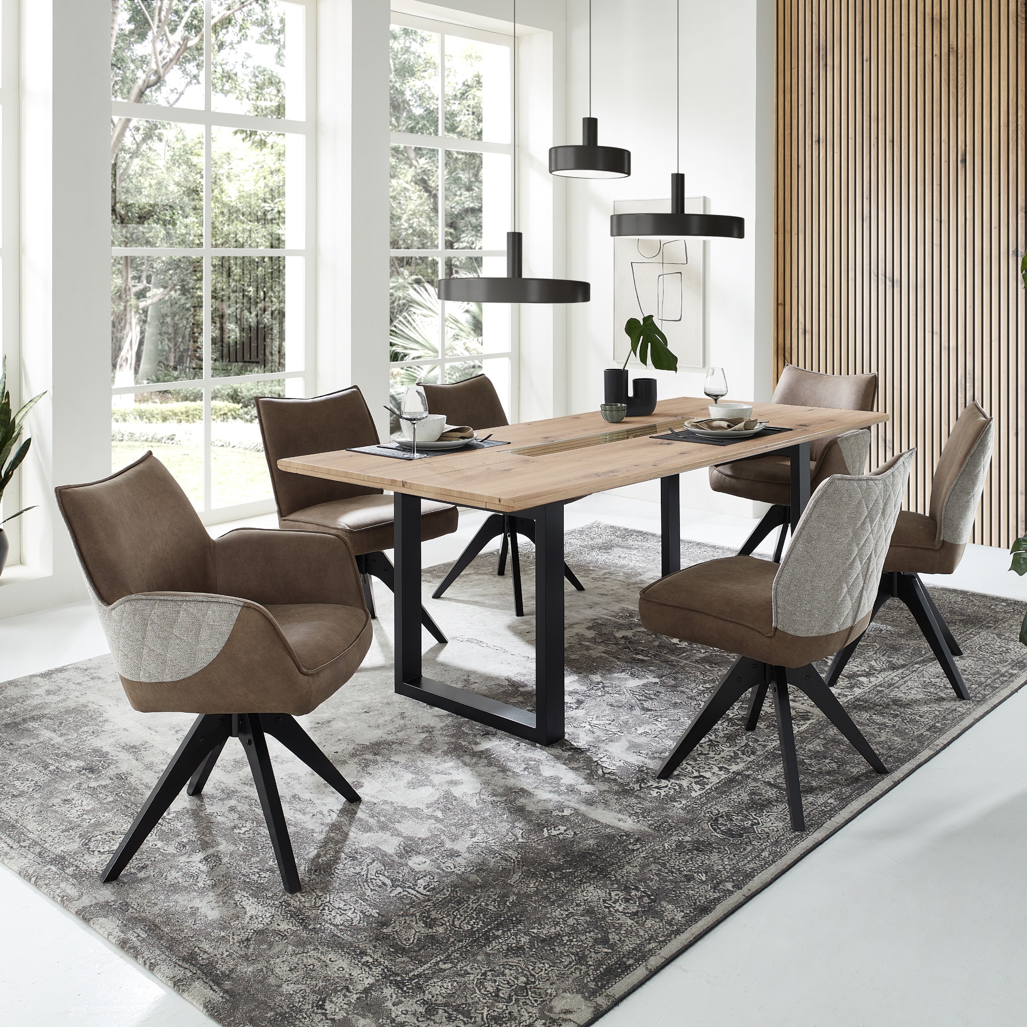 Jedálenský stôl FRESNO - dub artisan/čierna, U-konštrukcia, šírka 180 cm