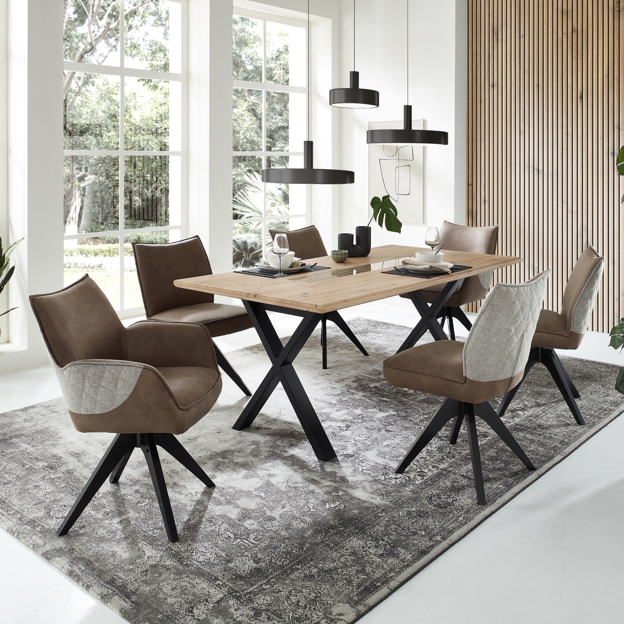 Jedálenský stôl FRESNO - dub artisan/čierna, X-konštrukcia, šírka 180 cm