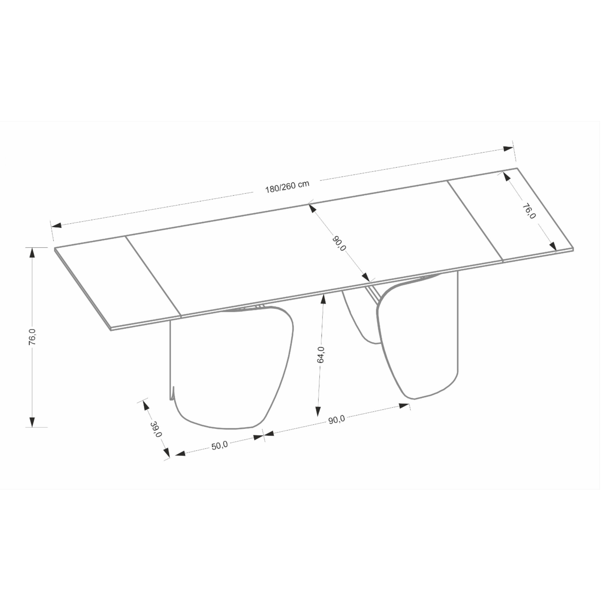 | Nastaviteľná šírka dosky stola v rozmedzí (cm): | 180 - 260 |