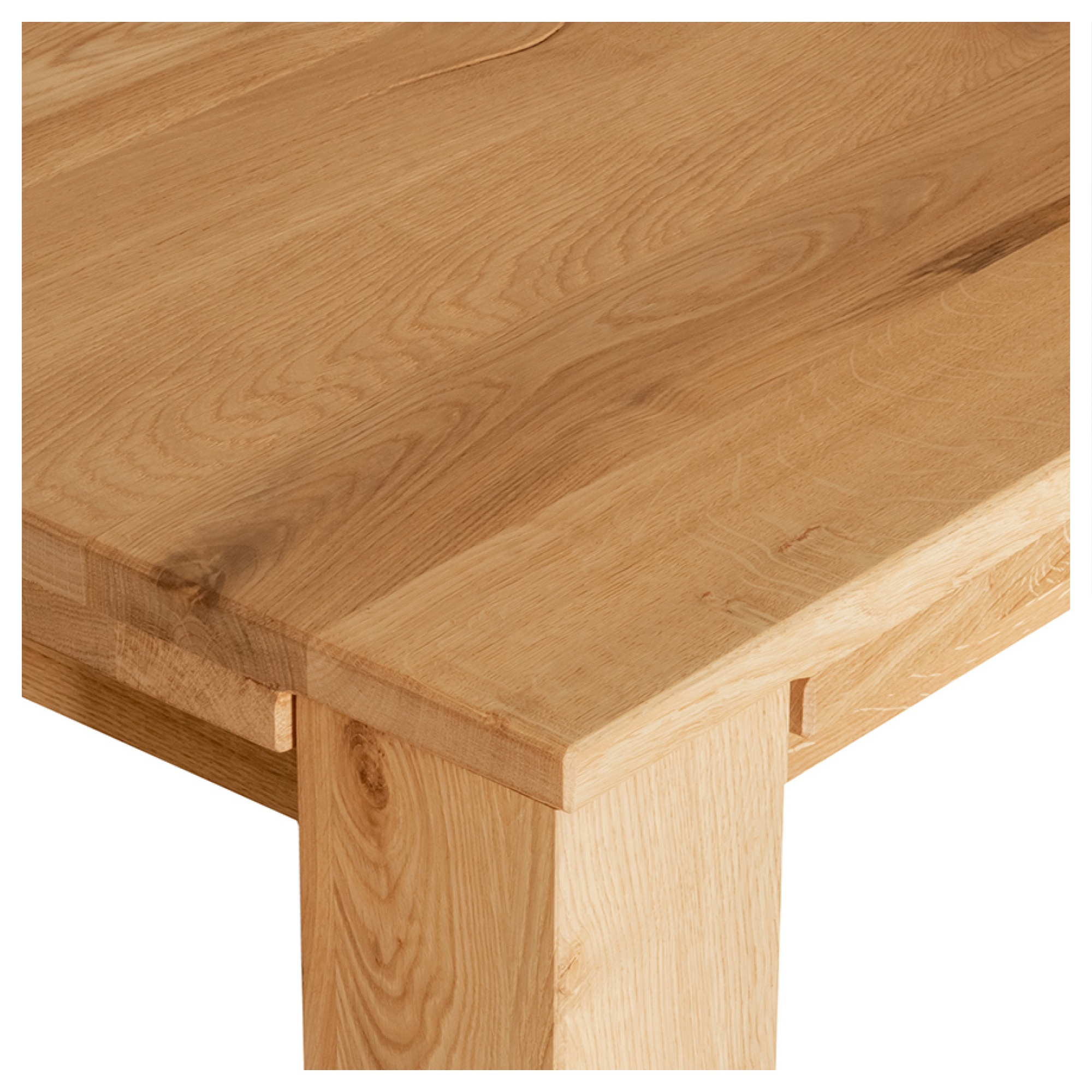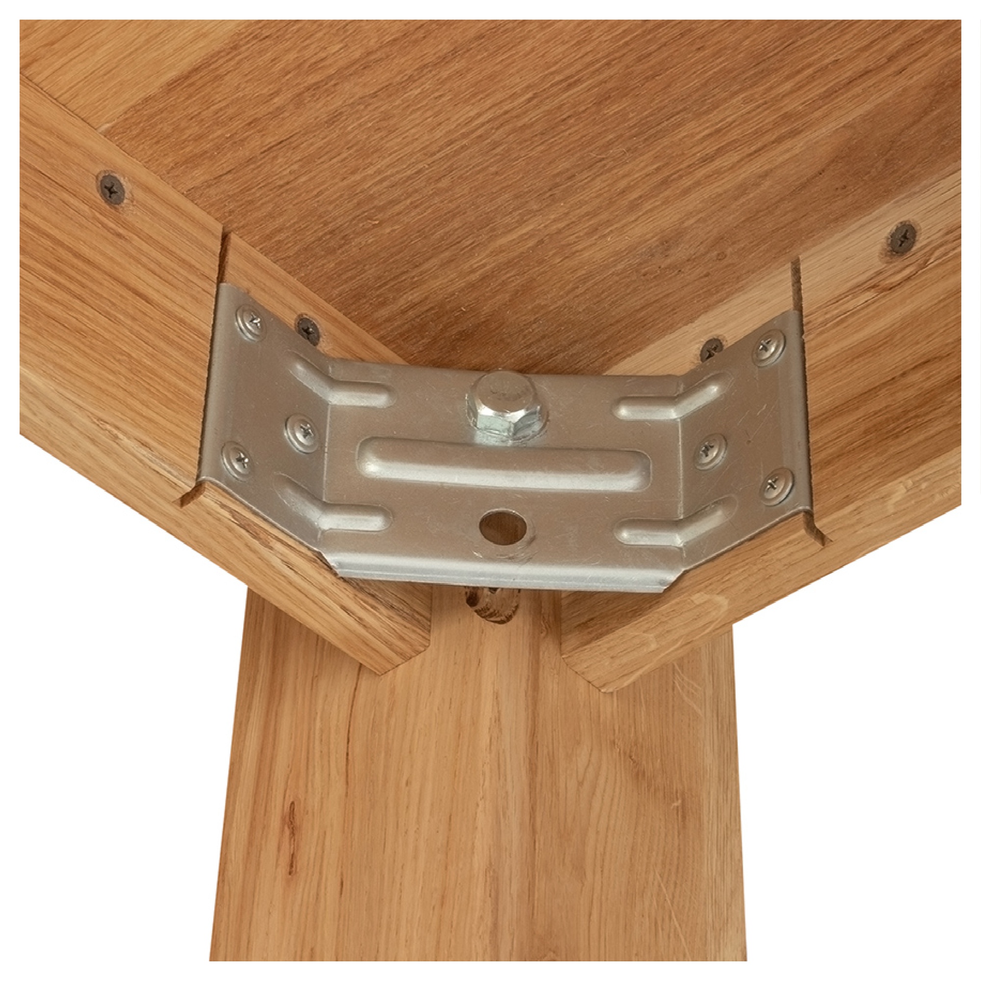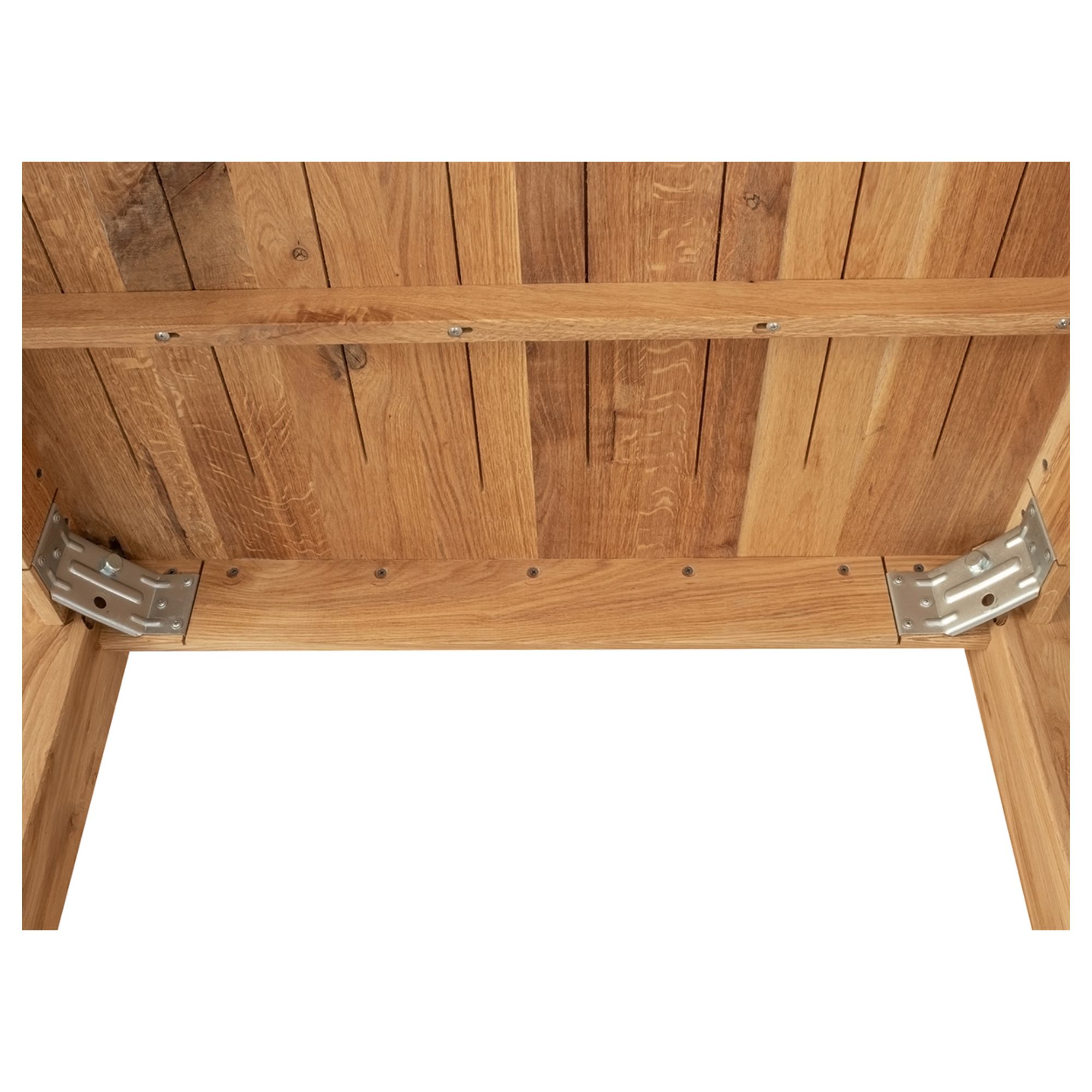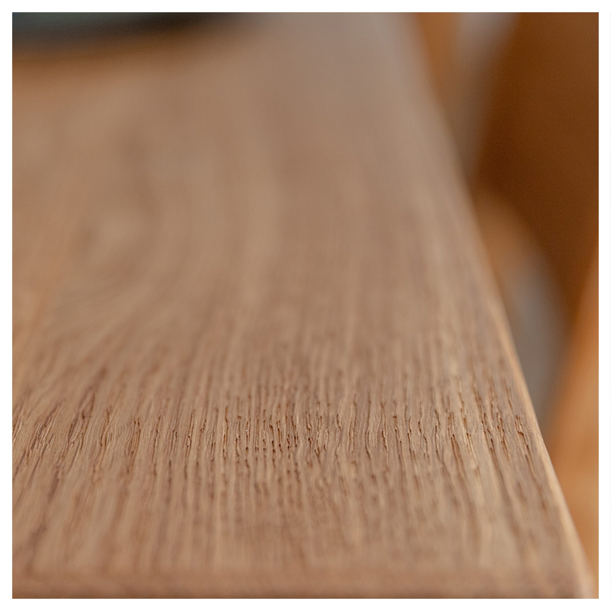 Jeho konštrukcia je vyrobená z masívneho dubového dreva s prirodzenou kresbou, ktorá robí z každého kusa originál. Olejovaný povrch potom zaručuje dlhú životnosť, jednoduchú údržbu a umožňuje prípadnú renováciu. Potrebnú stabilitu zaisťuje pevná a robustná podnož.