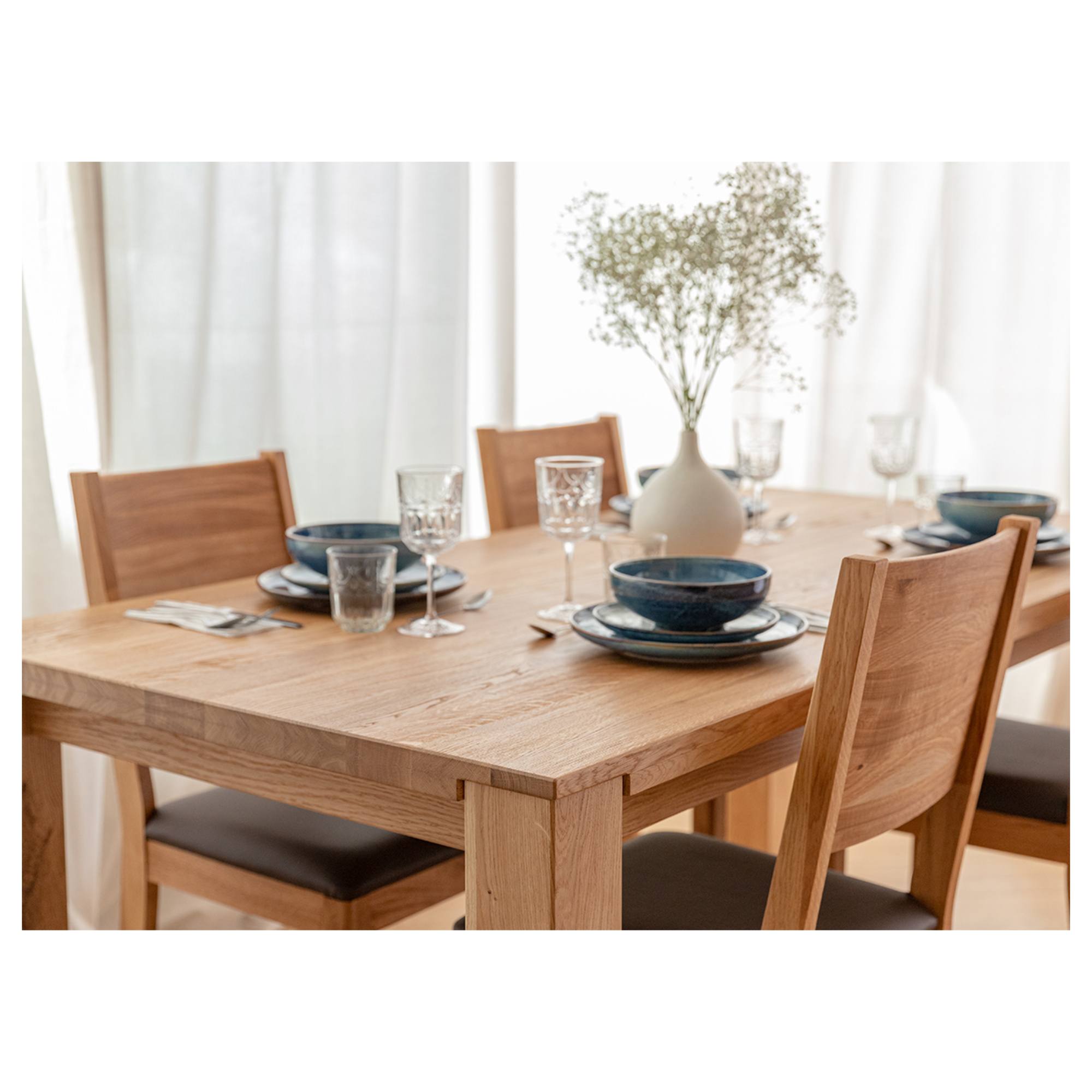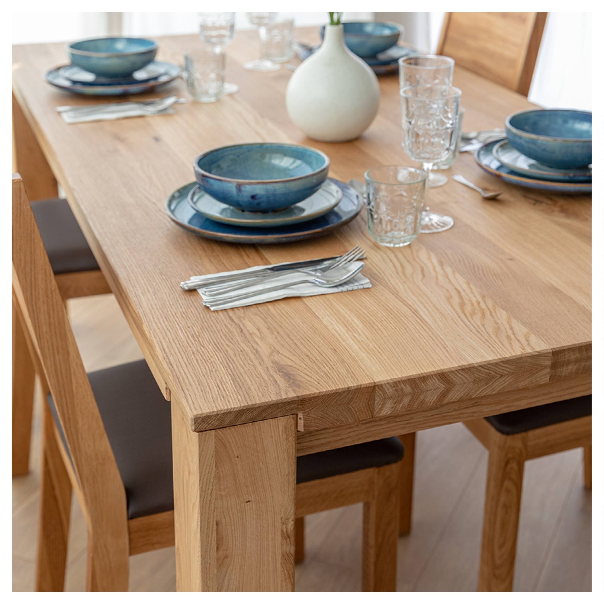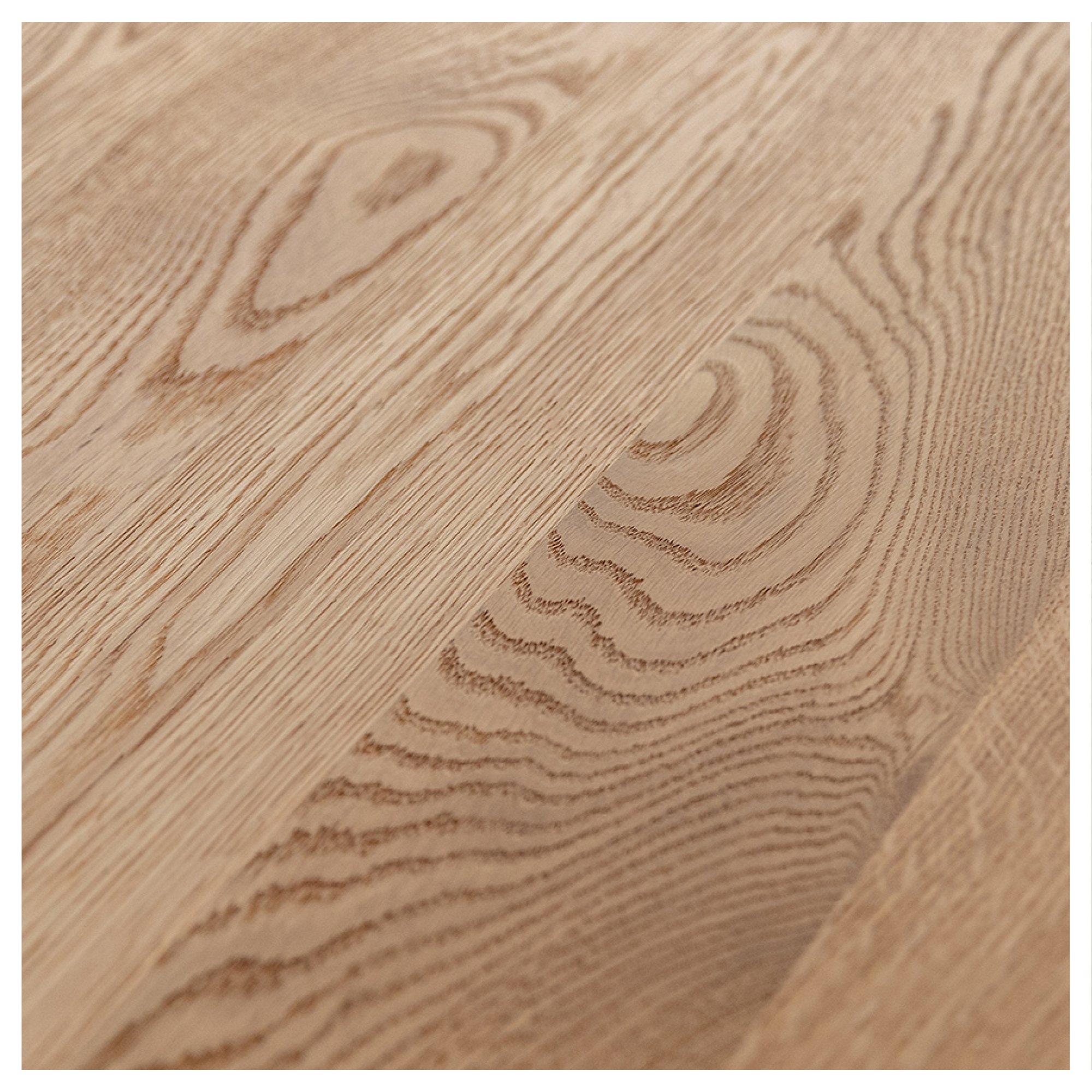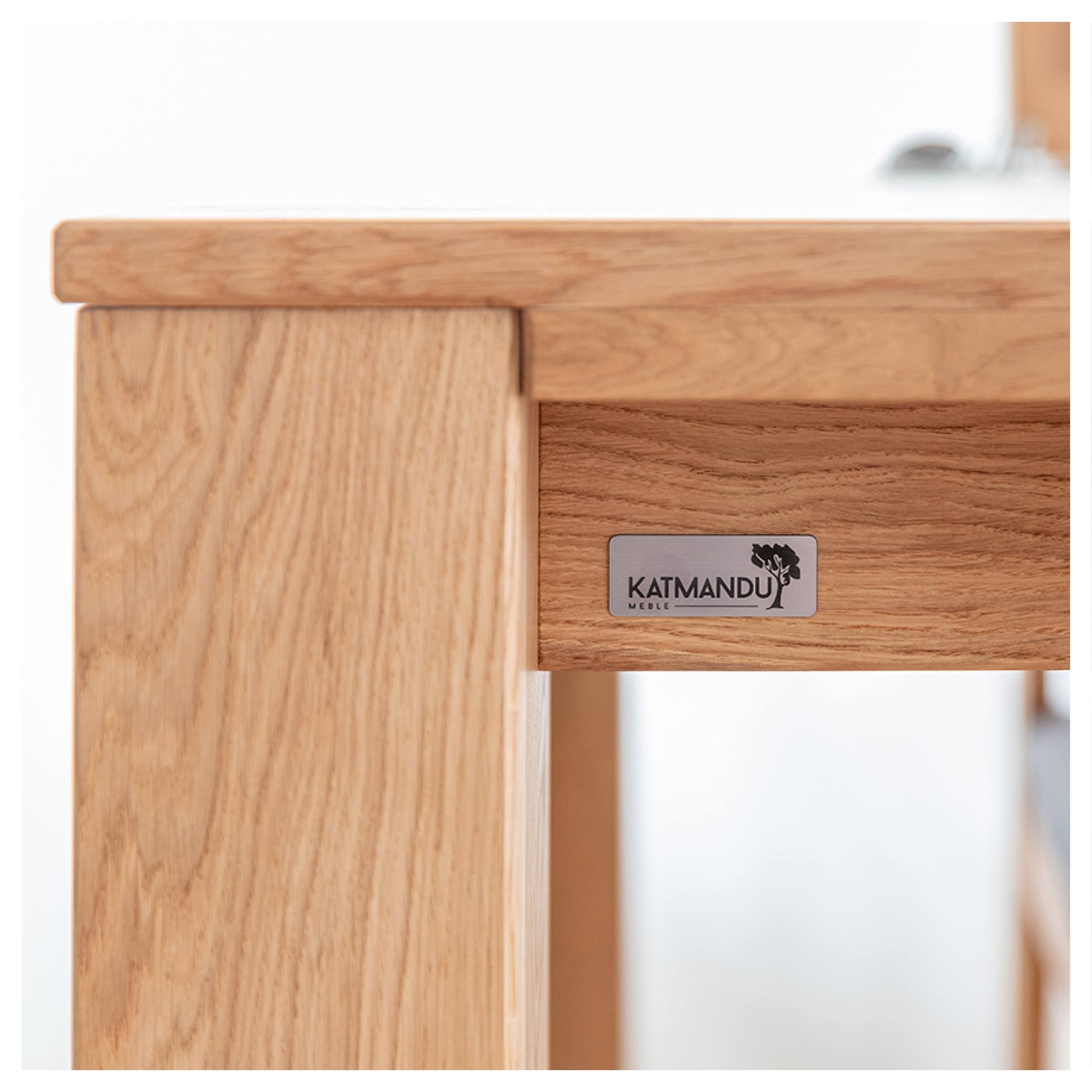 Jeho konštrukcia je vyrobená z masívneho dubového dreva s prirodzenou kresbou, ktorá robí z každého kusa originál. Olejovaný povrch potom zaručuje dlhú životnosť, jednoduchú údržbu a umožňuje prípadnú renováciu. Potrebnú stabilitu zaisťuje pevná a robustná podnož.