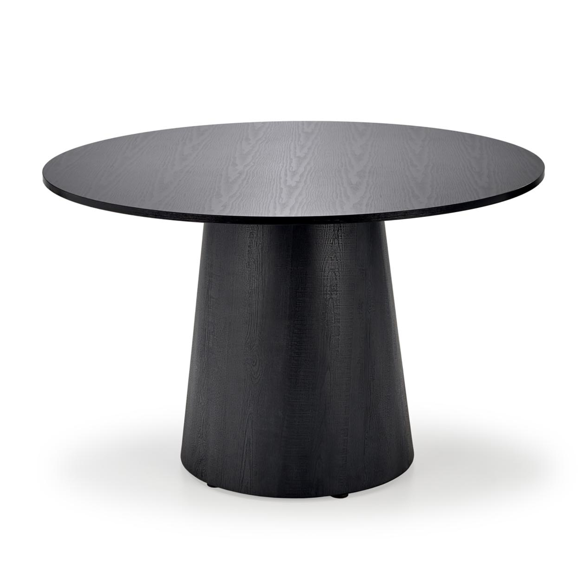 Hlavná kruhová doska, rovnako ako stabilná centrálna podnož, je vyrobená ** kombinácie drevovláknitého materiálu MDF a dyhy**. Priemer 120 cm zaistí, že sa k stolu pohodlne usadí až päť osôb. Nosnosť je dostatočných 30 kg.
