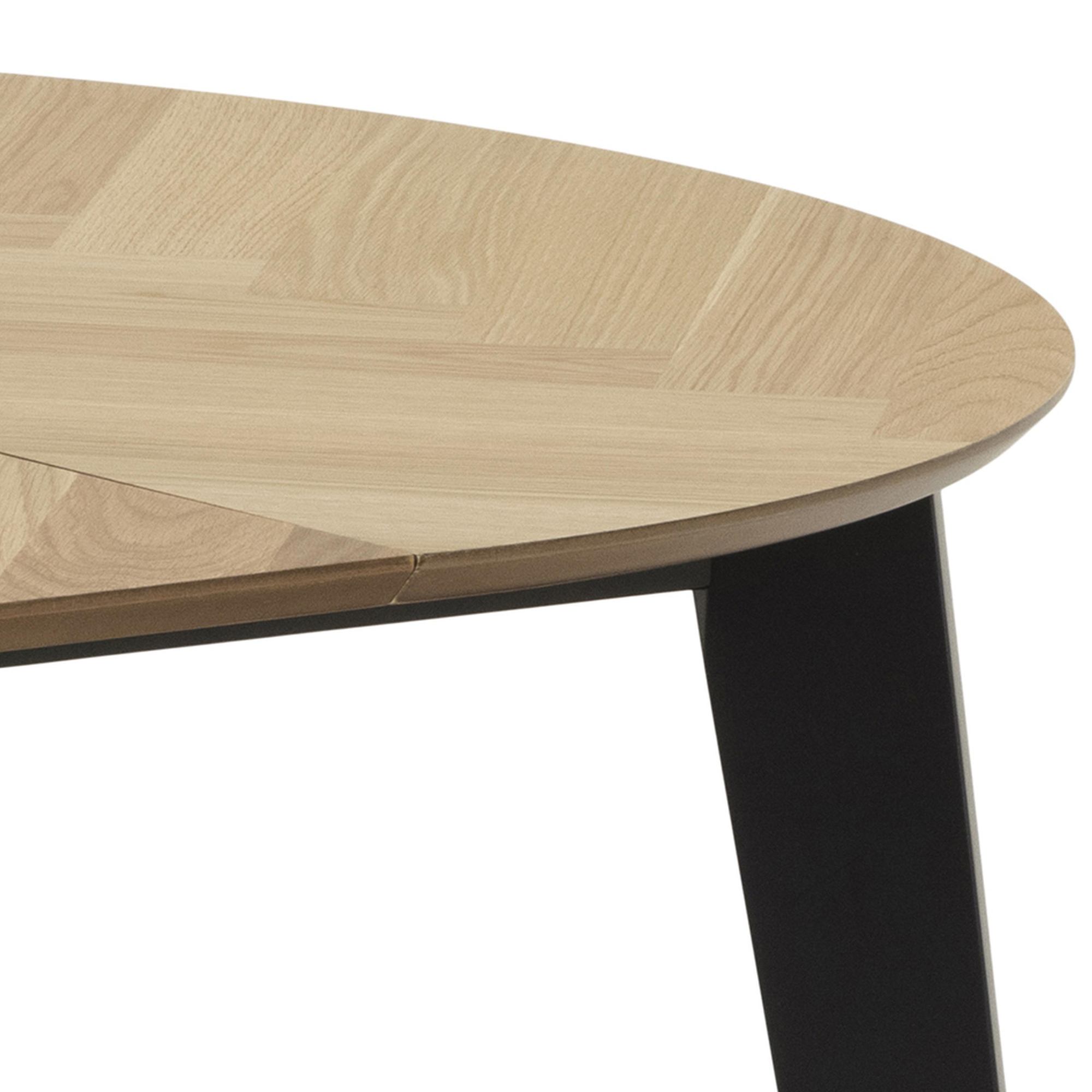 Stôl stojí na pevných a stabilných nohách, ktoré sú vyrobené z masívneho kaučukovníkového dreva. Horná doska je z laminovaného drevotrieskového materiálu doplneného dubovou dyhou, ktorý je nenáročný na údržbu.