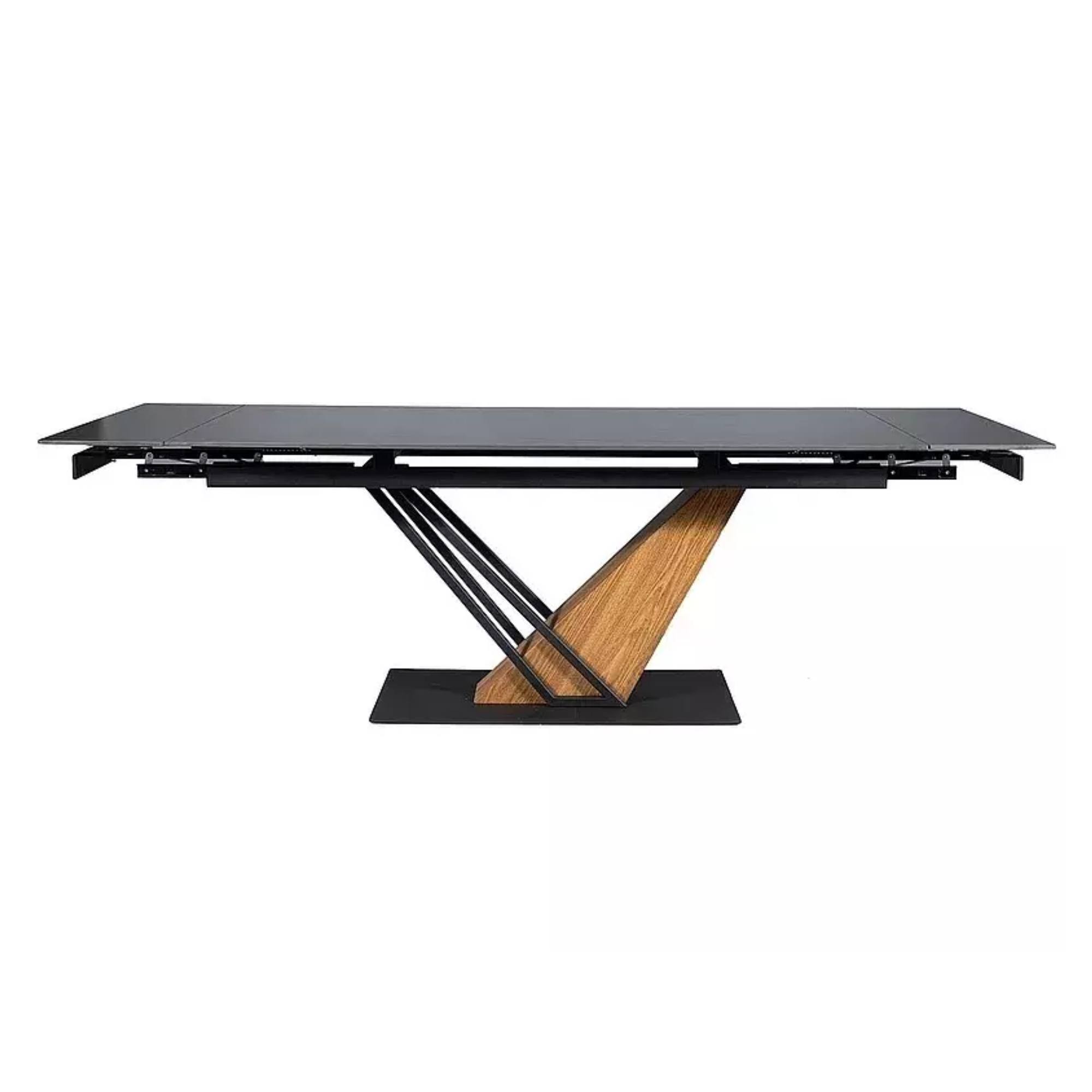 Stôl za svoju stabilitu vďačí pevnej stredovej nohe z kovu a drevovláknitej dosky MDF doplnenej dyhou. Jeho doska je vyrobená z keramiky. Vďaka originálnemu a štýlovému dizajnu sa stôl bezpochyby stane dominantou vášho interiéru.