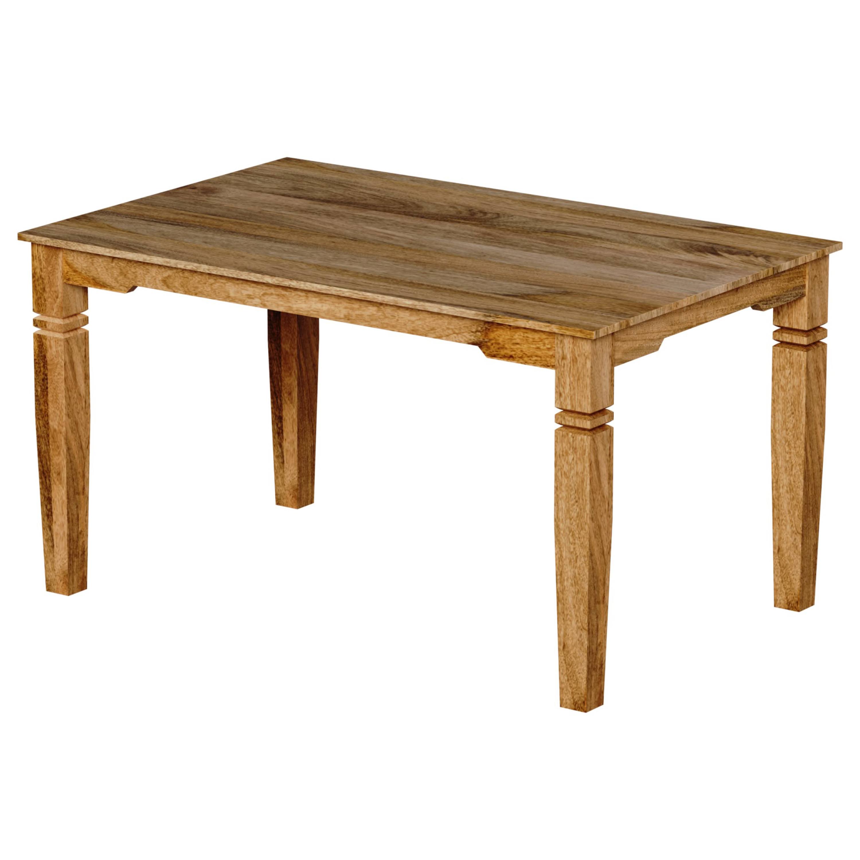 Jedálenský stôl GURUNU 140 je vyrobený z masívneho mangového dreva v prírodnej povrchovej úprave, ktorá zvýrazňuje jeho pevnosť a prirodzenú kresbu, vďaka čomu je každý kus nábytku jedinečný.