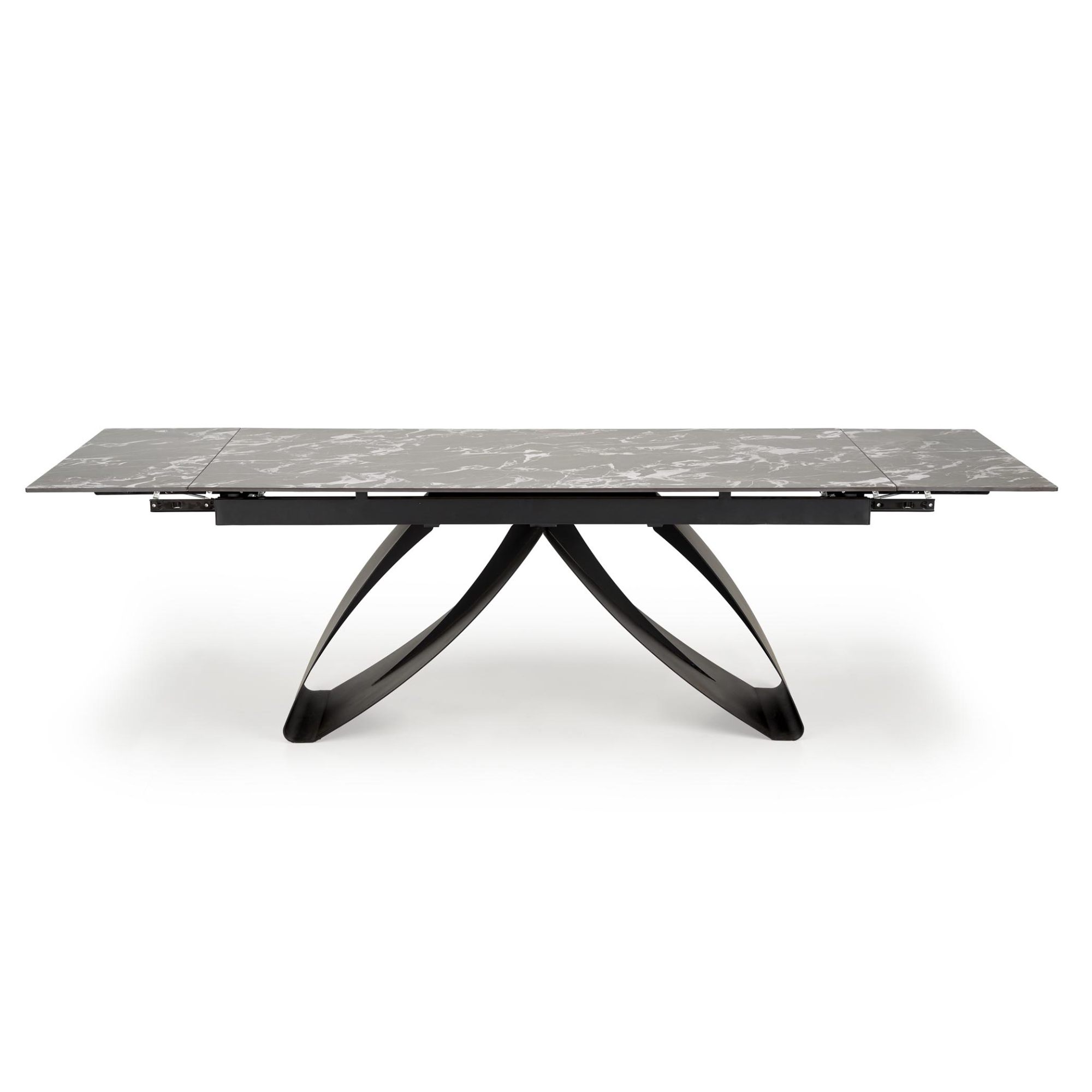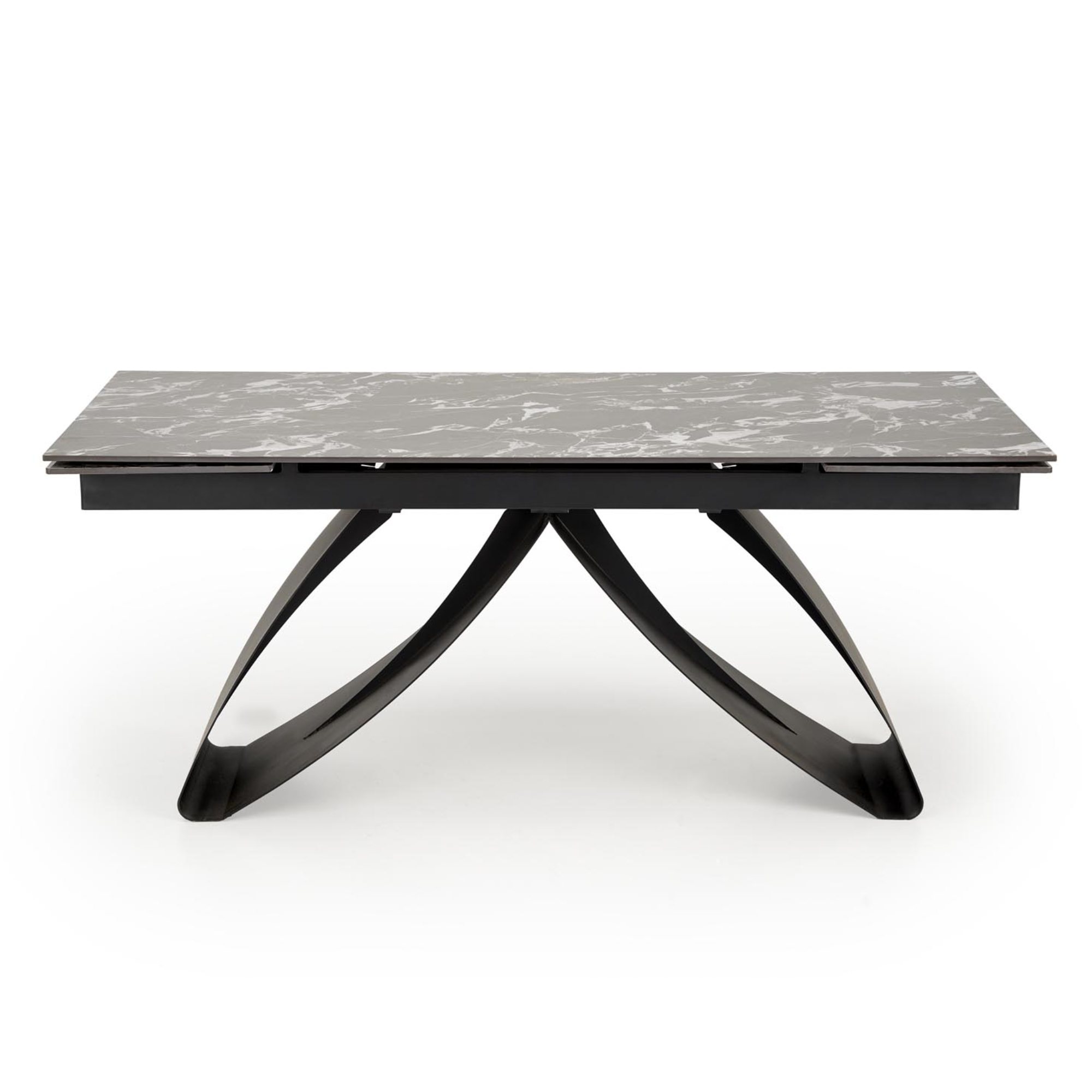 Pevná a stabilná konštrukcia stola je vyrobená z kovu a jej povrch je pokrytý práškovým nástrekom. Doska je zo spekaného kameňa.