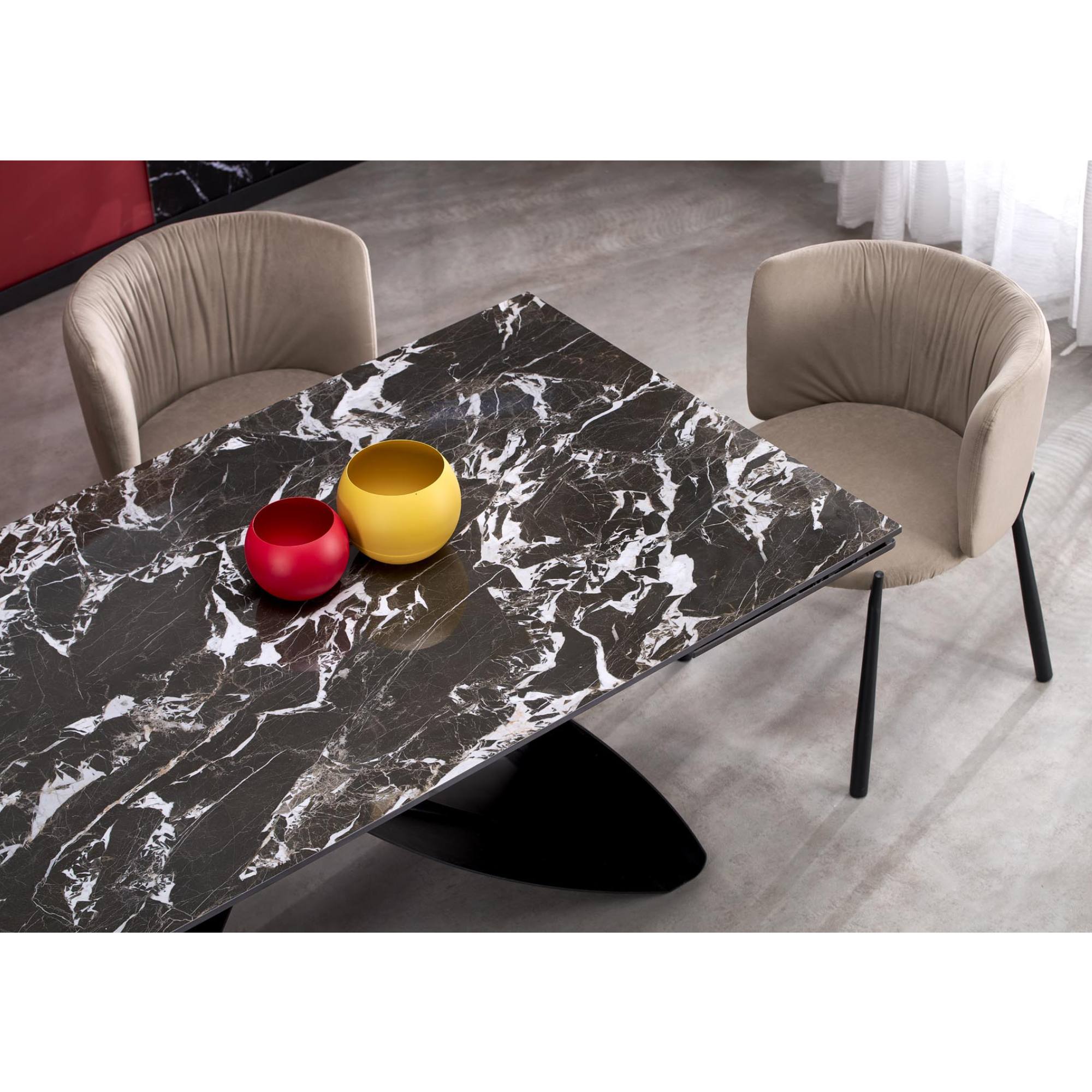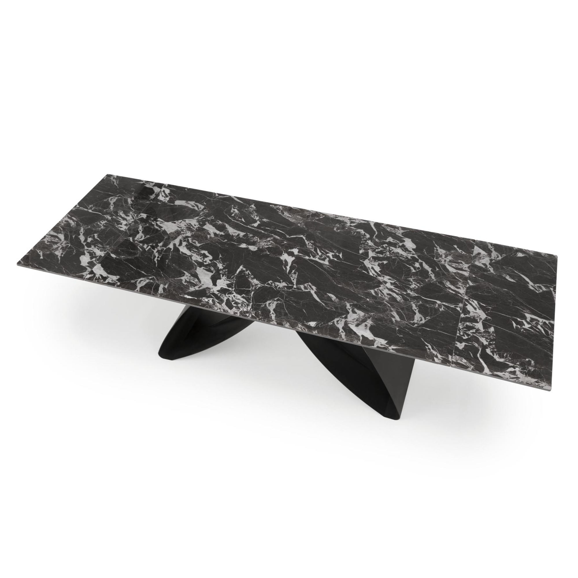 Jedálenský stôl HALORAU - čierny mramor/čierna