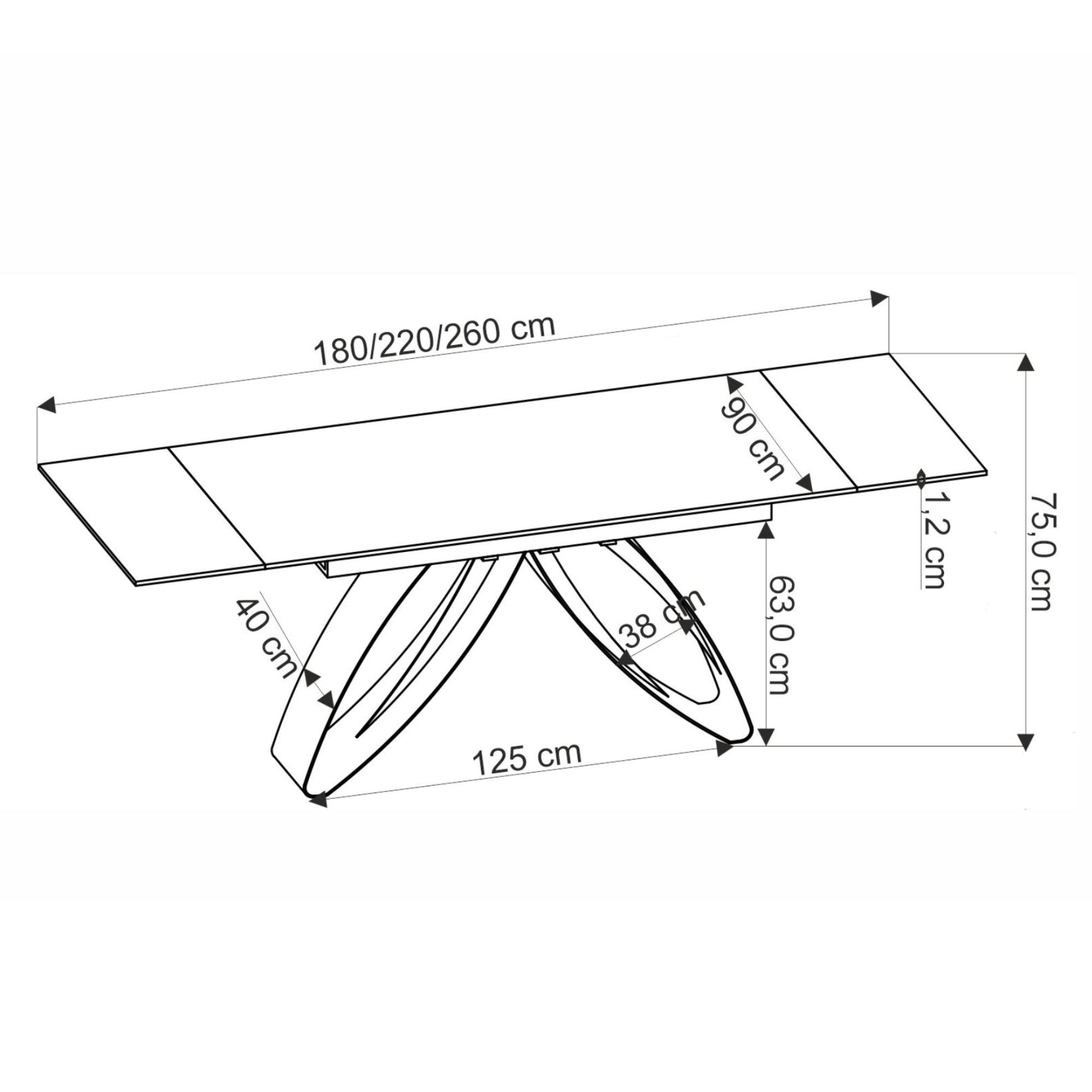 | Nastaviteľná šírka dosky stola v rozmedzí (cm): | 180 - 260 |