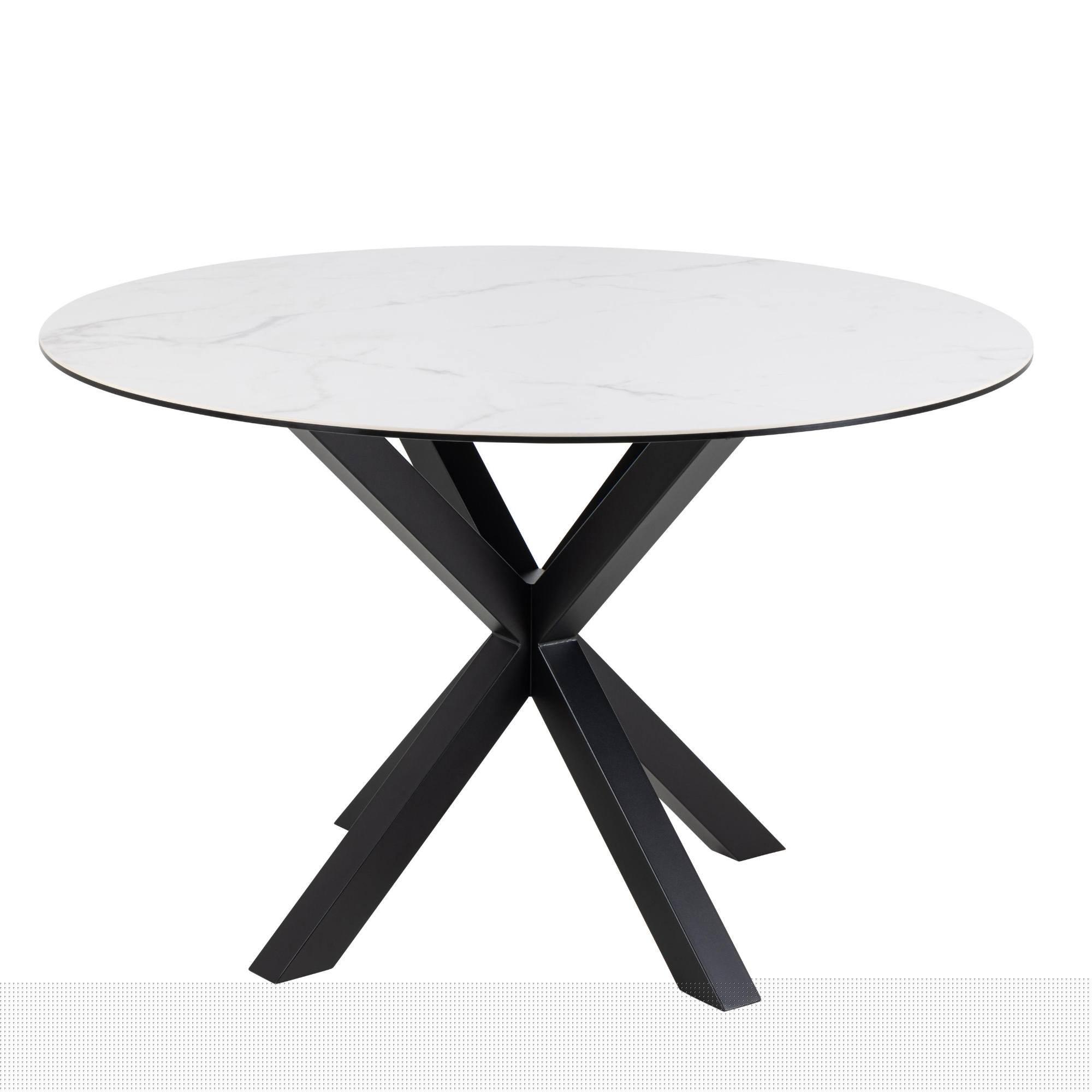 Stôl disponuje pevnými kovovými nohami pokrytými matným lakom, ktoré sú zárukou jeho stability. Jeho doska je vyrobená z keramiky a je odolná voči teplu. Tieto materiály sú nenáročné na údržbu, a tak starostlivosť o stôl bez problémov zvládnete.