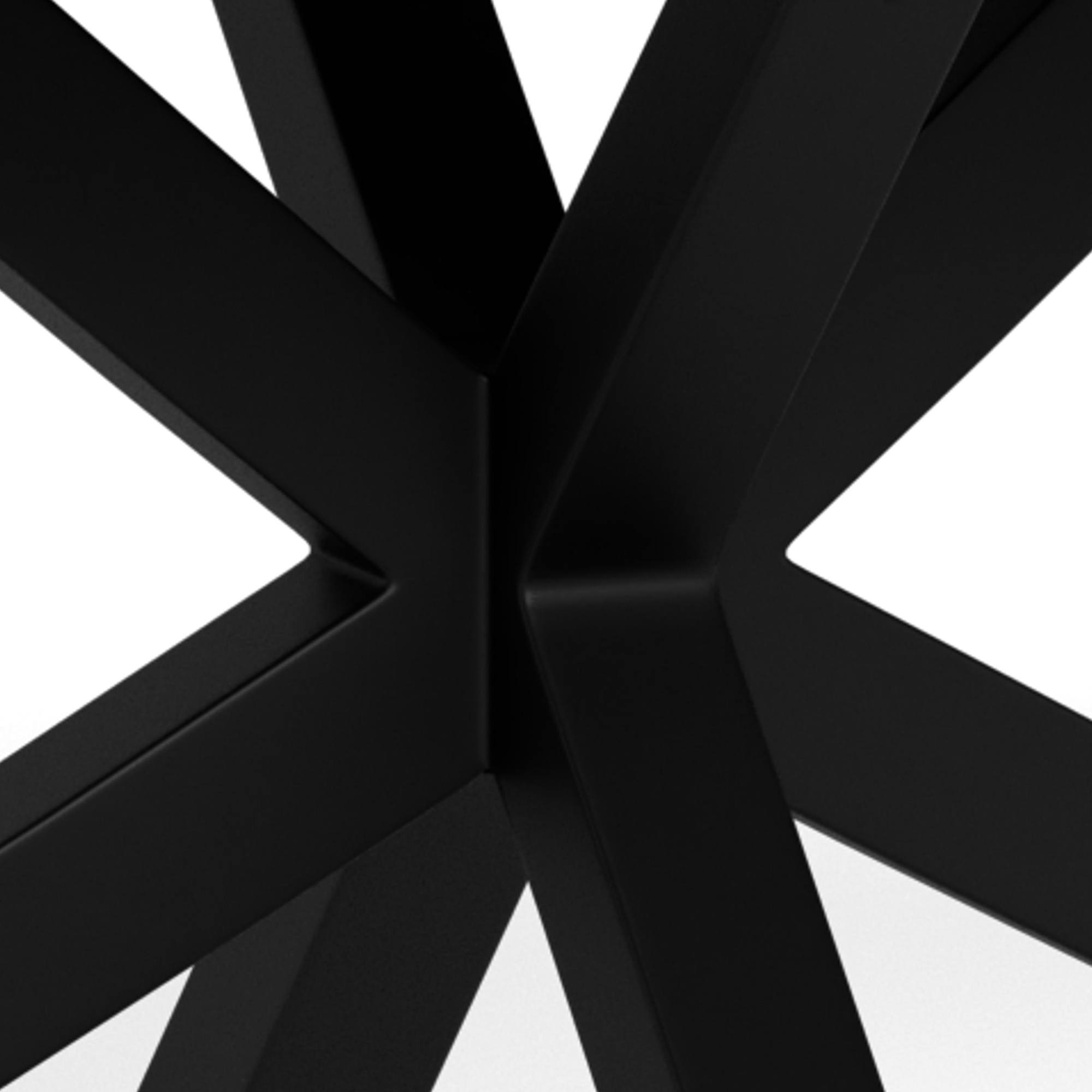 Stabilné prekrížené nohy, na ktorých tento stôl stojí, sú vyrobené z ocele a ich povrch je opatrený práškovým nástrekom. Horná doska je z kombinácie kvalitnej keramiky a skla odolnej voči teplu a poškriabaniu.