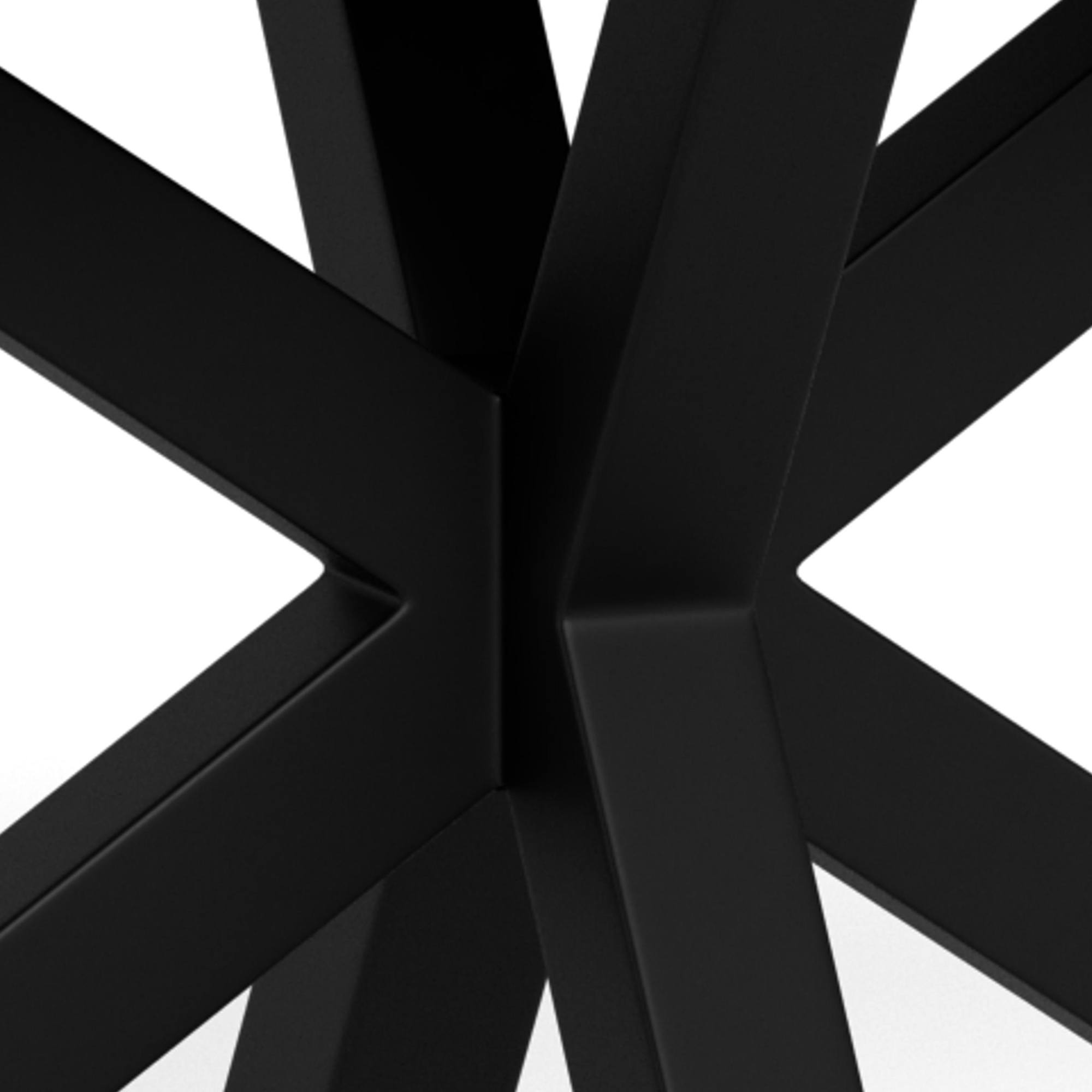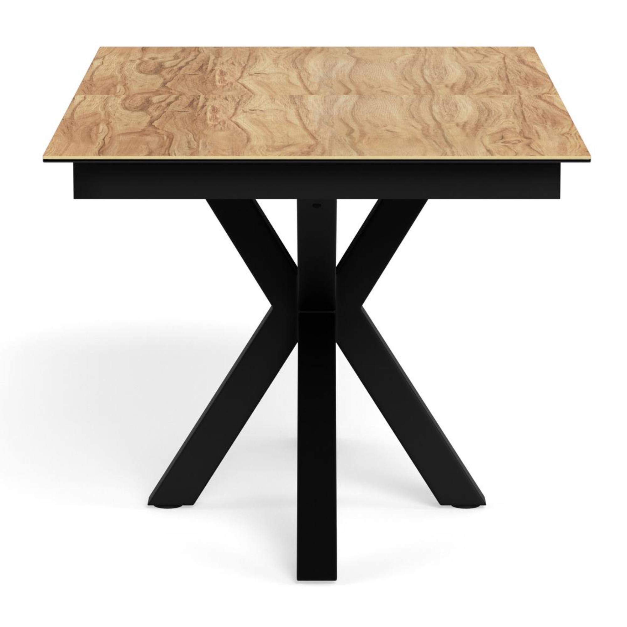 Stabilné prekrížené nohy, na ktorých tento stôl stojí, sú vyrobené z ocele a ich povrch je opatrený práškovým nástrekom. Horná doska je z kombinácie kvalitnej keramiky a skla odolnej voči teplu a poškriabaniu.
