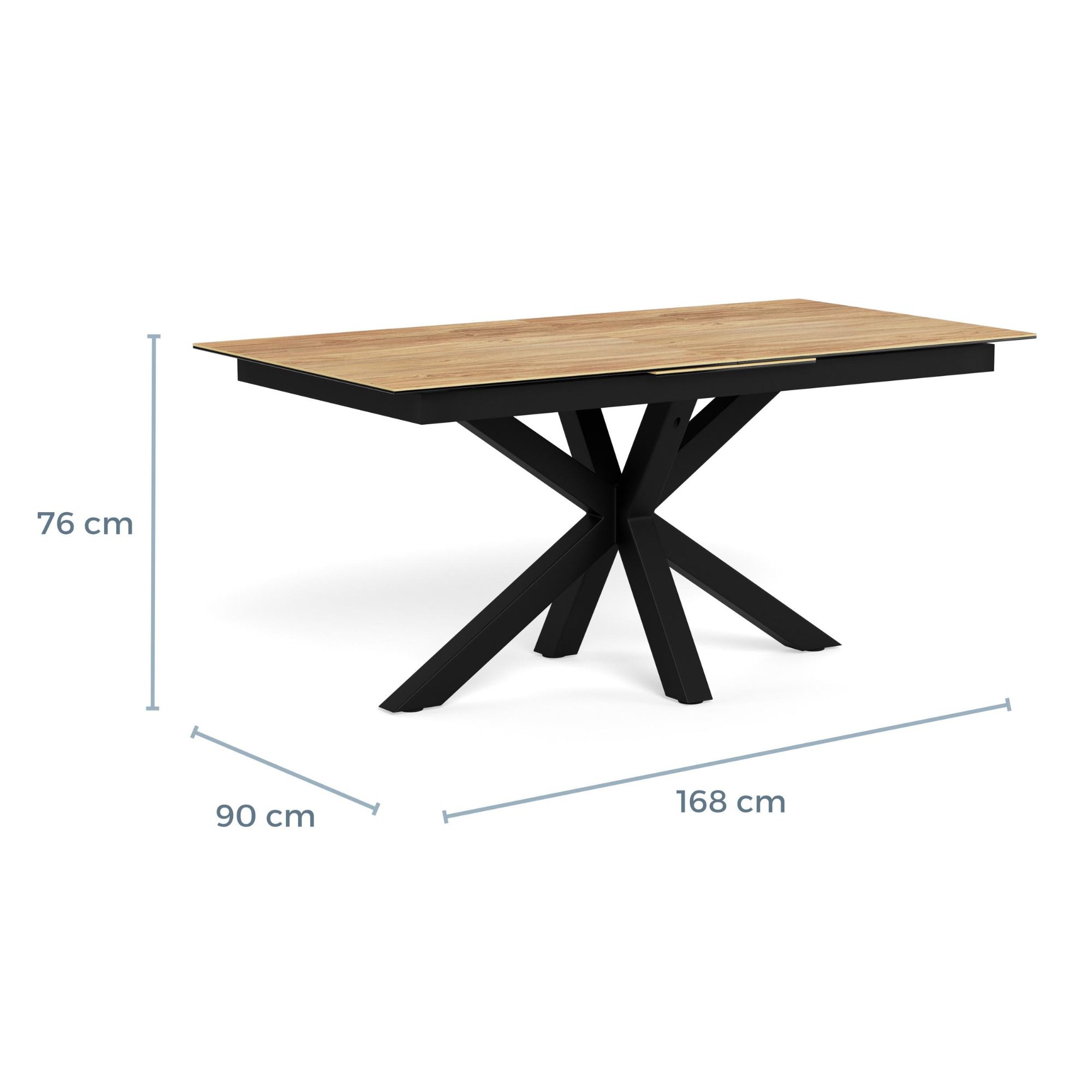 Vďaka rozkladacej funkcii je možné zväčšiť šírku hornej dosky zo 168 na 210 cm. Stôl tak ponúkne dostatok miesto pre pohodlné stolovanie 4 až 6 osôb.