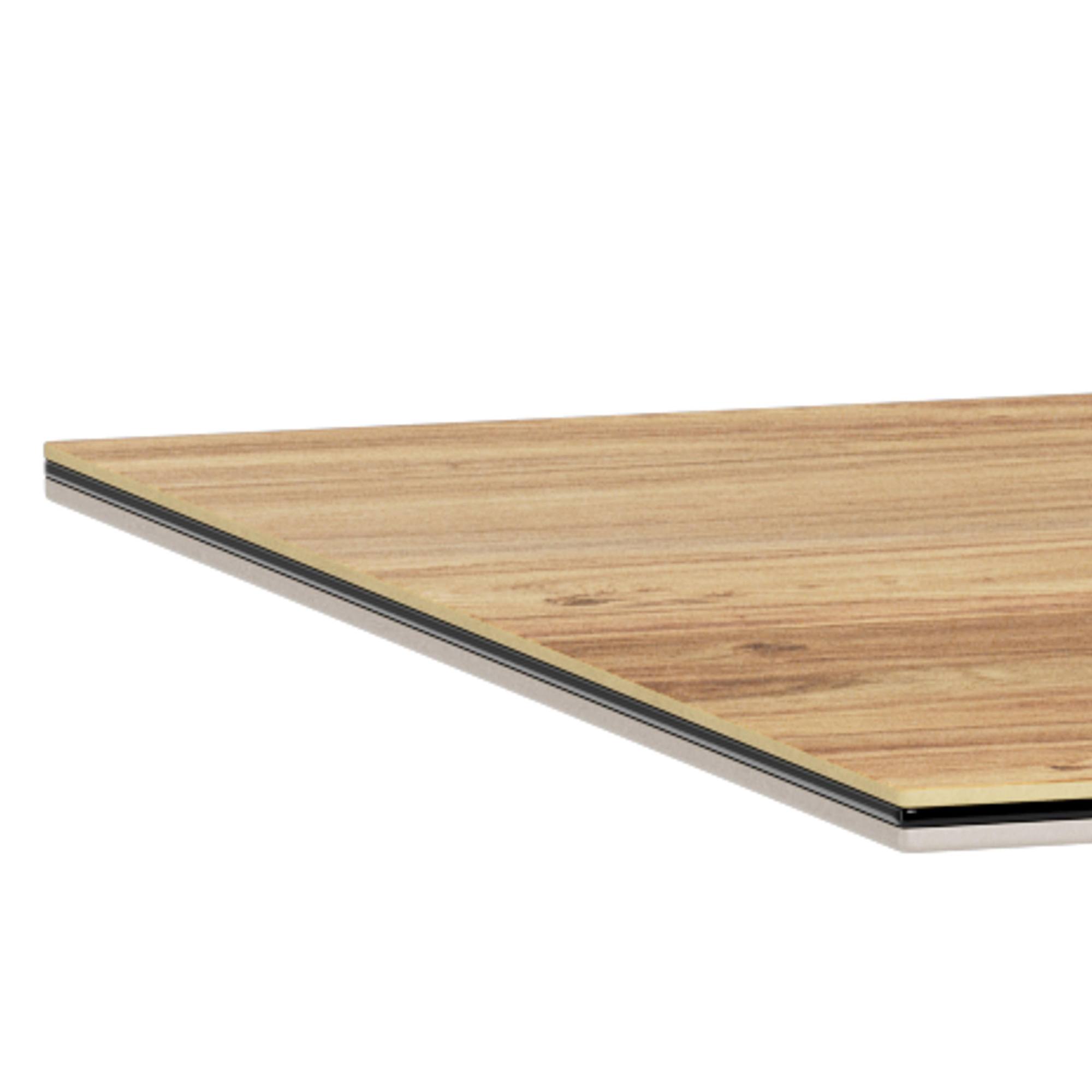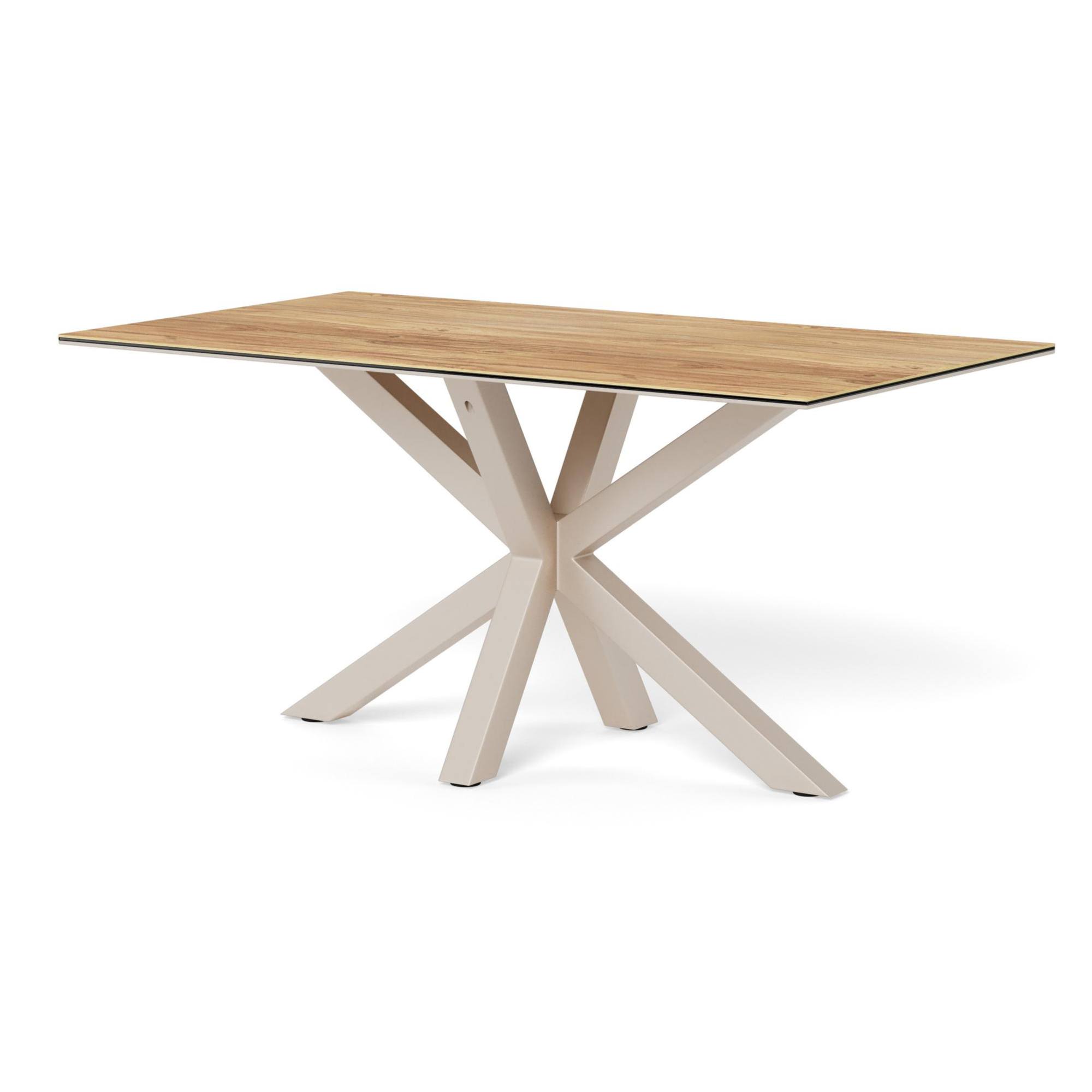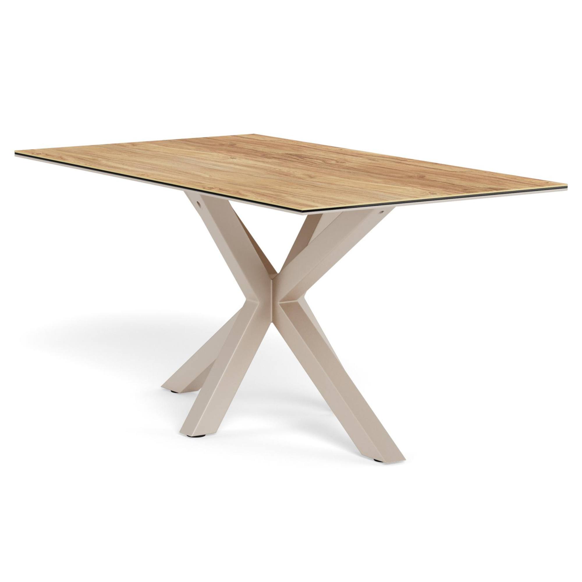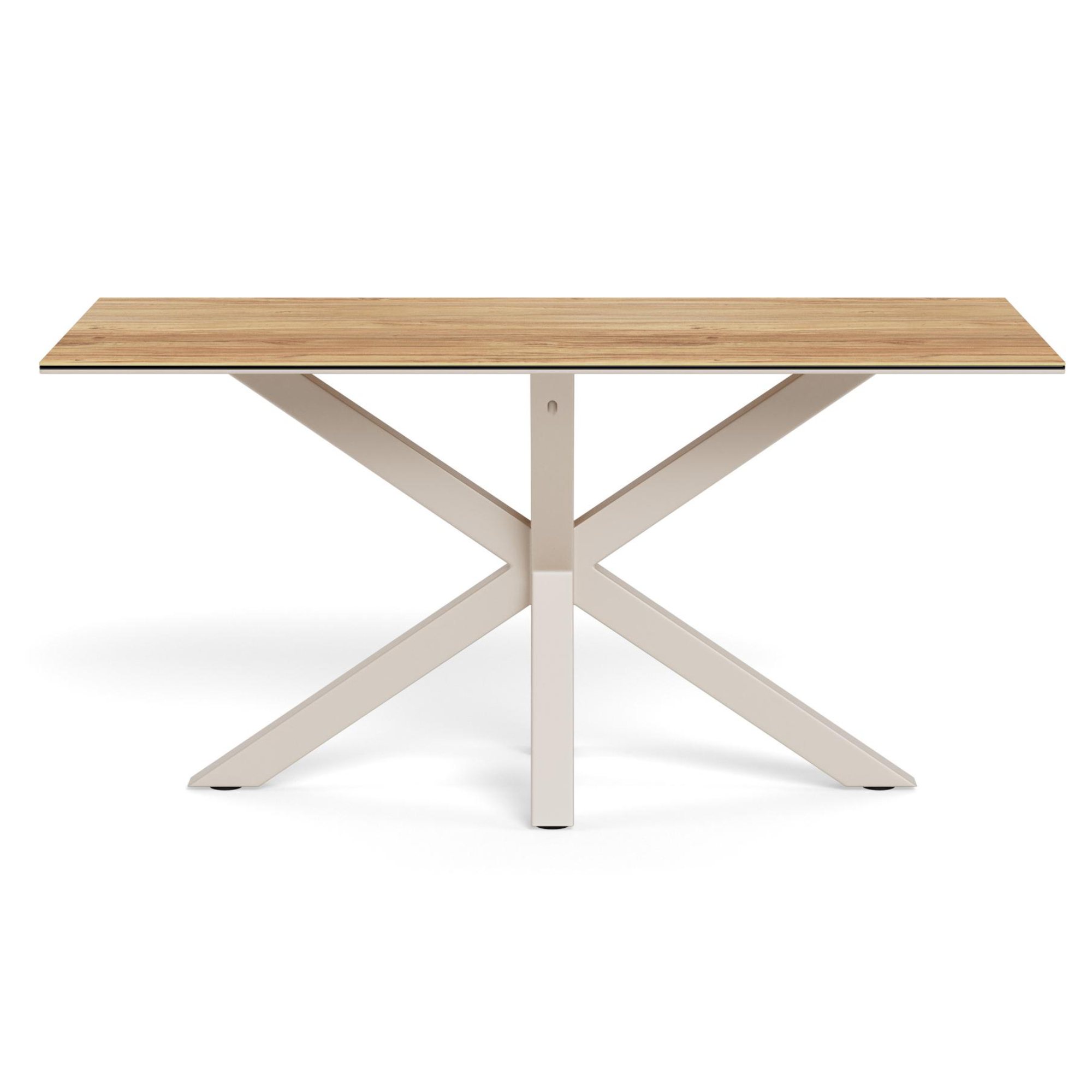 Stabilné prekrížené nohy, na ktorých tento stôl stojí, sú vyrobené z ocele a ich povrch je opatrený práškovým nástrekom. Horná doska je z kombinácie kvalitnej keramiky a skla odolnej voči teplu a poškriabaniu.