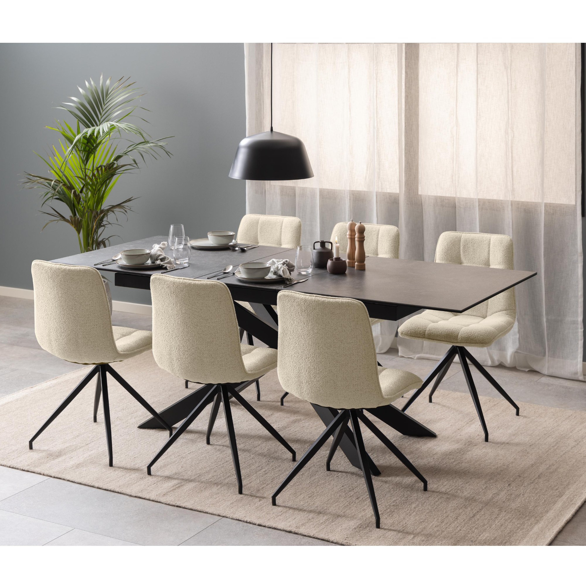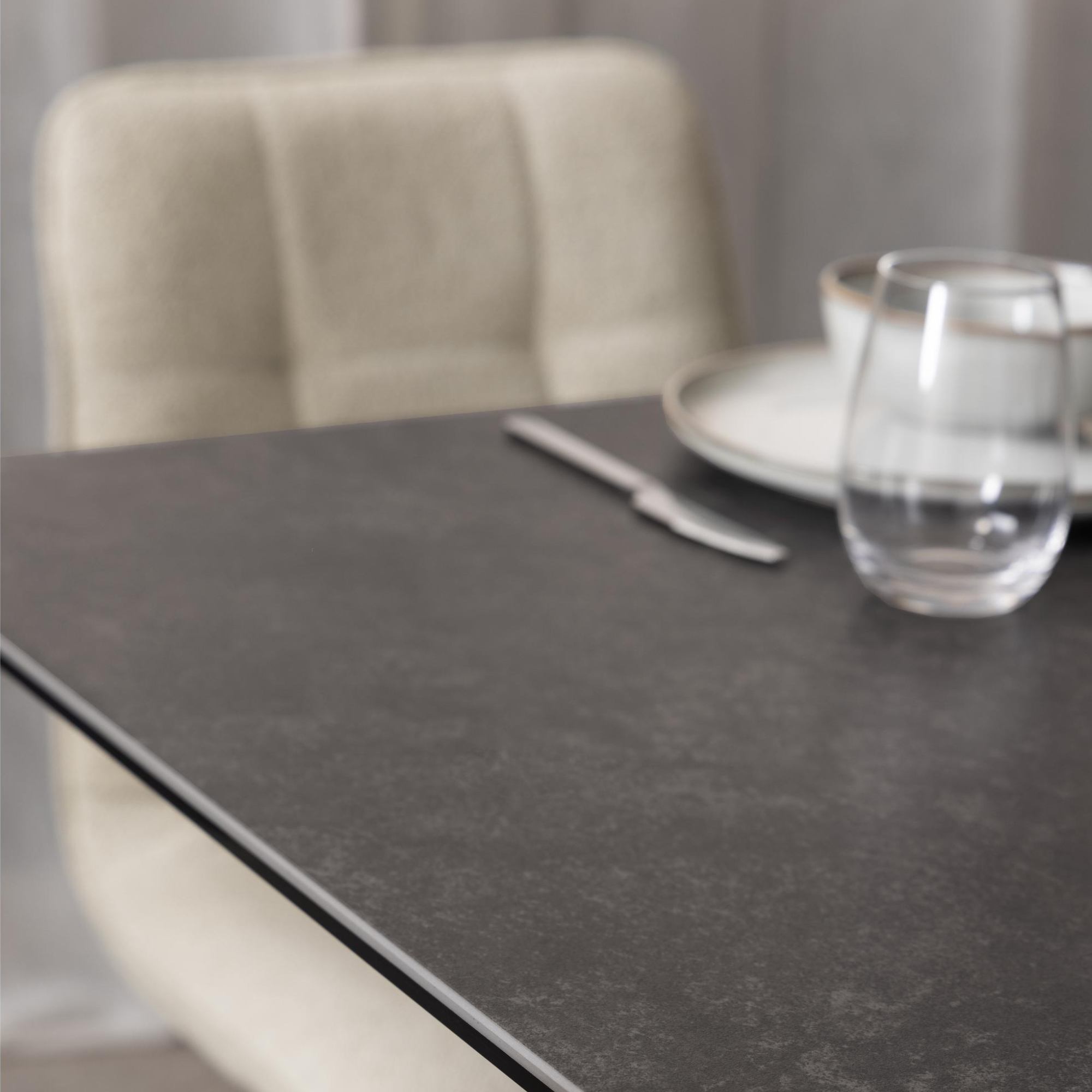 Tento stôl vyniká mimoriadnou stabilitou, za ktorú vďačí pevným kovovým nohám pokrytým matným lakom. Jeho doska je vyrobená z keramiky, a tak je odolná voči teplu. Pretože je pre tieto materiály charakteristická ľahká udržiavateľnosť, nebude starostlivosť o stôl vyžadovať veľa času ani námahy.