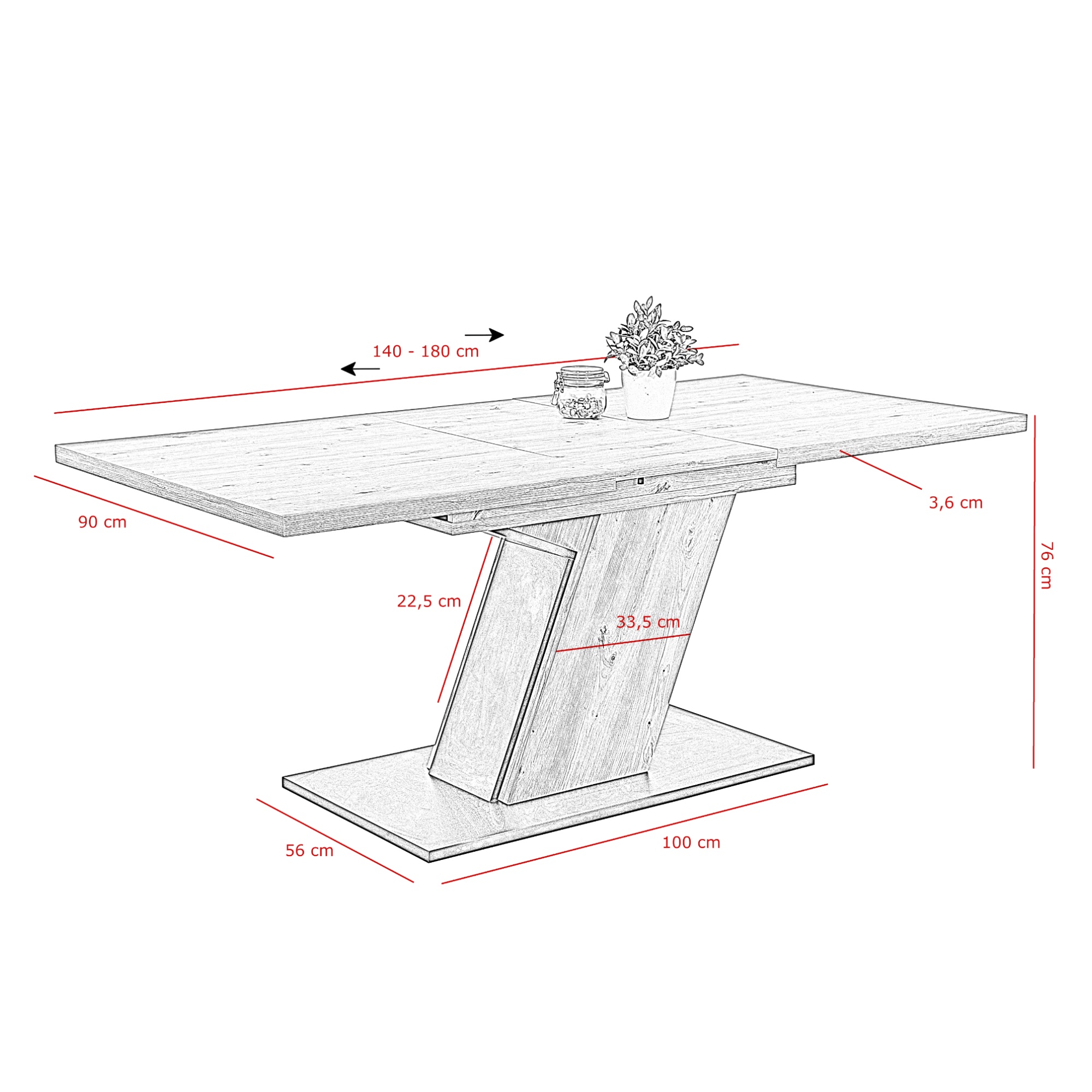 | Nastaviteľná šírka dosky stola v rozmedzí (cm): | 140-180 |