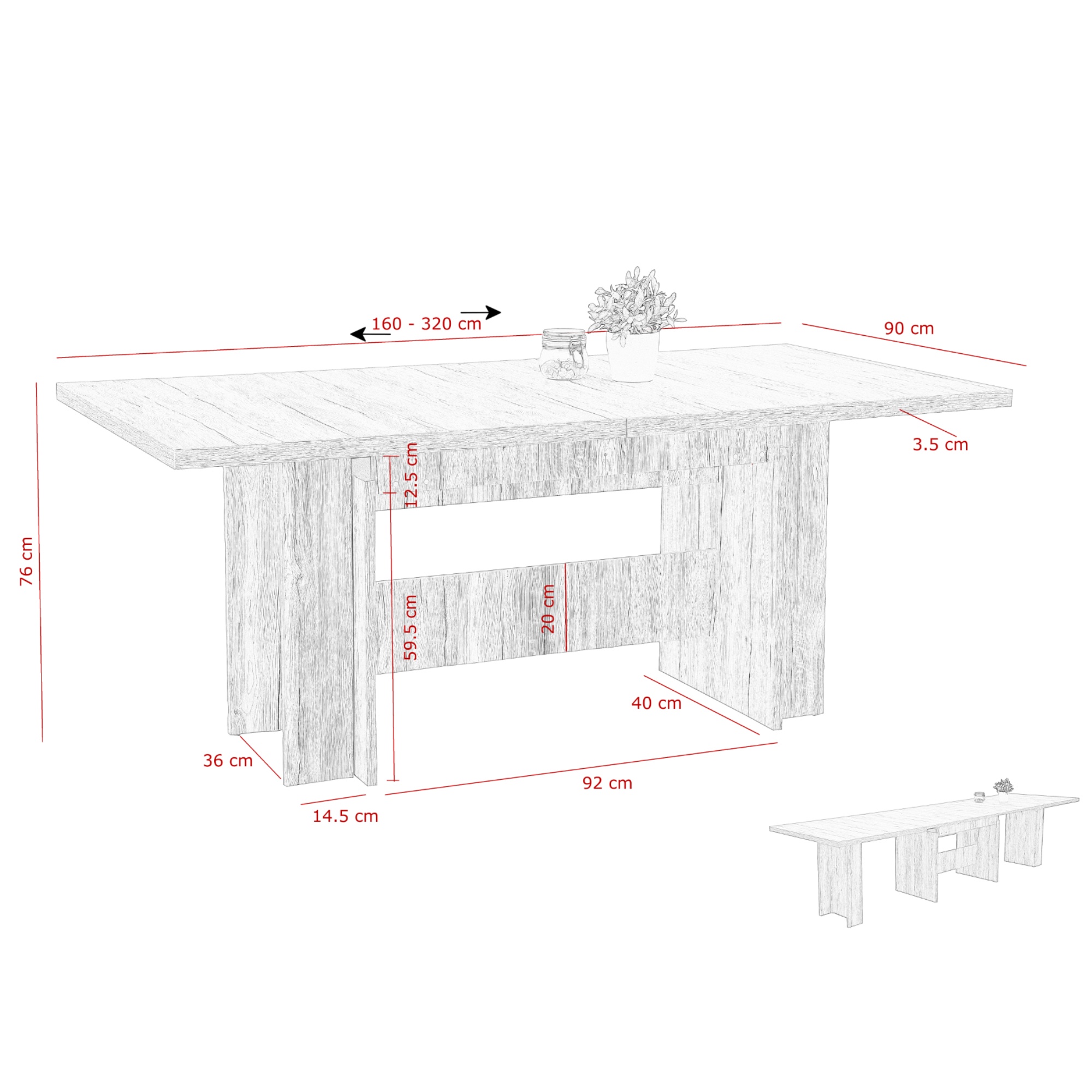 Najväčšou výhodou tohto stola je rozkladacia funkcia. Tá umožní zväčšiť šírku hornej dosky zo 160 na 320 cm, vďaka čomu stôl ponúkne dostatok priestoru na pohodlné stolovanie.
