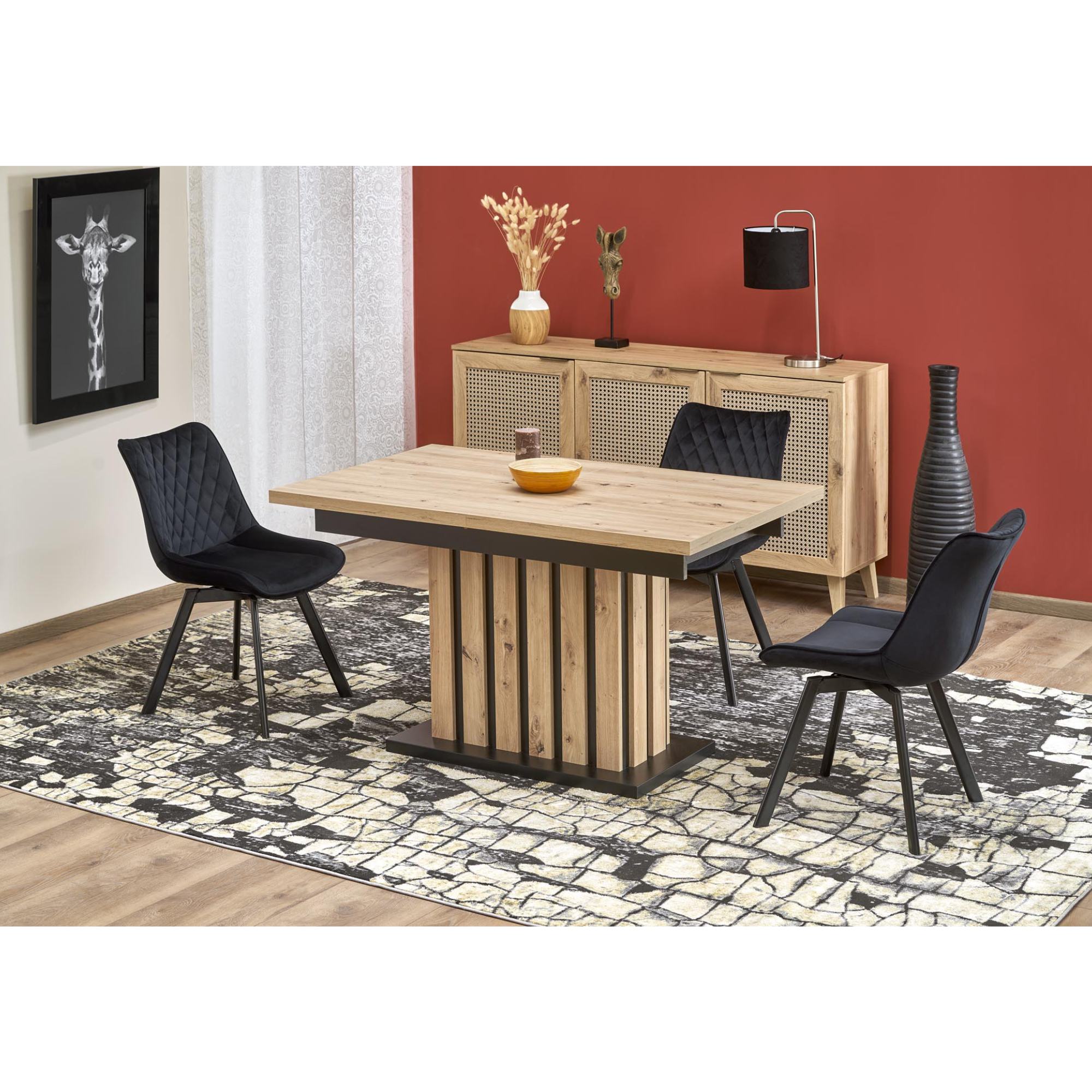 Jedálenský stôl LOMILLU - dub artisan/čierna