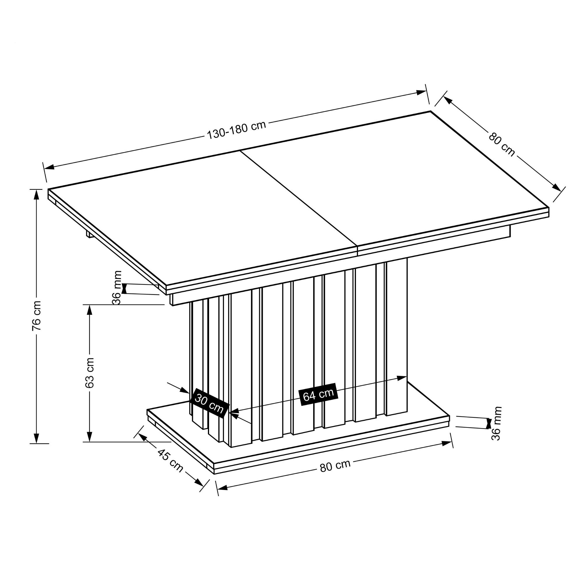 Stôl je vybavený praktickou rozkladacou funkciou, ktorá umožňuje zväčšiť jeho šírku zo 130 na 180 cm.