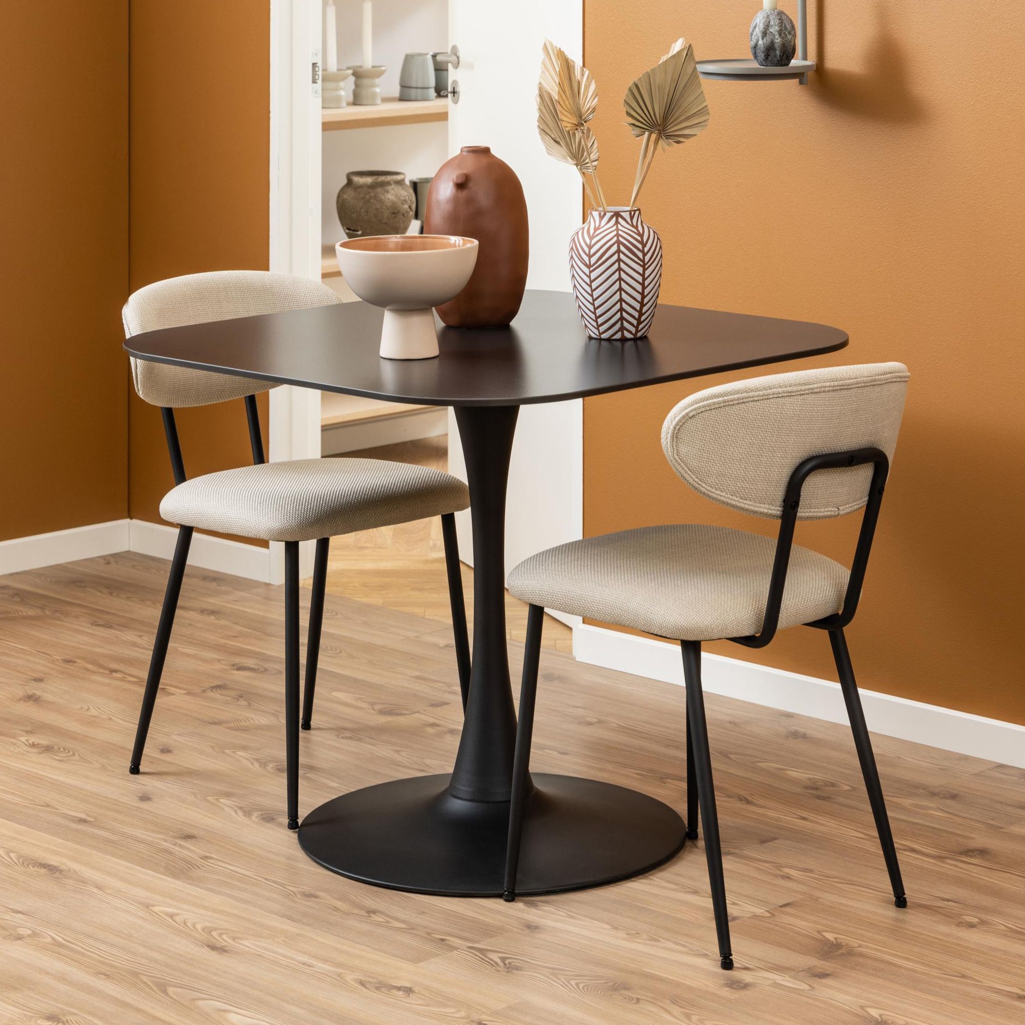 Pri tomto štvorcovom stole so zaoblenými rohmi, ktoré mu dodávajú nádych elegancie, sa pohodlne usadia štyri osoby. Nosnosť stola je 100 kg.