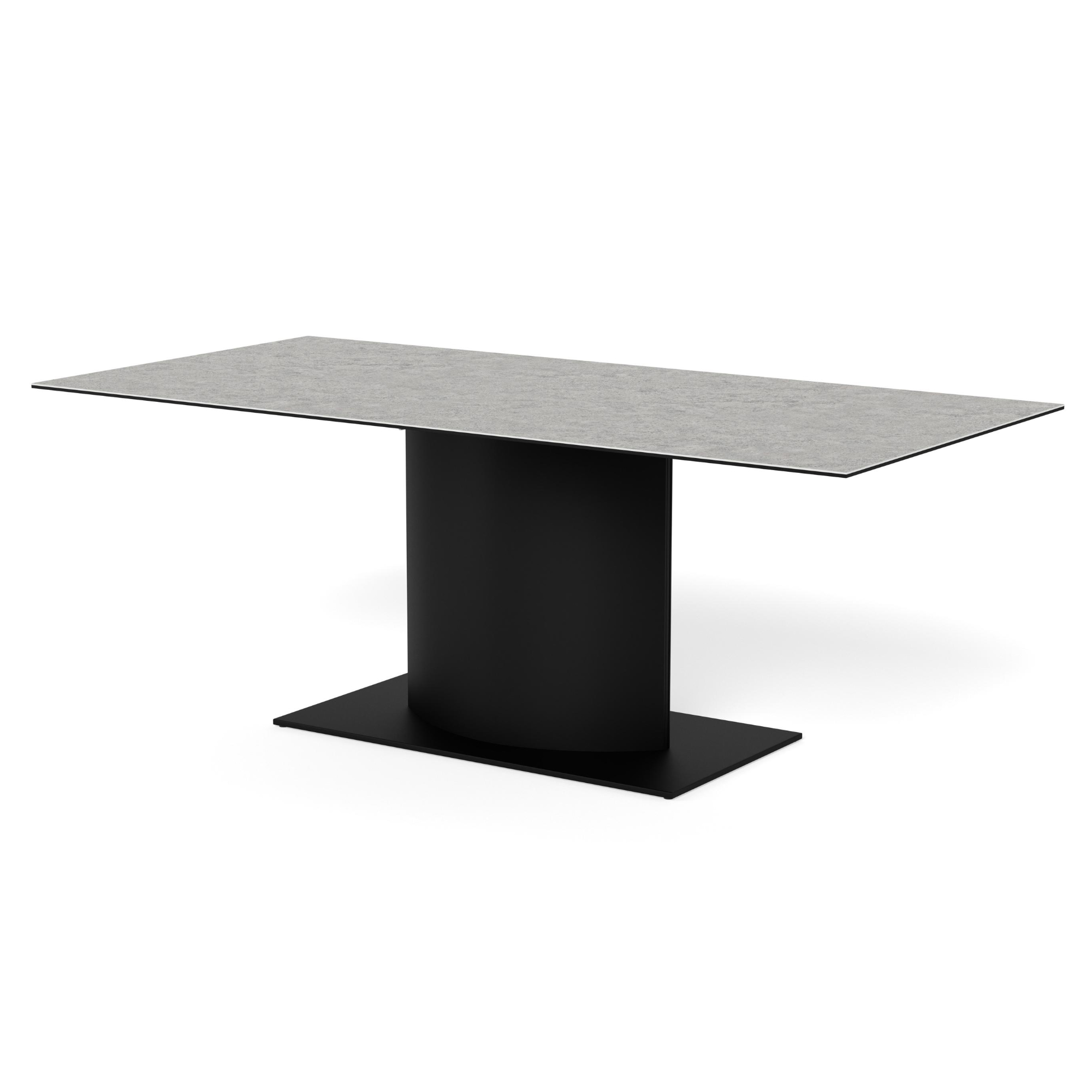 Stôl stojí na pevnej a stabilnej stredovej nohe, ktorá je vyrobená z ocele a má práškovo lakovaný povrch. Horná doska je z kvalitnej keramiky, ktorá je odolná voči teplu a poškriabaniu.