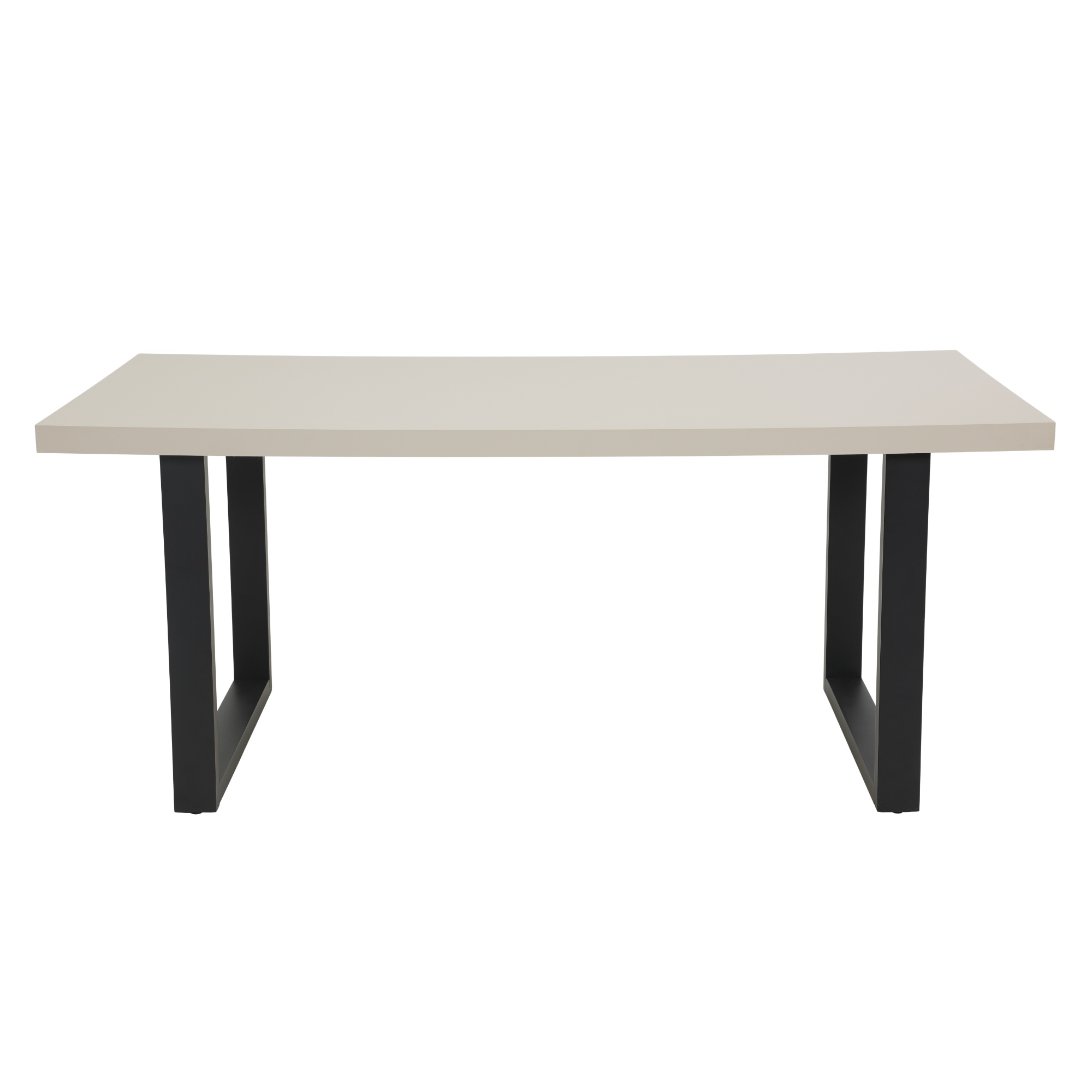 Stôl stojí na pevných a stabilných nohách v tvare U, ktoré sú vyrobené z kovu. Povrch nôh je práškovo lakovaný. Horná doska je z laminovaného drevotrieskového materiálu, ktorý je nenáročný na údržbu.