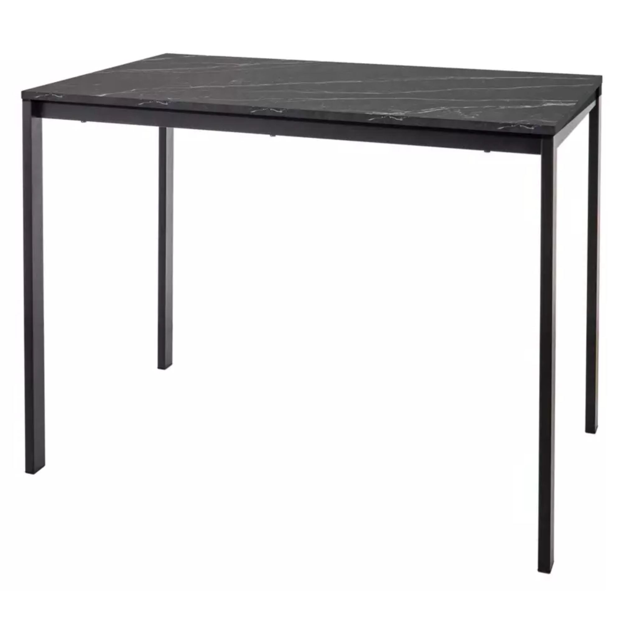 Stabilitu tohto stola zaisťujú pevné kovové nohy. Horná doska je z laminovaného drevotrieskového materiálu, ktorý je nenáročný na údržbu.