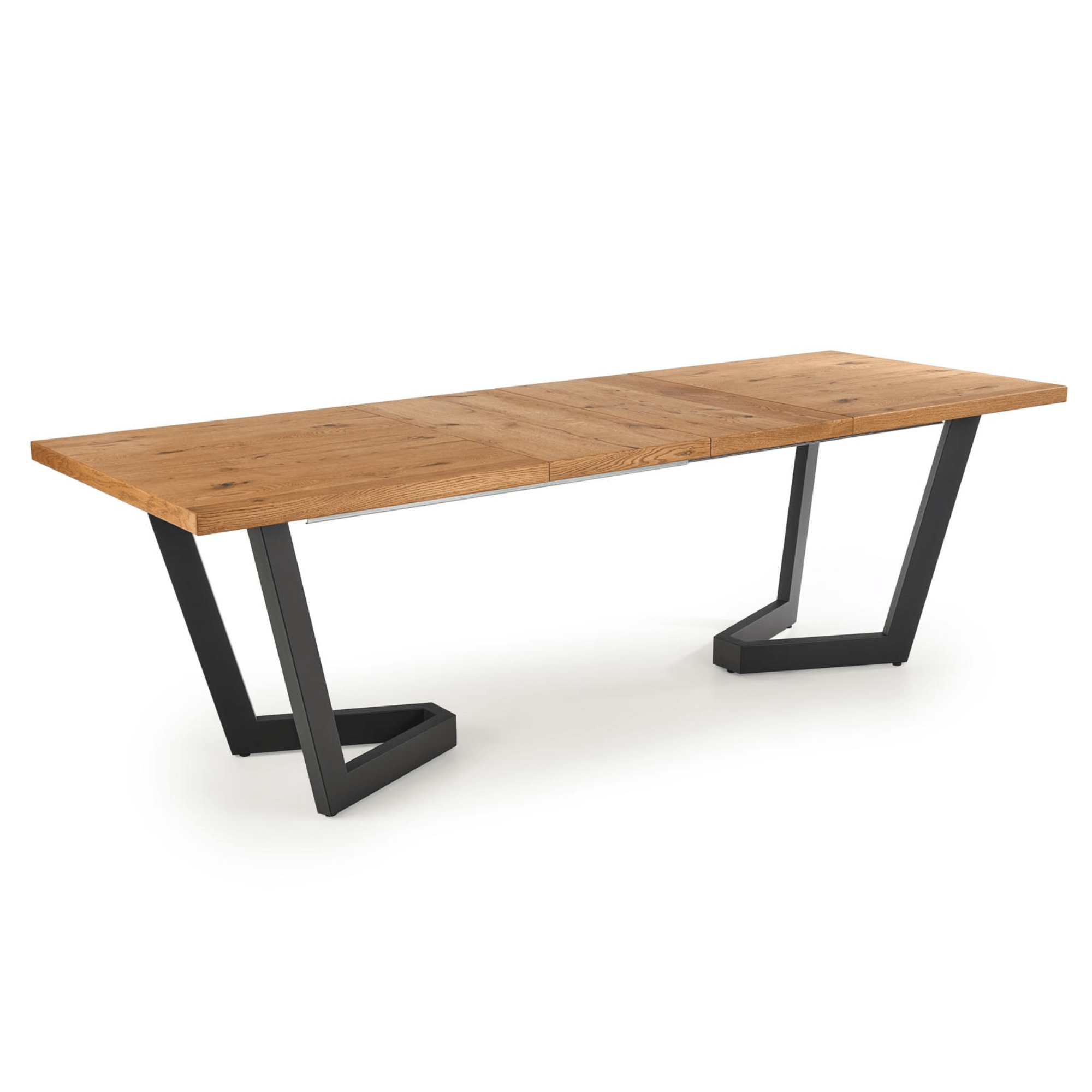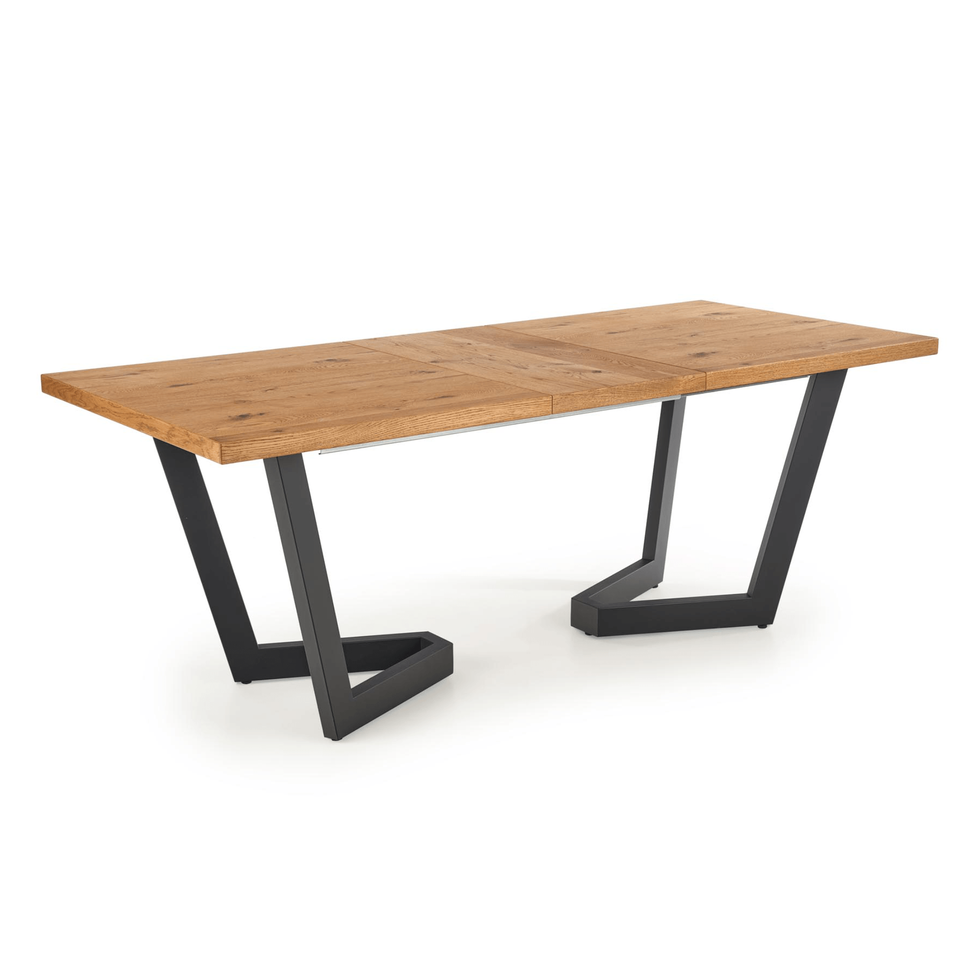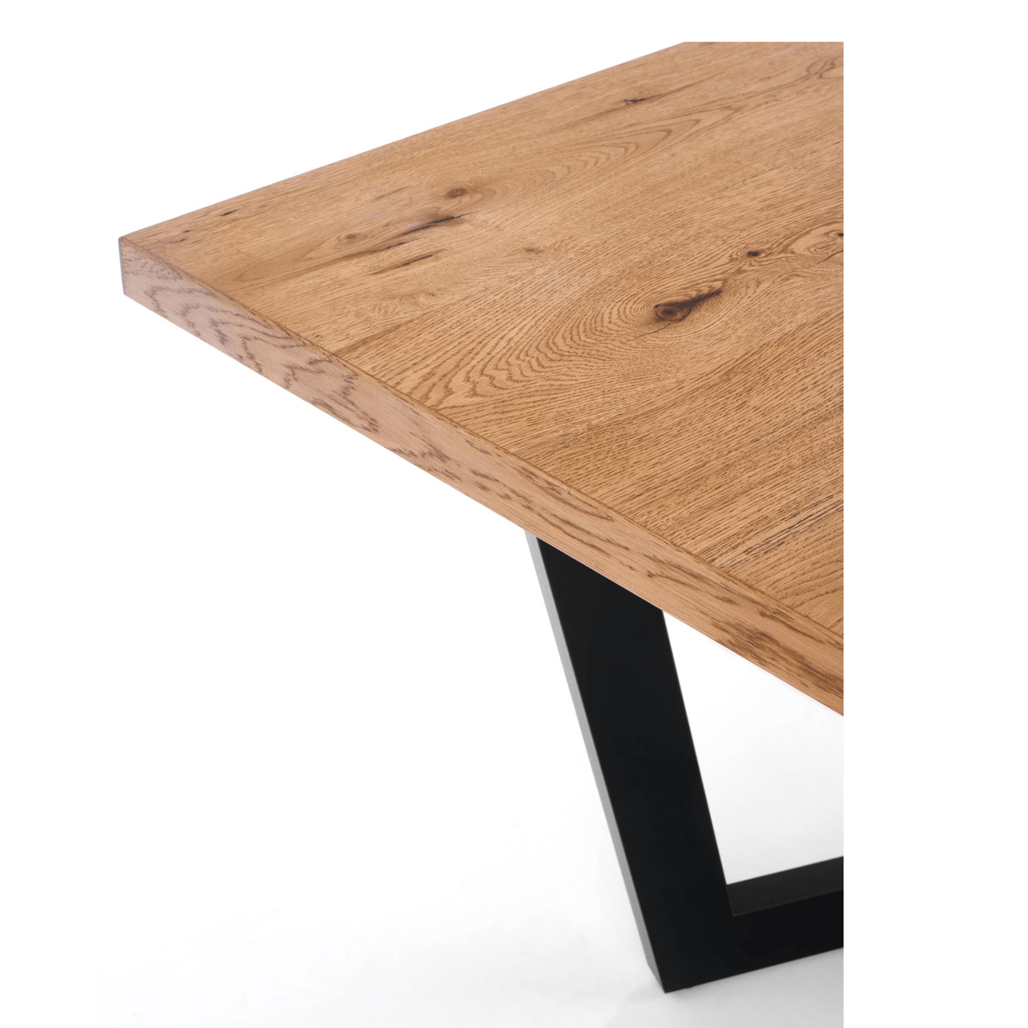 Hlavná doska je vyrobená z dyhovanej dosky s hranami z dubového masívu. Doska je ošetrená olejom, ktorý zvyšuje pevnosť a predlžuje životnosť dreva. Maximálnu stabilitu zaisťuje dizajnová podnož z kovu – tá je ošetrená čiernym práškovým lakom. Komfort stolovania je navyše podporený funkciou rozloženia na veľkorysých 250 cm. Nosnosť je 60 kg.
